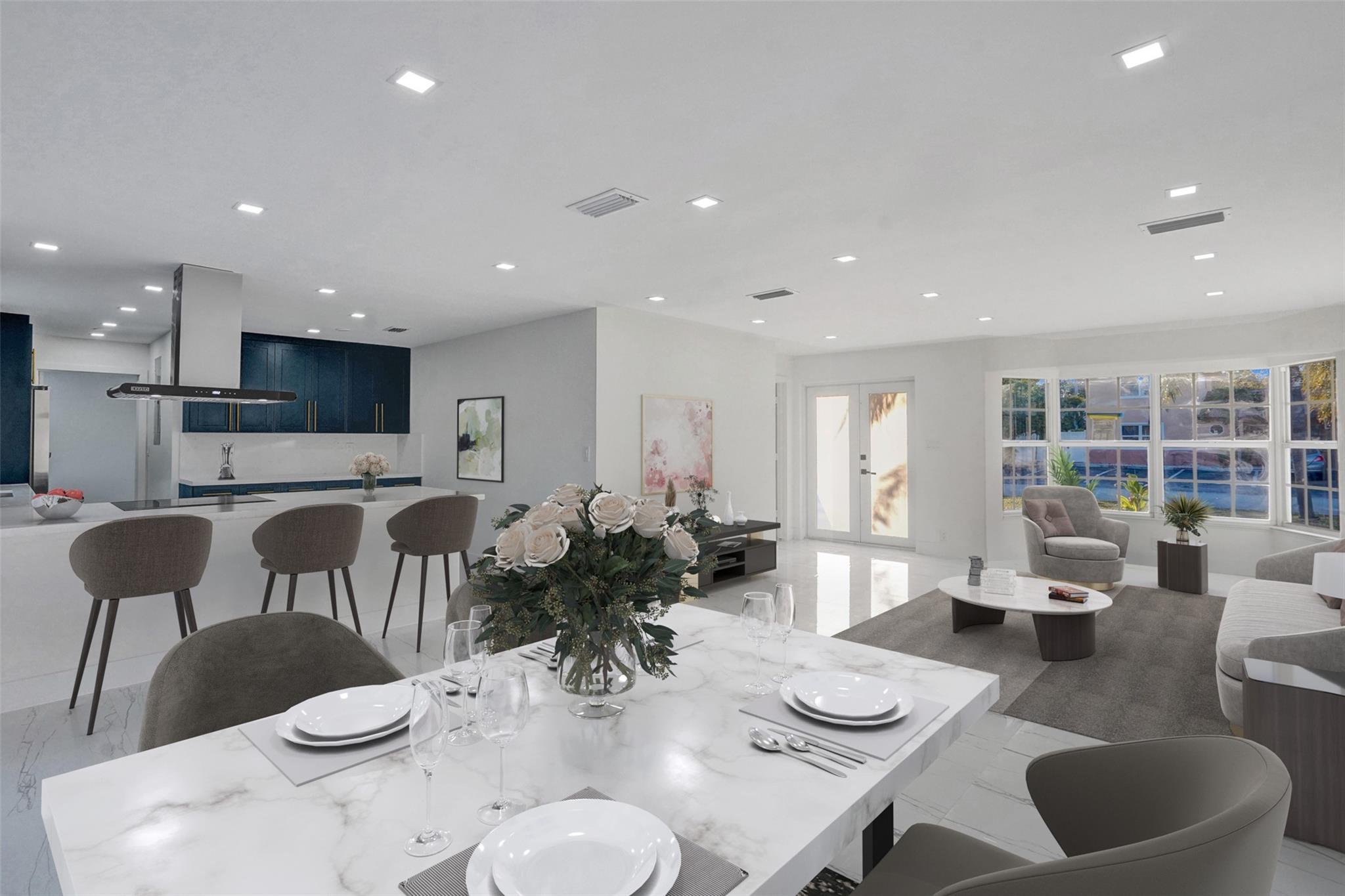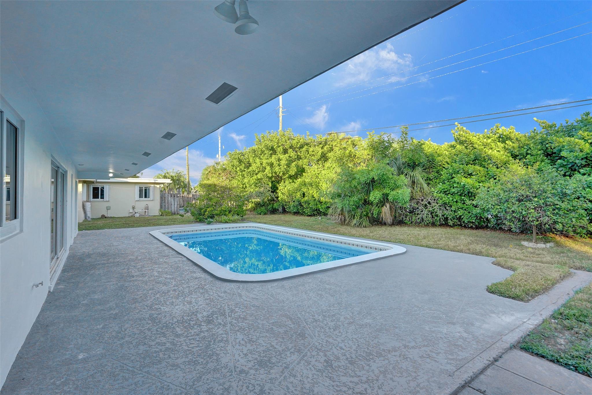 Pompano Beach living doesn’t get better than this! East of US1, located just minutes from the beach and the lively, revamped Pier. This 3-bedroom, 2-bathroom home has been completely modernized with an open floor plan, granite counters, stainless steel appliances, and luxury flooring throughout. A sliding door leads outside to a pool and the cabana bath, ideal for soaking up the Florida sun. The home also features impact windows, a tile roof, a circular driveway, and a one-car carport, all with no HOA restrictions. AIRBNB FRIENDLY!