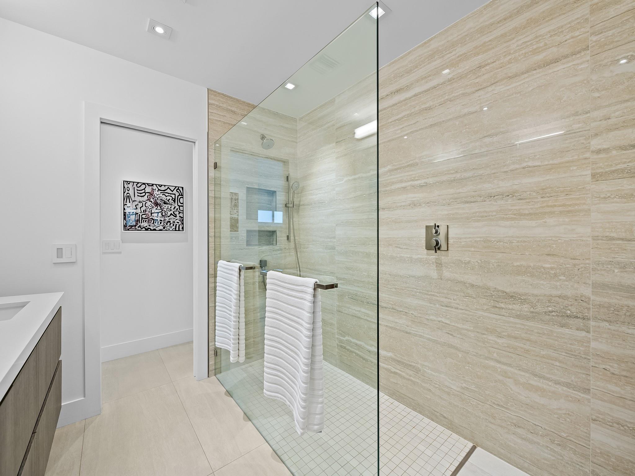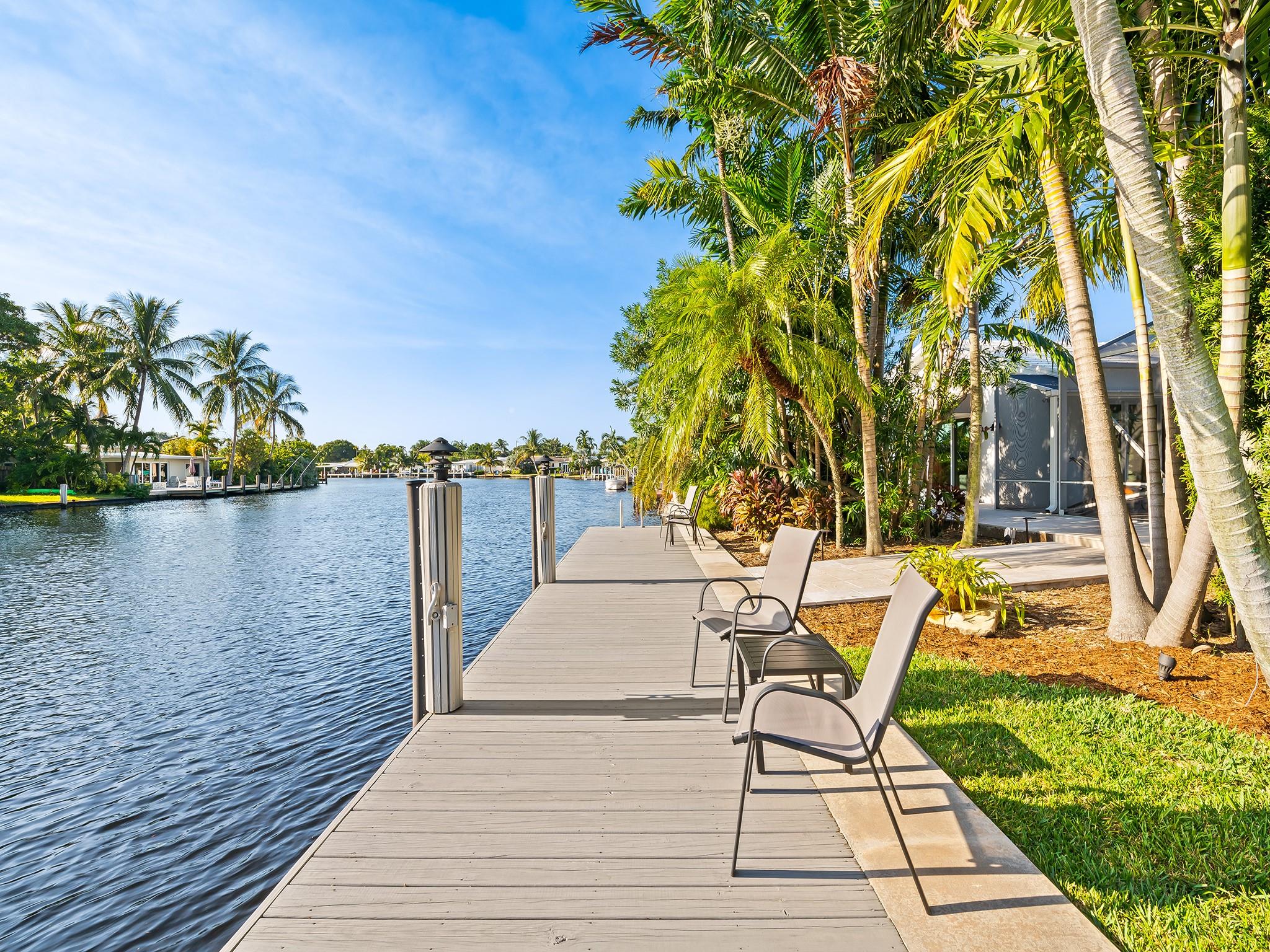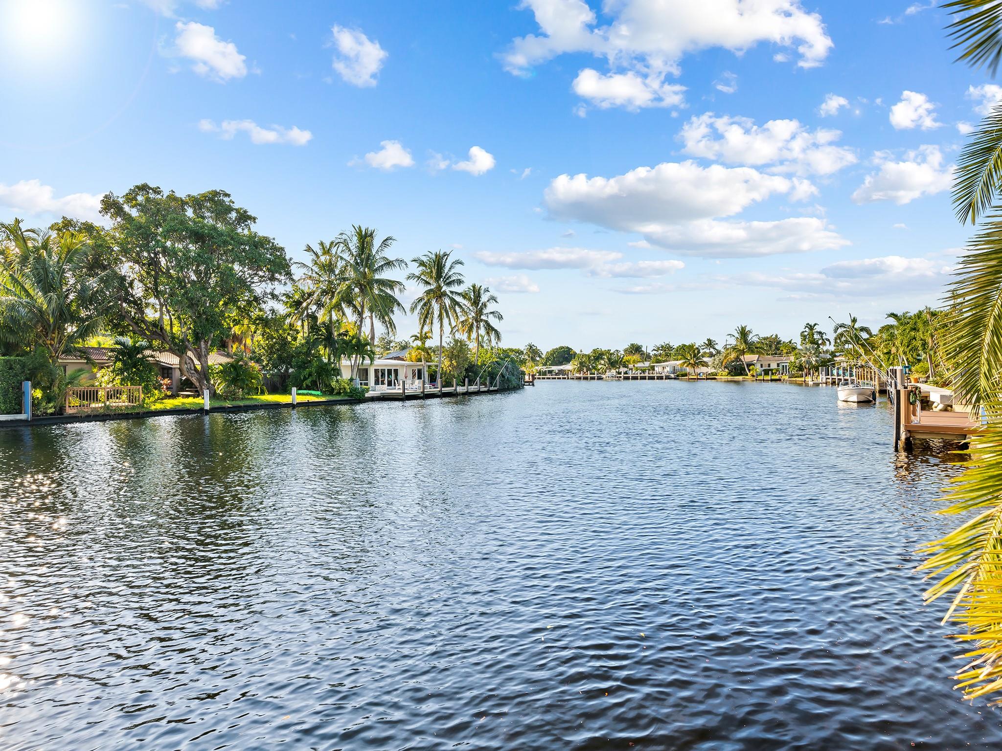 Meticulous waterfront oasis on over a 1/4+ acre oversize lot. Designer home, 3 bedrooms, 3 baths, remodeled down to studs with amazing details and craftsmanship. Minutes to the beach this like new home offers 177 ft. of waterfront with wide canal views & intercoastal access. Highlights include large living room & dining/family room with 9 ft. tray ceilings and a double-sided fireplace. Italian kitchen with quartz countertops, 36” five burner gas range, built in refrigerator/freezer & two dishwashers. Renovation also included new roof, two stage A/C, insulation, new electrical, plumbing (above and below ground), Italian porcelain floors, impact doors & windows. Designed for comfort and entertaining, it includes pocket sliding doors that open to the screened pool area 32' x 43'.