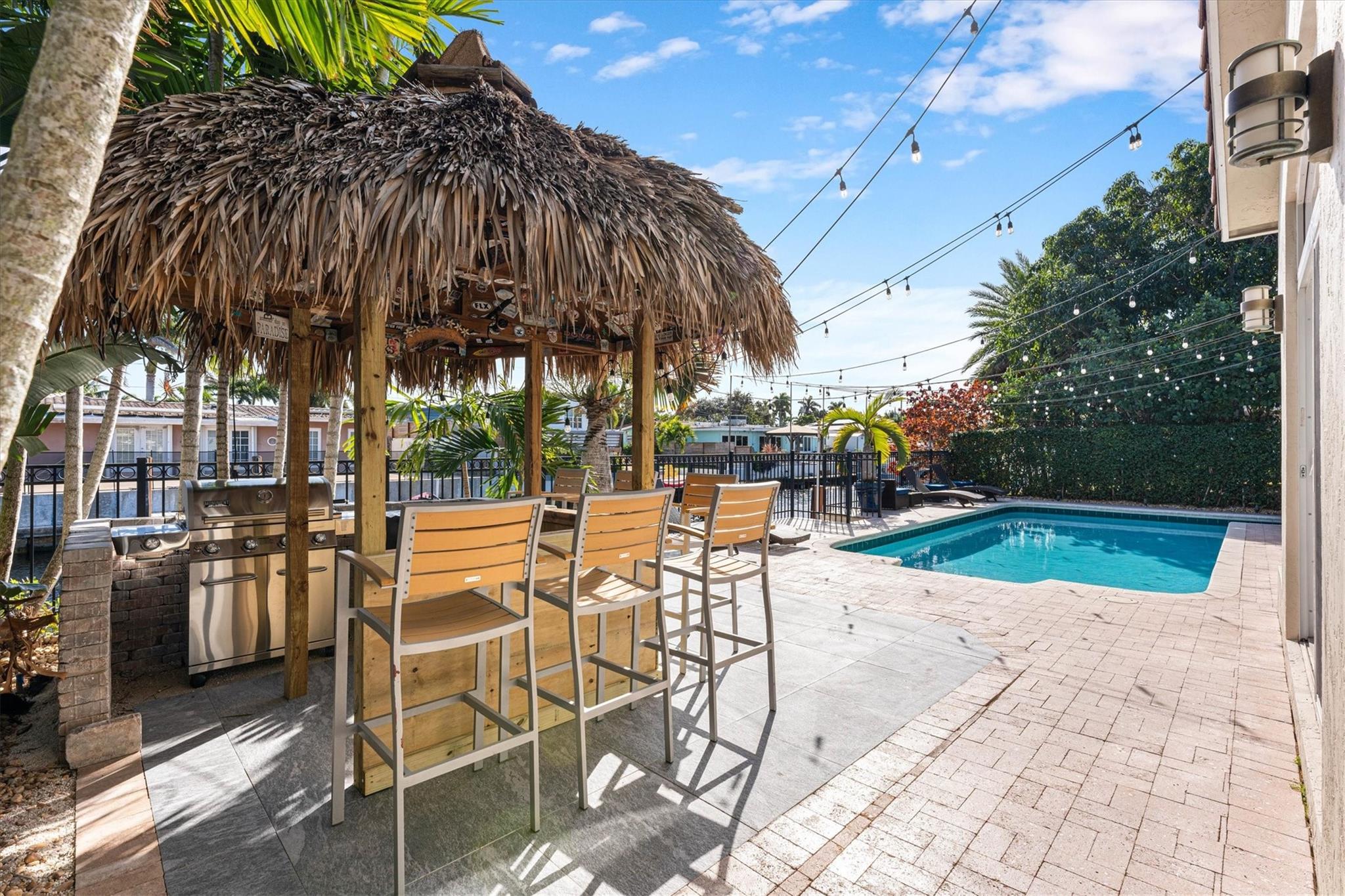 This stunning, updated 2,331 sqft single-family home, offers the perfect blend of modern luxury and comfort—with NO HOA. Featuring 4 beds and 2 baths, this home is an entertainer’s dream. The oversized owner's suite , custom master bath and built-in closets in every room for ample storage. The heart of the home is the open kitchen with top of the line appliances, including a 78-bottle wine cooler. With impact windows/doors throughout, this home combines safety and energy efficiency with modern elegance. A breathtaking patio oasis with an Intracoastal view, covered patio, pool, and a charming tiki hut. Don’t miss out on this rare opportunity to own a dream home that offers unparalleled style, comfort, and location. This is more than just a house; it's a lifestyle.
