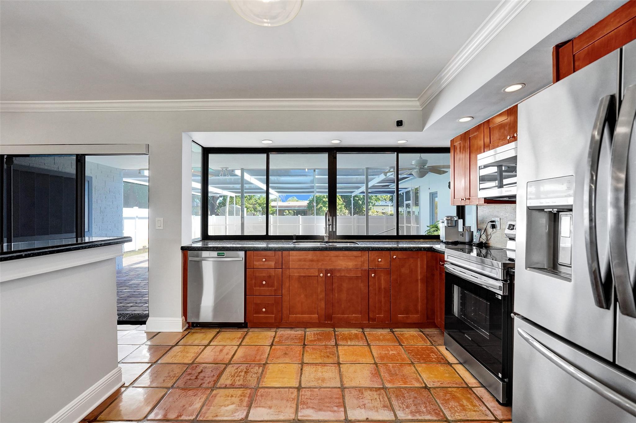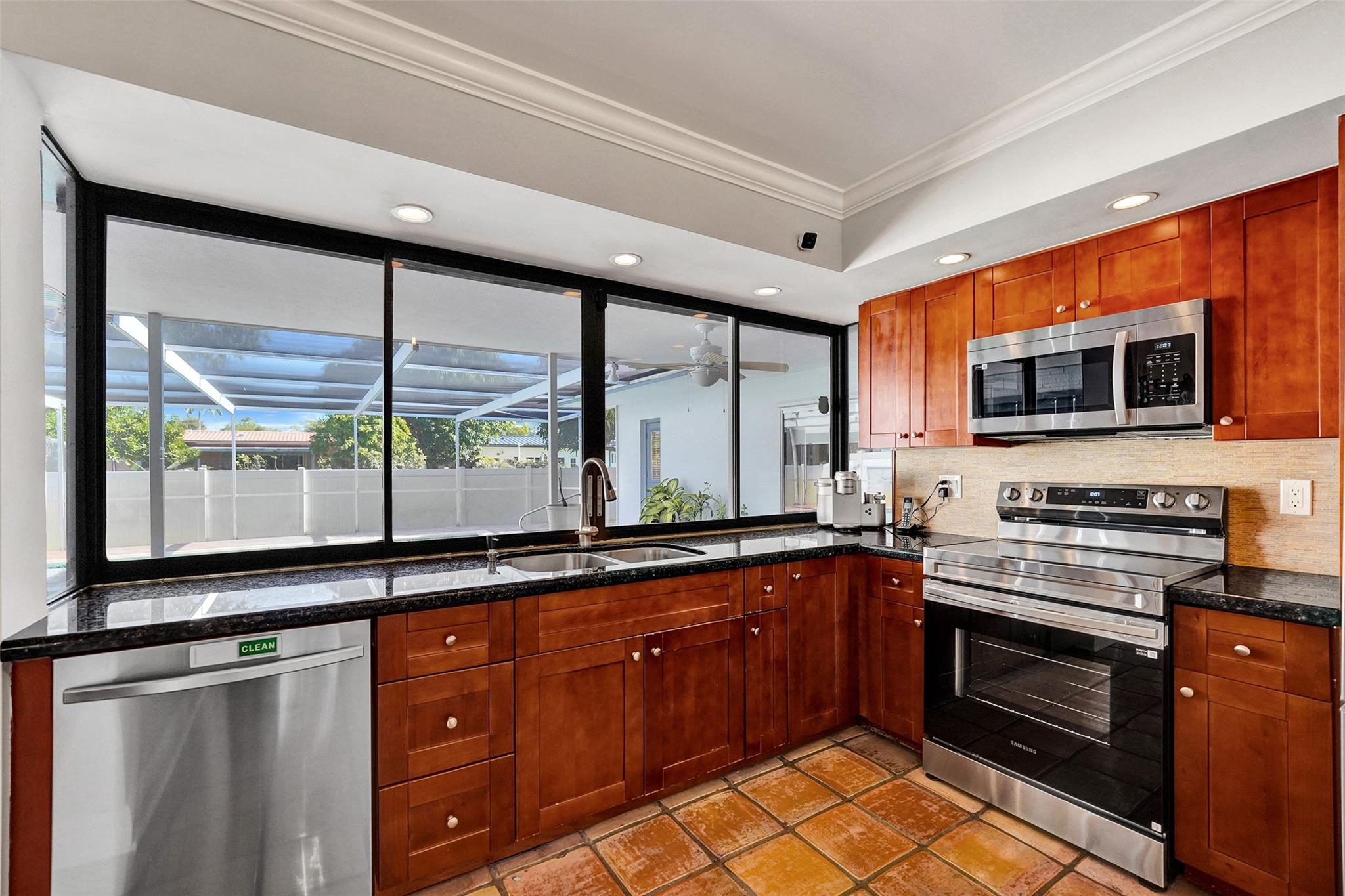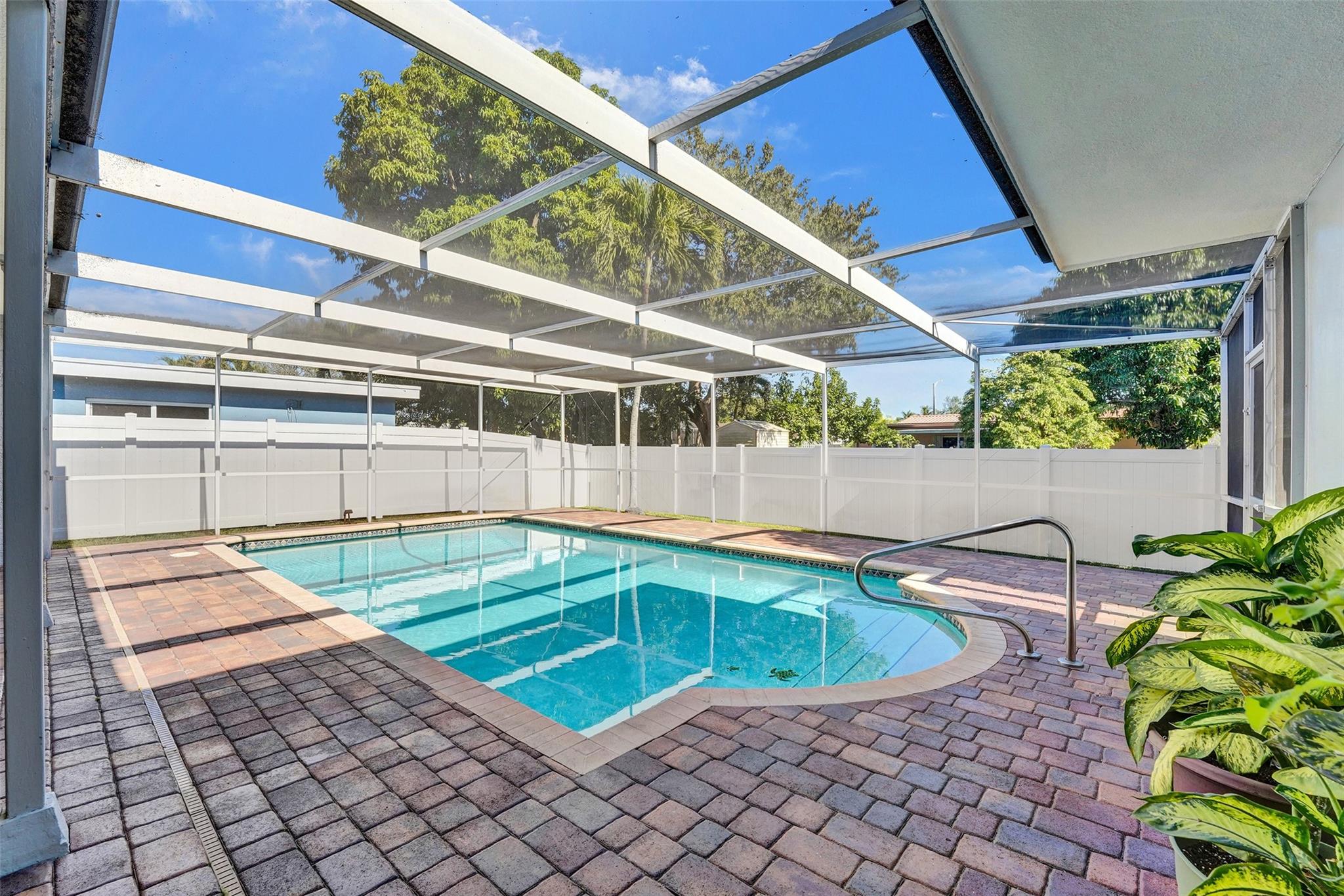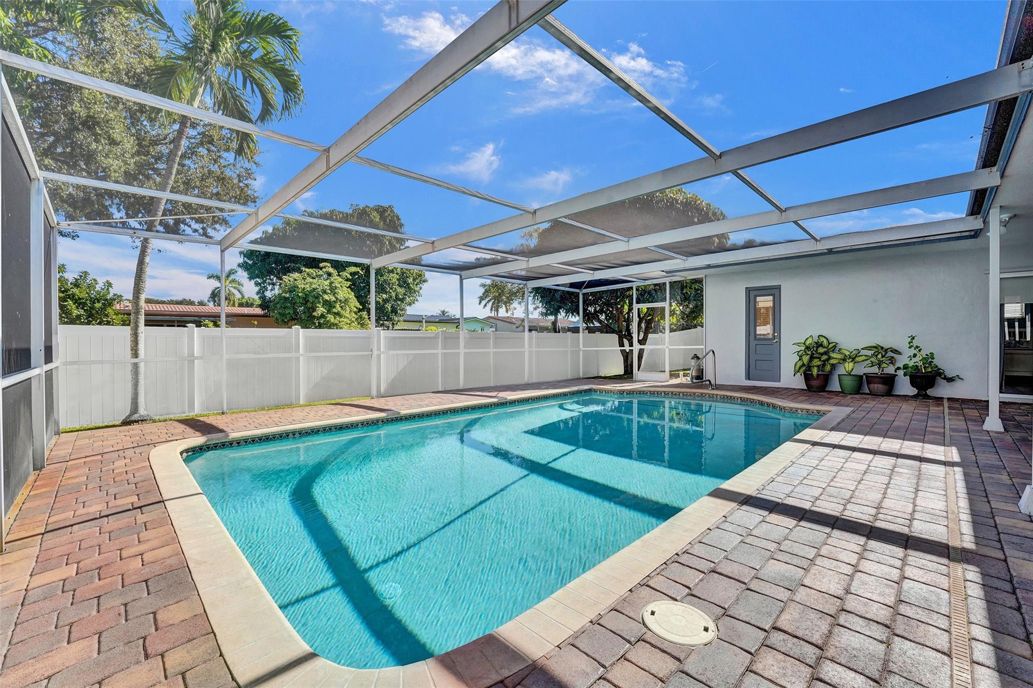 Beautiful 3-bed/2-bath Hollywood Hills pool home with new roof in 2024, freshly painted inside & out and charming tile floors in living areas with elegant wood laminate in bedrooms. Wide open kitchen with brand new appliances and a lot of natural light from your pass-through window to patio! A designated laundry room with washer and dryer, newly re-lined sewer lines and a private fenced backyard with mature fruit trees, lush landscaping and a screened-in pool area. Circular driveway and a 2-car garage with refinished floors and custom shelving with plenty of room for all your toys and tools. Conveniently near shops, houses of worship, major highways, and just minutes from the iconic Hard Rock Hotel & Casino and the famous Hollywood Beach Broadwalk. Don’t wait—schedule your showing today!