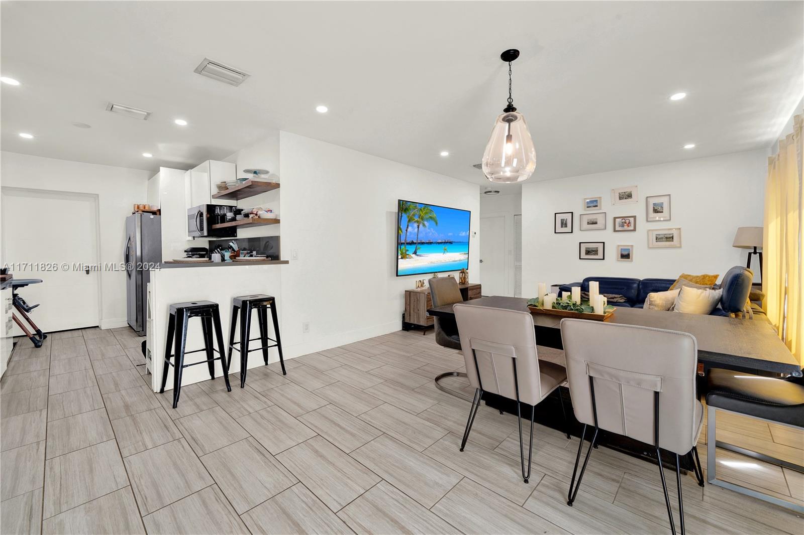 Renovated 3-bedroom, 2-bathroom residence adorned with contemporary upgrades! New impact windows, updated kitchen, bathrooms, exquisite flooring, and a freshly installed A/C unit fully fenced yard. ALL UPDATES WITH PERMITS!
