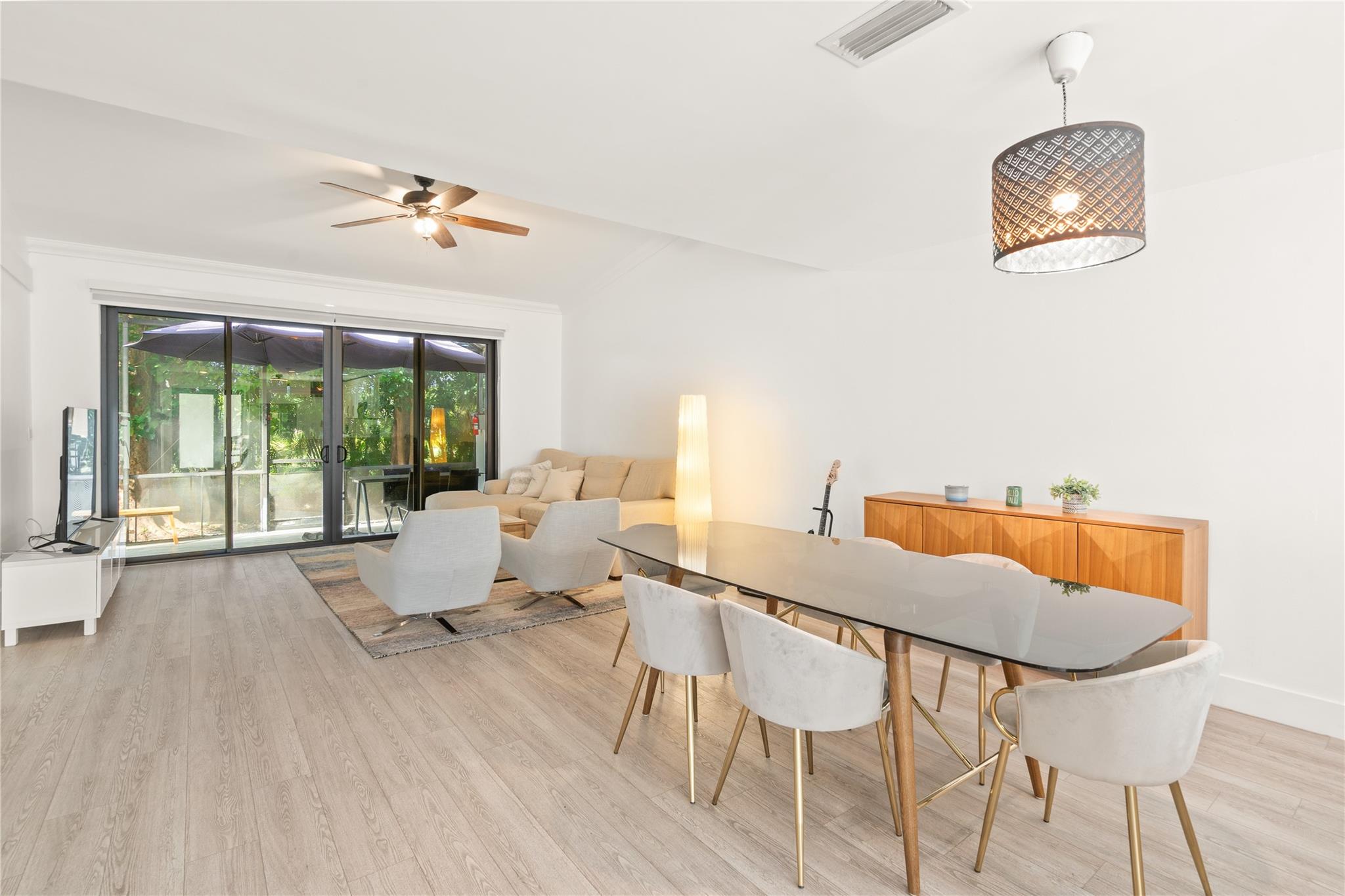 This stunning townhome has been thoughtfully updated with approximately $50,000 in renovations over the past year. It boasts two inviting outdoor spaces, including a private screened porch overlooking a serene garden—perfect for relaxing or hosting family gatherings. Recent upgrades include high-impact windows, a stylish new kitchen, remodeled bathrooms, fresh interior paint, and modern blinds throughout (some electric). The HOA completed improvements in 2023, including a new roof and freshly painted exteriors, ensuring peace of mind for years to come. Don't miss this move-in-ready gem in the heart of Doral Oaks!