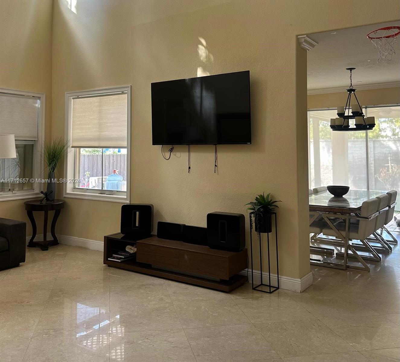 Spectacular 4 Beds, 4 Baths, Single-Family Home located on the desirable and quiet community neighborhood of Island at Doral. This 2-story home offers a double-height living/dining area with lots of natural light, Family Room, and the best it has a full 1 Bedroom + 1 Bath downstairs. This floor plan is great to entertain w/Family and Friends, w/a spacious Backyard w/lush landscaping. No CARPET, the house has tile and wood flooring throughout. Upstairs, enjoy 3 spacious Bedrooms and 3 Baths, one of them is the gigantic Master Bedroom with it's own living area. This corner unit is one of the biggest backyards in Doral. Unique Property close to shops, schools, restaurants & parks across the street. Enjoy living on this marvelous community.