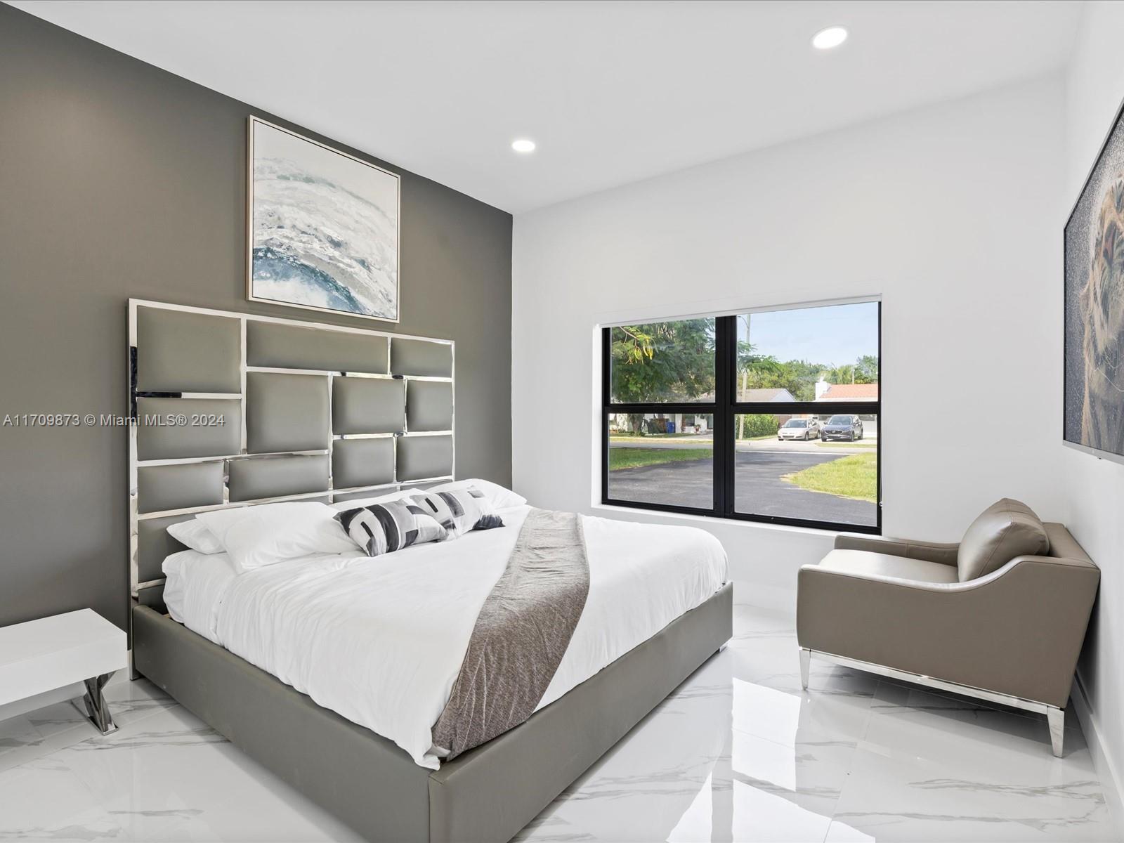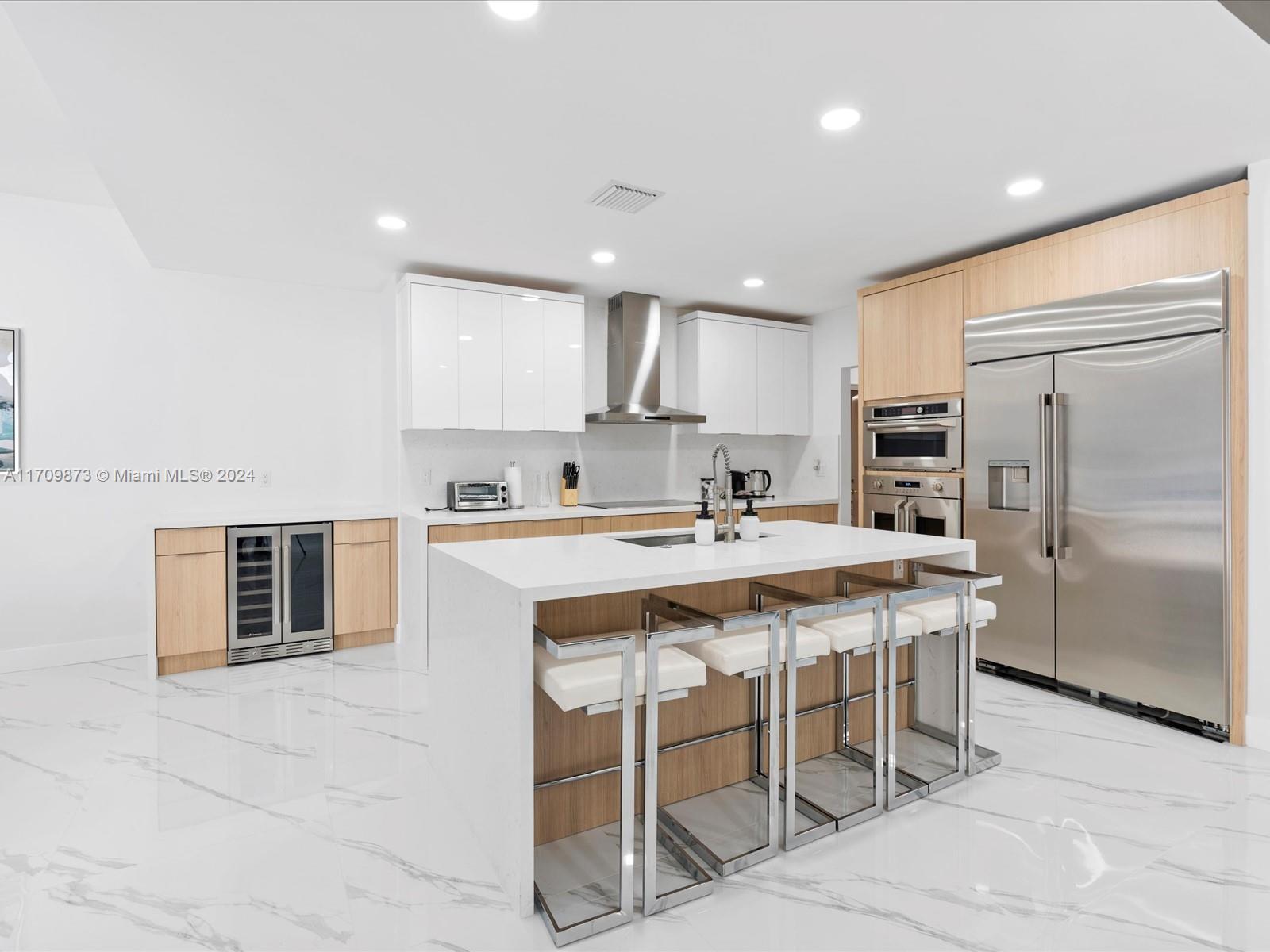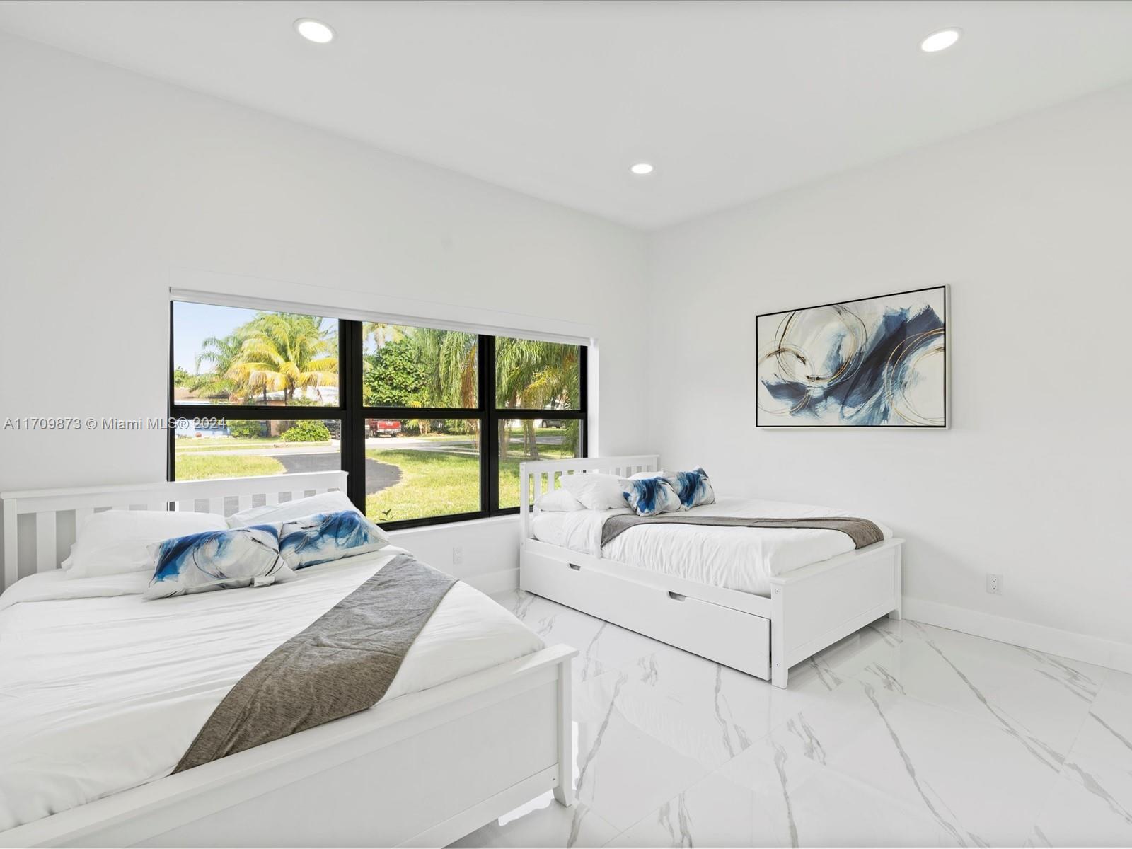 Experience luxury in this fully remodeled 4BR/3BA home, 2757 sqft, on a 20,060 sqft double lot. Features include a custom kitchen with Monogram appliances, Calcutta porcelain Italian floors, LED lighting, and custom arch impact windows in the master bedroom. Enjoy 14' high ceilings, a heated self-chlorinated pool, jacuzzi, covered patio, wood-burning fireplace, tankless water heater, laundry room, and impact windows throughout. Conveniently located near i95, Turnpike, and Hollywood Young Circle. This property offers top-of-the-line amenities, ideal for discerning buyers seeking elegance and comfort.