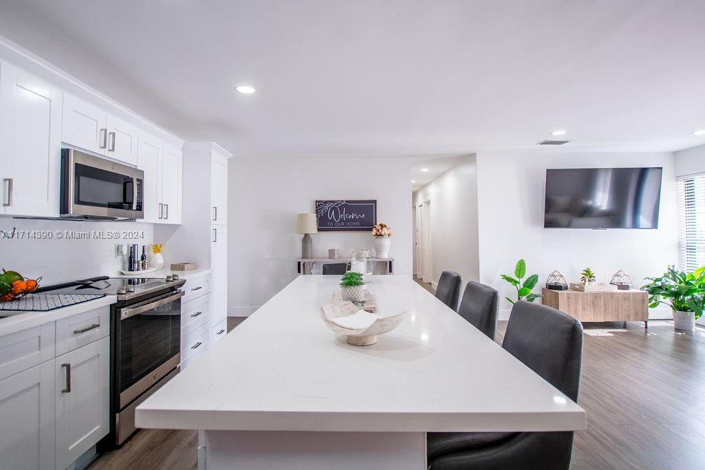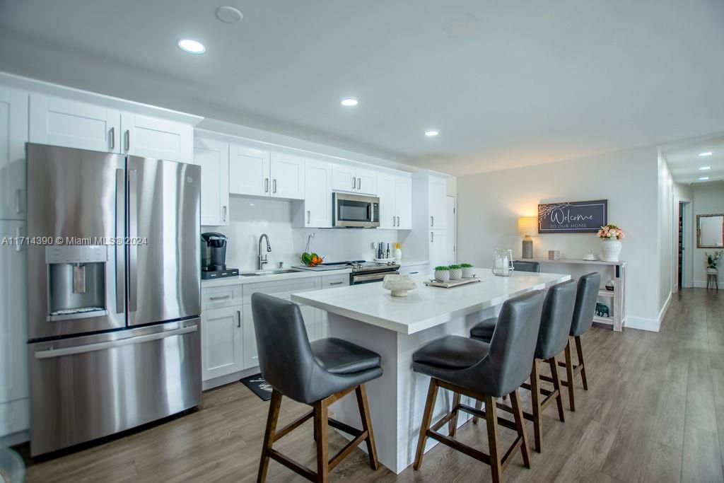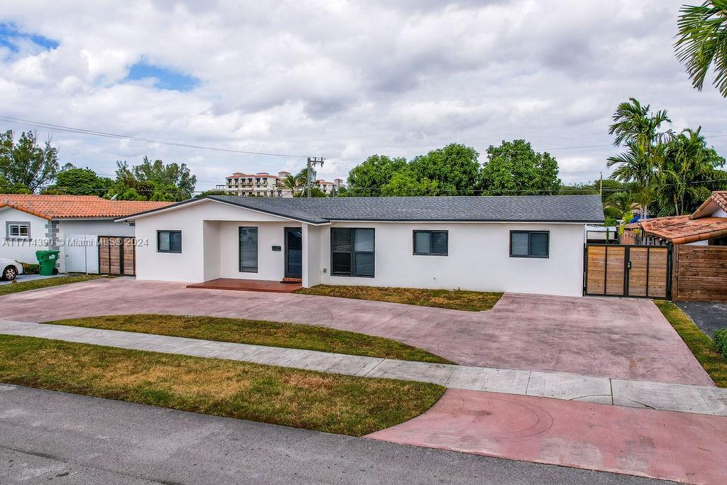 Beautifully Remodeled 5-bedroom, 2-bathroom home in the quiet & family-oriented neighborhood of Fontainebleau Gardens! This open-floor plan home features a circular driveway, Impact windows & doors, luxury wood vinyl floors thru-out, an amazing kitchen with white cabinets, quartz counters, stainless steel appliances & a center island with seating & extra storage, and a spacious primary suite with en-suite bathroom with tub, family room overlooking a large, covered patio with a storage shed & privacy fence. Perfect for Large Families or In-Laws! Centrally located in the desirable Westchester Area! Close to FIU, Major Highways, Malls, Restaurants & More! This is a Must See Home!