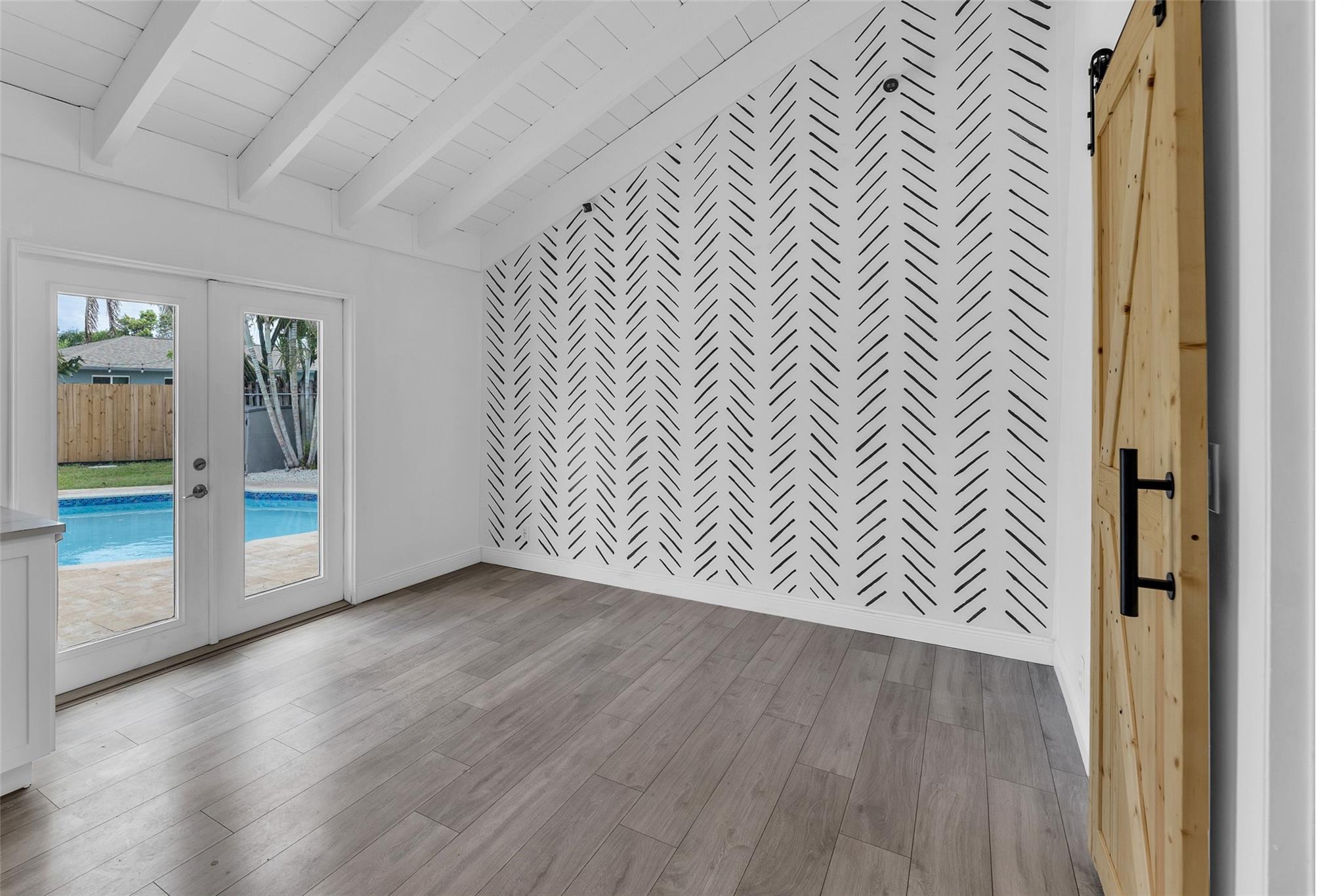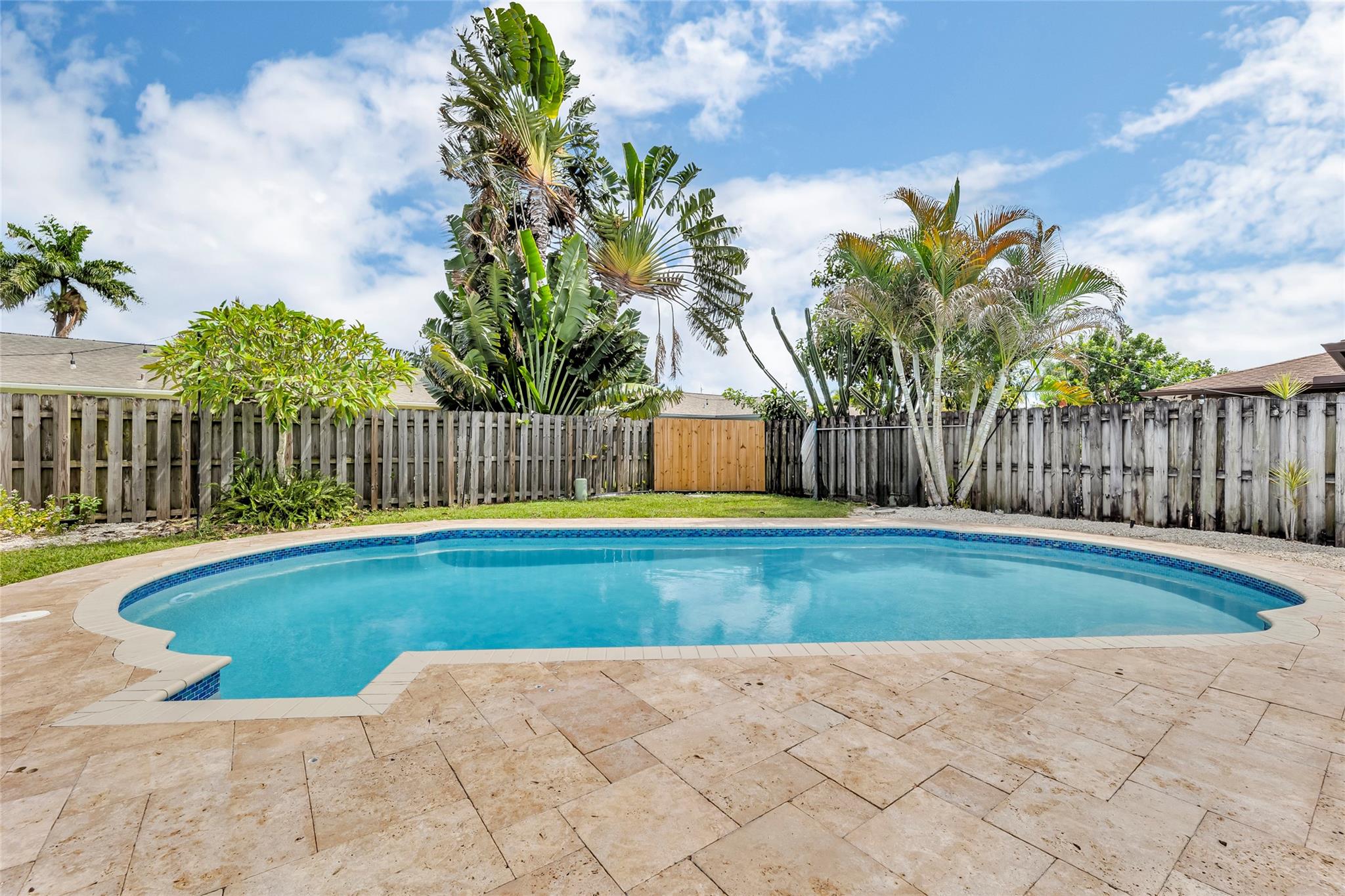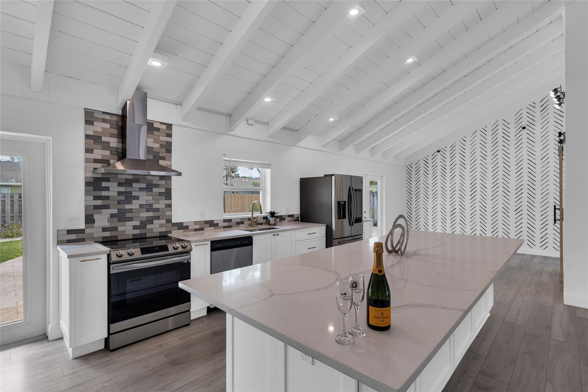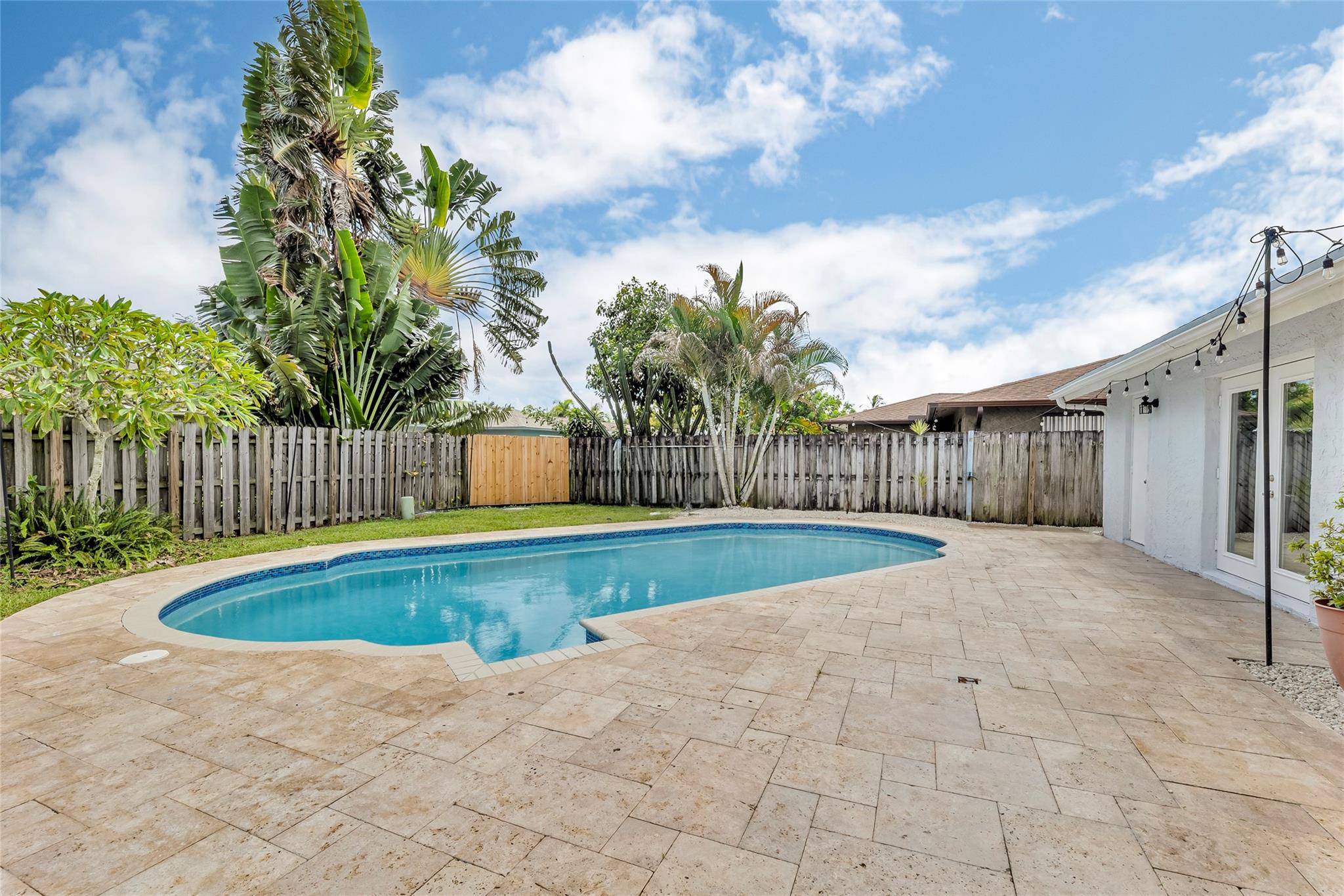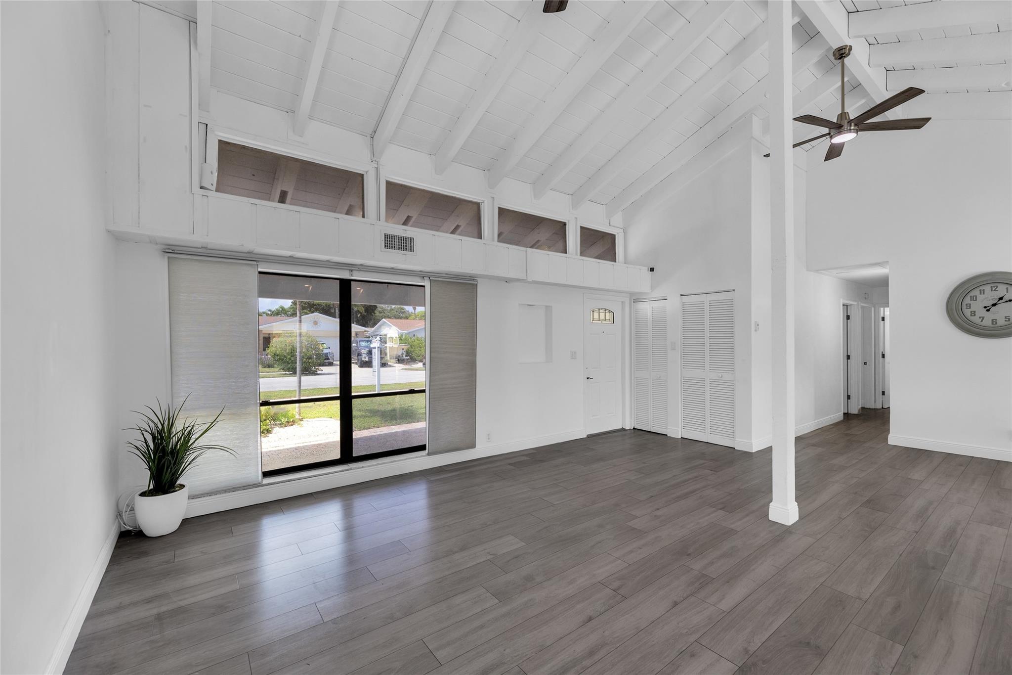 Welcome to your newly priced dream home in the heart of Palm Aire Village East! This beautiful 3-bedroom, 2-bathroom pool home offers a spacious open floor plan with a vaulted ceiling and luxury vinyl flooring throughout. The stunning, fully renovated modern kitchen features a gorgeous oversized island and tons of entertaining space. Step outside to your private backyard oasis, complete with a solar-heated swimming pool that has just been refinished, travertine tile patio, and a fully fenced space. Located in the highly desired, family friendly neighborhood of Palm Aire Village East with NO HOA! Minutes from Publix, restaurants, shops, I-95 and walking distance to Palm Aire Village Park & Calvary Christian Academy!