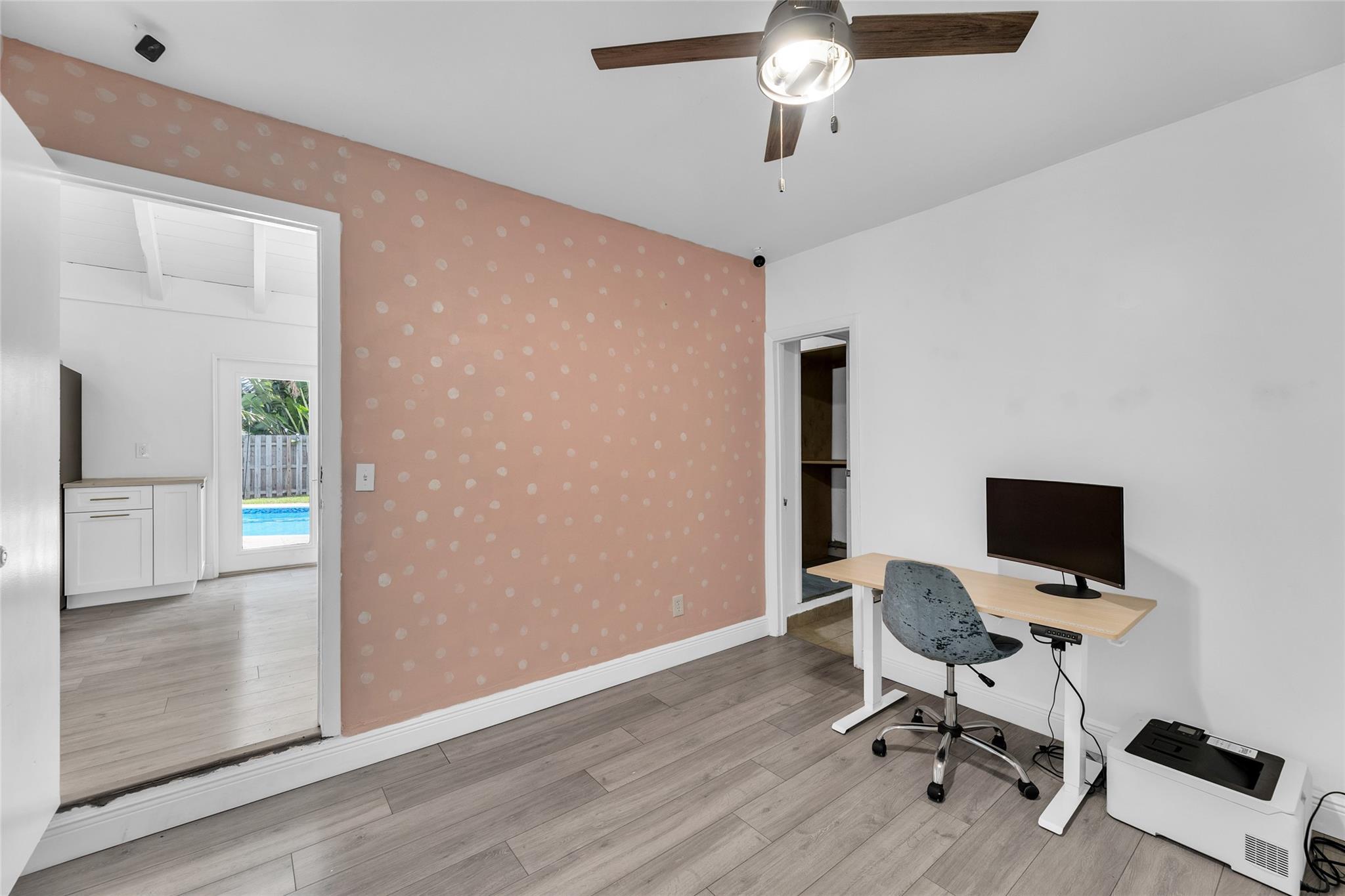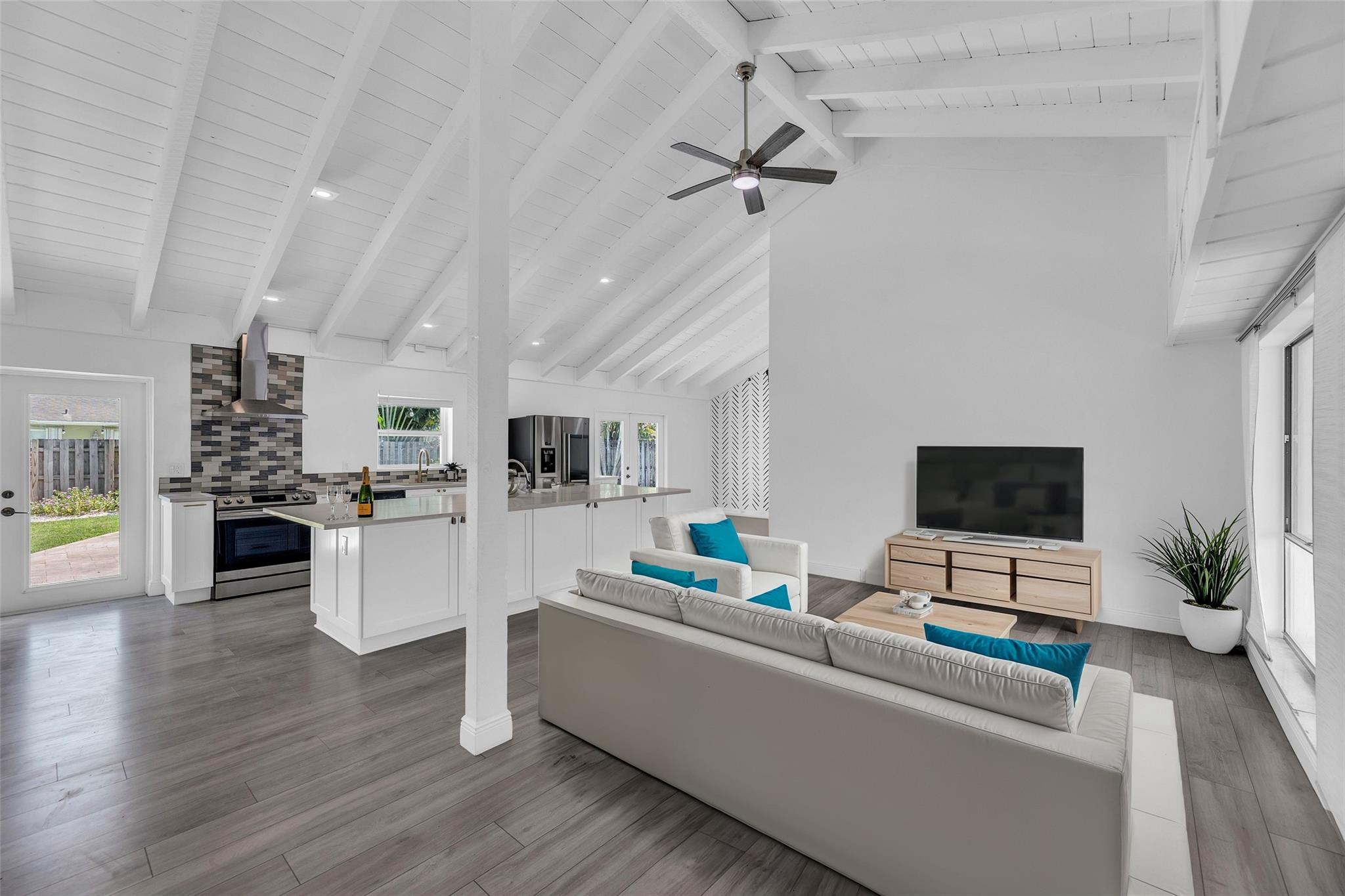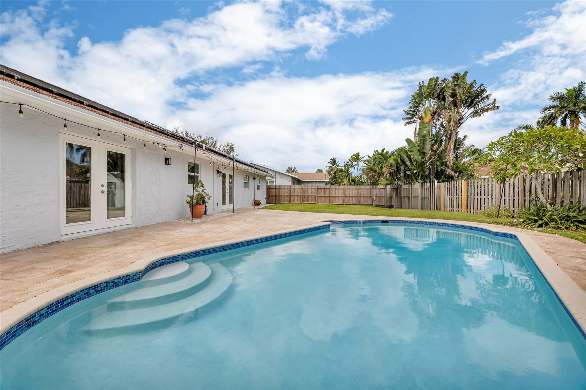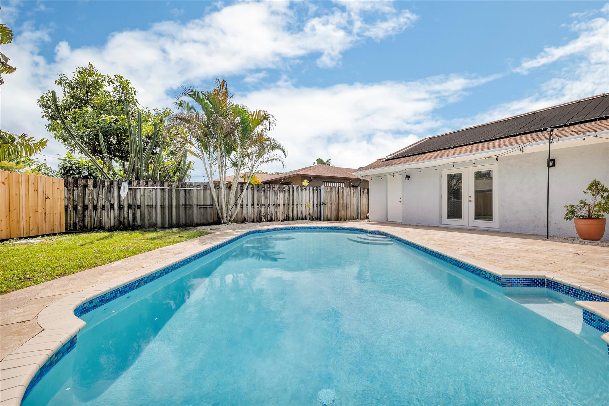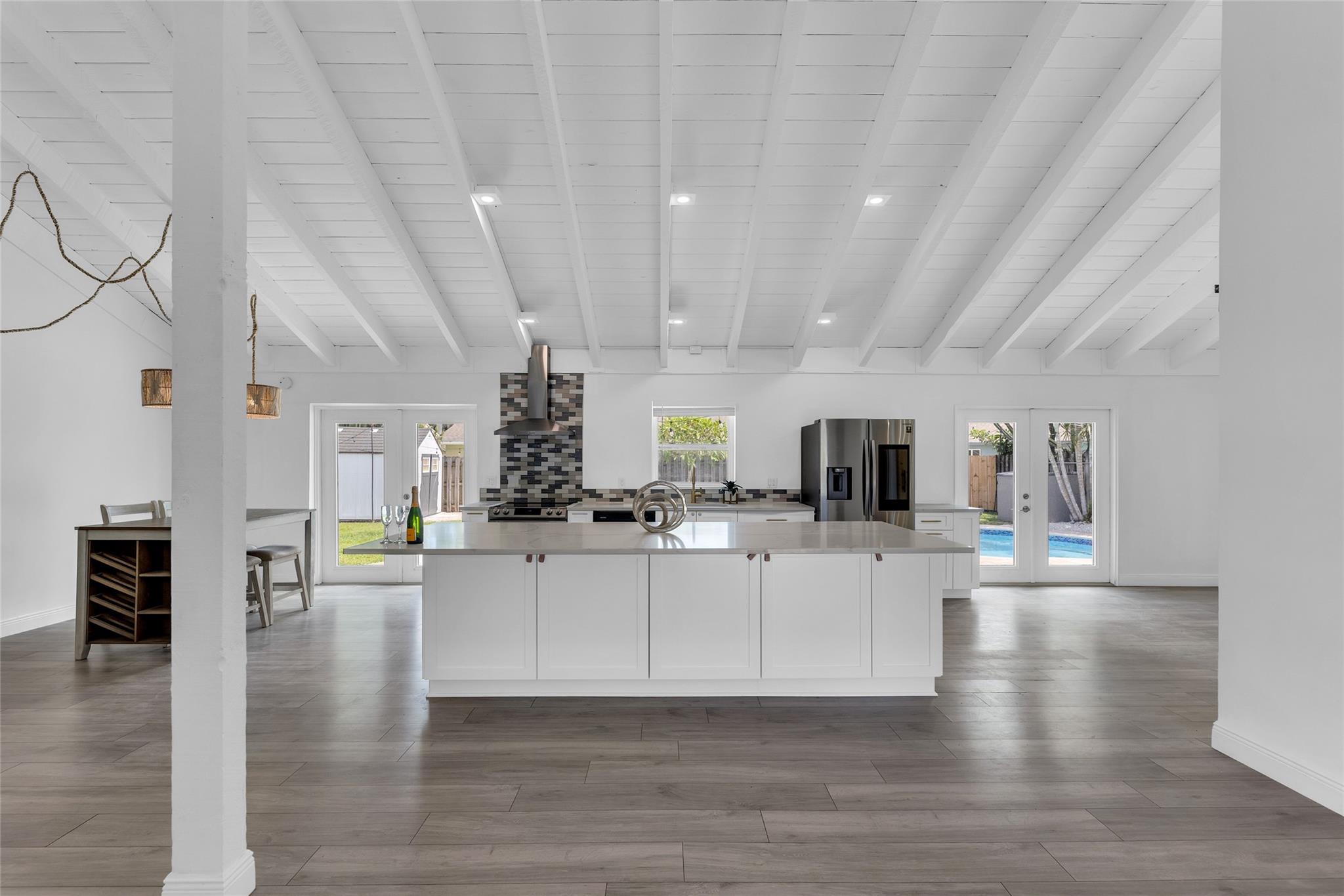 Welcome to your newly priced dream home in the heart of Palm Aire Village East! This beautiful 3-bedroom, 2-bathroom pool home offers a spacious open floor plan with a vaulted ceiling and luxury vinyl flooring throughout. The stunning, fully renovated modern kitchen features a gorgeous oversized island and tons of entertaining space. Step outside to your private backyard oasis, complete with a solar-heated swimming pool that has just been refinished, travertine tile patio, and a fully fenced space. Located in the highly desired, family friendly neighborhood of Palm Aire Village East with NO HOA! Minutes from Publix, restaurants, shops, I-95 and walking distance to Palm Aire Village Park & Calvary Christian Academy!