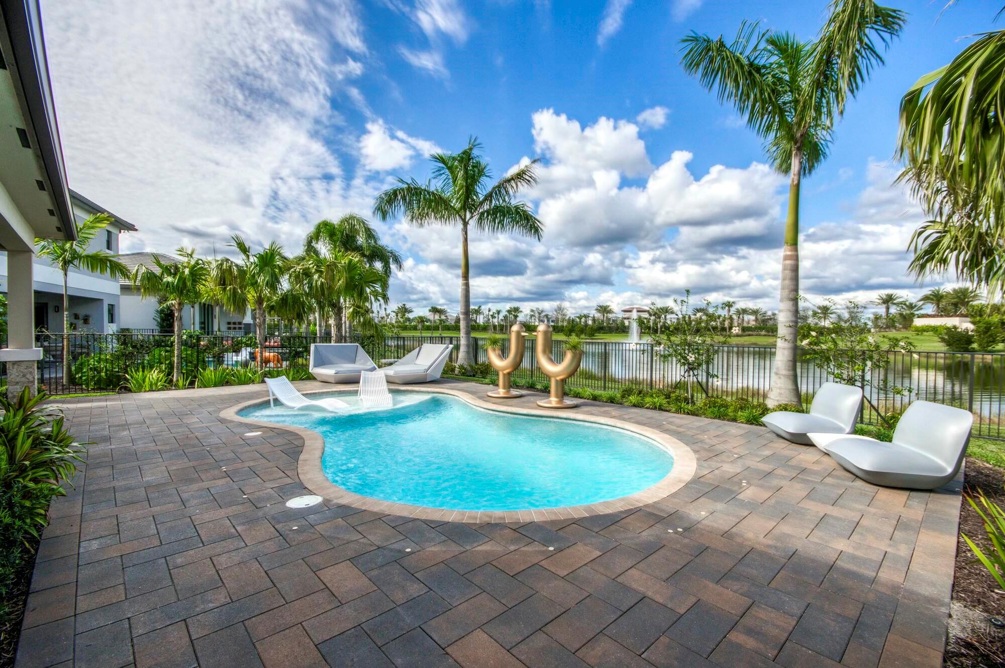 New construction completed in July 2025. (Photos are of a model home. Photos of actual home coming soon.) Luxury living in the new resort-style community of Apex at Avenir. Highly desired Pegasus model from award winning builder GL Homes. Located on a premium lakefront homesite, this two-story floor plan offers 3 bedrooms (primary bedroom on the 1st floor), 4 full baths PLUS a loft & den and, a 2 car garage. Absolutely stunning finishes run throughout the home including hardwood & porcelain tile flooring, quartz countertops, and upgraded solid wood cabinetry. Live comfortably in this energy efficient home with CBS construction, impact glass windows, and natural gas. Entertain friends and family in the open concept great room with volume ceilings and large sliding glass doors offering