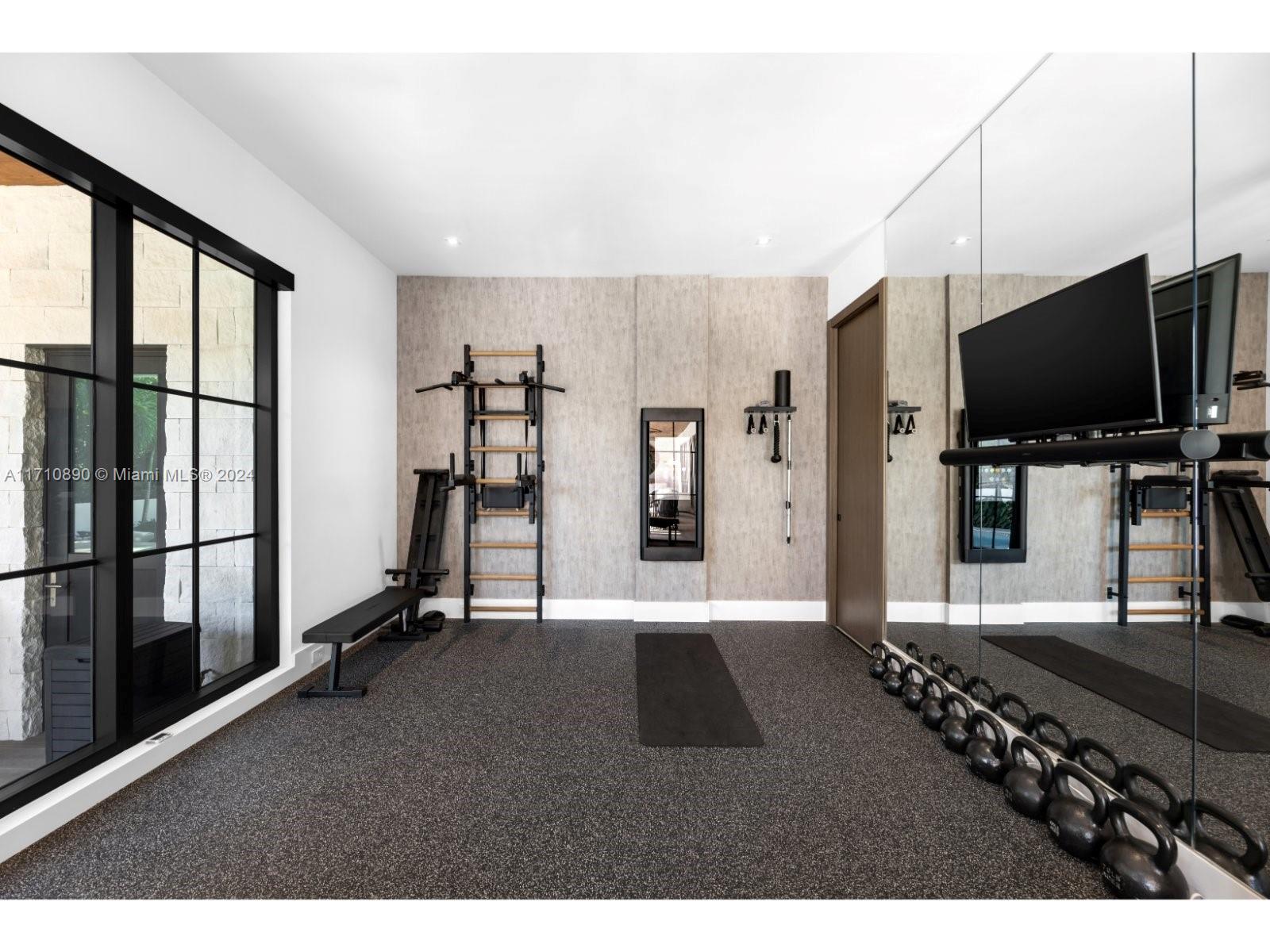 Elevate your lifestyle in this brand-new estate completed in 2024, on prestigious La Gorce Island. This architectural masterpiece features 15 ft ceilings, abundant natural light, 5 bedrooms, 5/1 bathrooms & 4,288 SF of living area and offers a seamless flow from the indoors to the outdoor living areas. The gourmet kitchen is an epicurean dream, featuring porcelain countertops, Italkraft cabinetry, and top-of-the-line appliances. The primary suite includes a spacious walk-in closet and spa-inspired bath with garden views. Landscaping by MAKwork creates an entertainer’s paradise featuring pool, spa, summer kitchen and two fireplaces. Additional features include a fully equipped gym, space for a car lift, and generator. Enjoy the perfect blend of privacy, elegance, and upscale functionality.