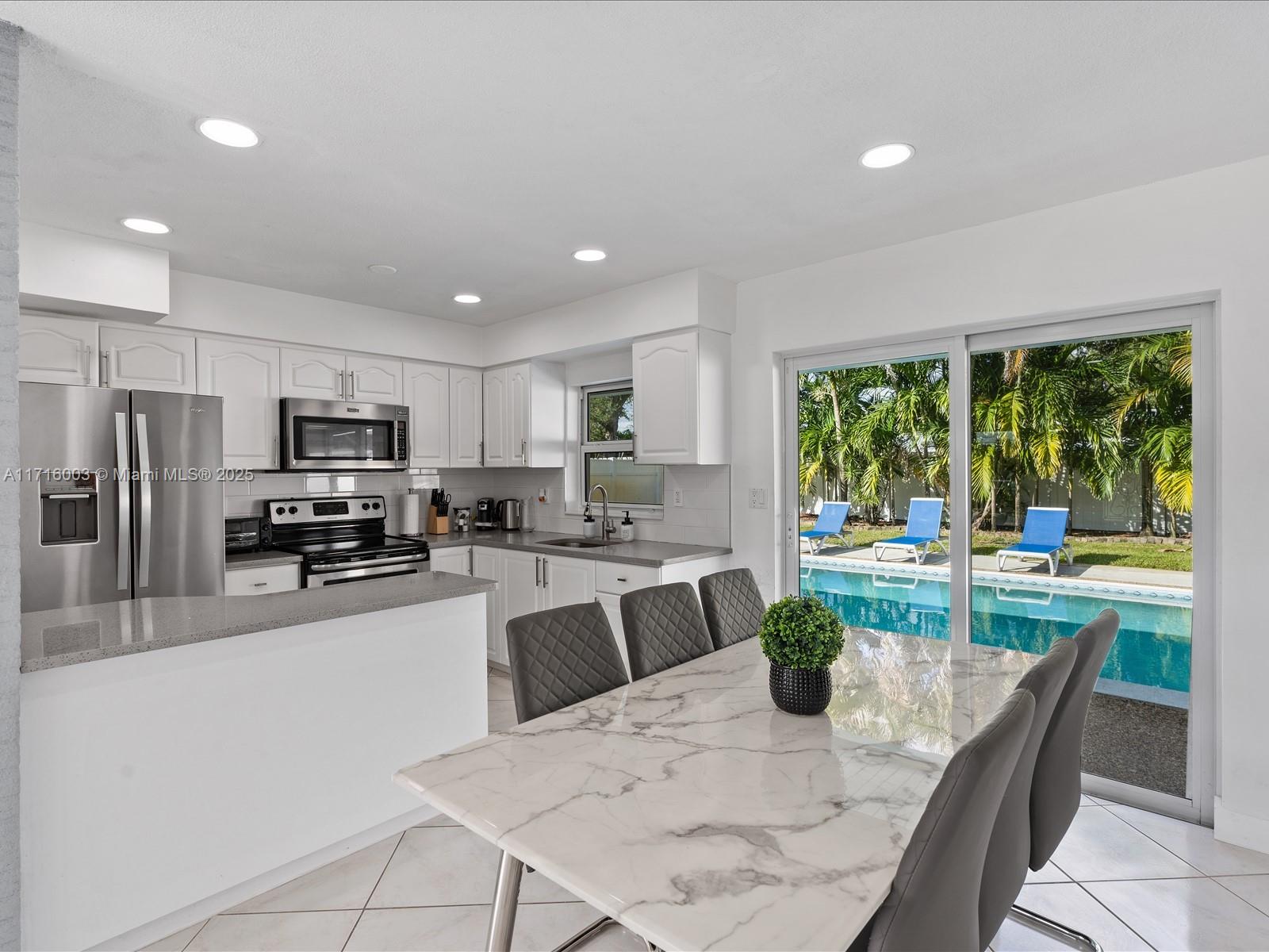 Step into modern living with this 3-bedroom, 2-bathroom gem featuring a 2020 roof, impact windows, and a 2021 A/C system. The sleek kitchen boasts stainless steel appliances and a spacious layout, perfect for entertaining. Enjoy Florida's sunshine year-round with a heated pool and lush backyard, visible through large sliding glass doors. Outdoor storage adds convenience, while the stylish front facade enhances curb appeal. Located in a sought-after neighborhood, this home is perfect for families or investors. Don't miss out—schedule a tour today!