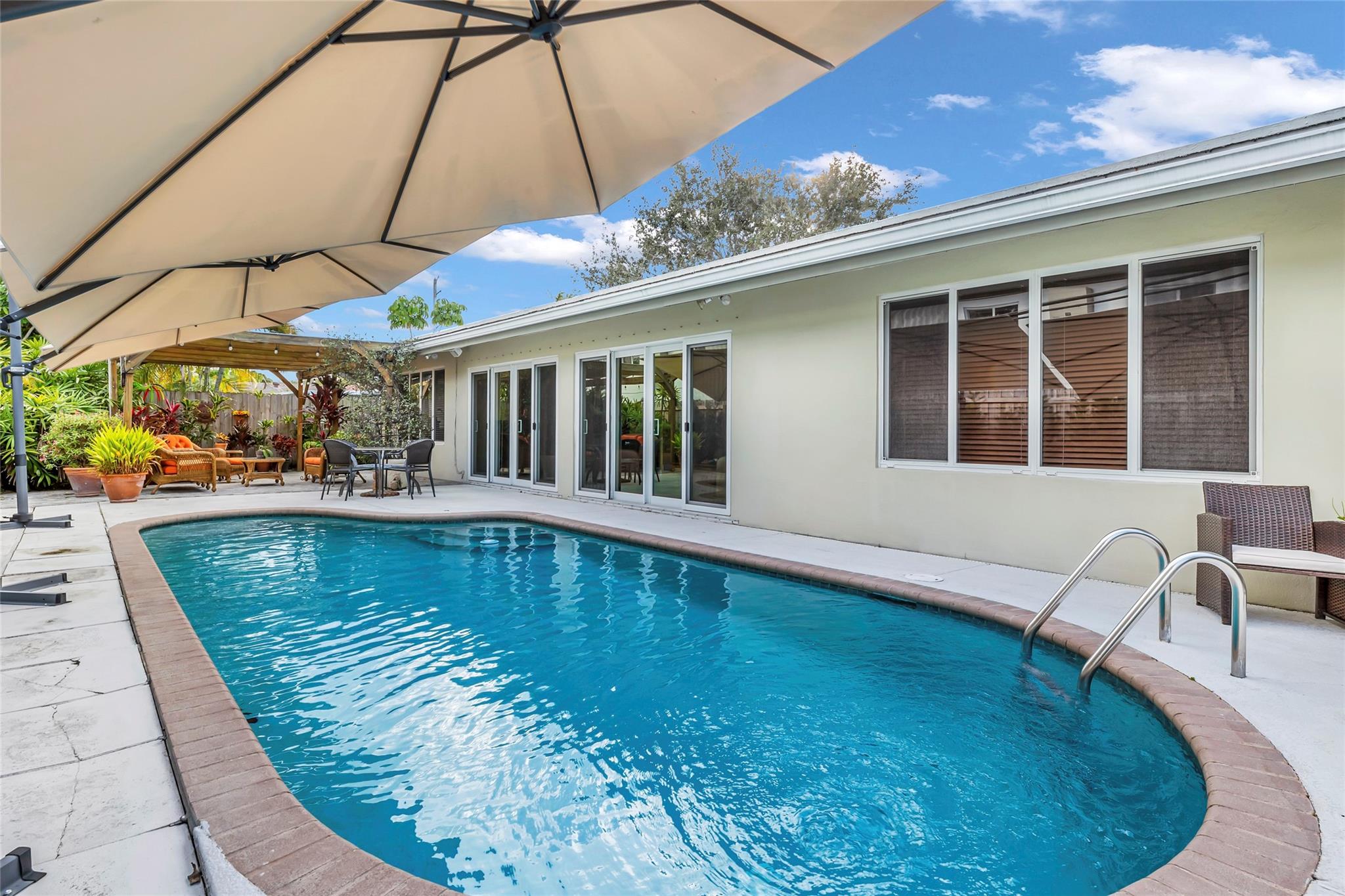 Discover the ultimate Pompano Beach lifestyle in this inviting home, set on a spacious, expanded lot surrounded by swaying palm trees and lush, tropical landscaping. This serene property offers the perfect retreat with its private, no-HOA setting, allowing you to enjoy peace and tranquility in a welcoming community. The home with new roof is designed for comfort and security, featuring impact windows, doors, and a reinforced garage door for added protection. Stay cool year-round with a brand-new AC system (backed by a 10-year transferable warranty). The outdoor oasis includes a sparkling swimming pool and a charming pergola, ideal for lounging or entertaining. Additional highlights include natural gas service and a small generator hookup for convenience and peace of mind.