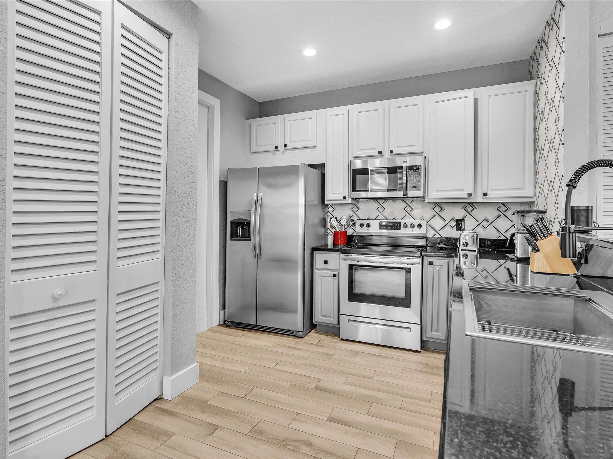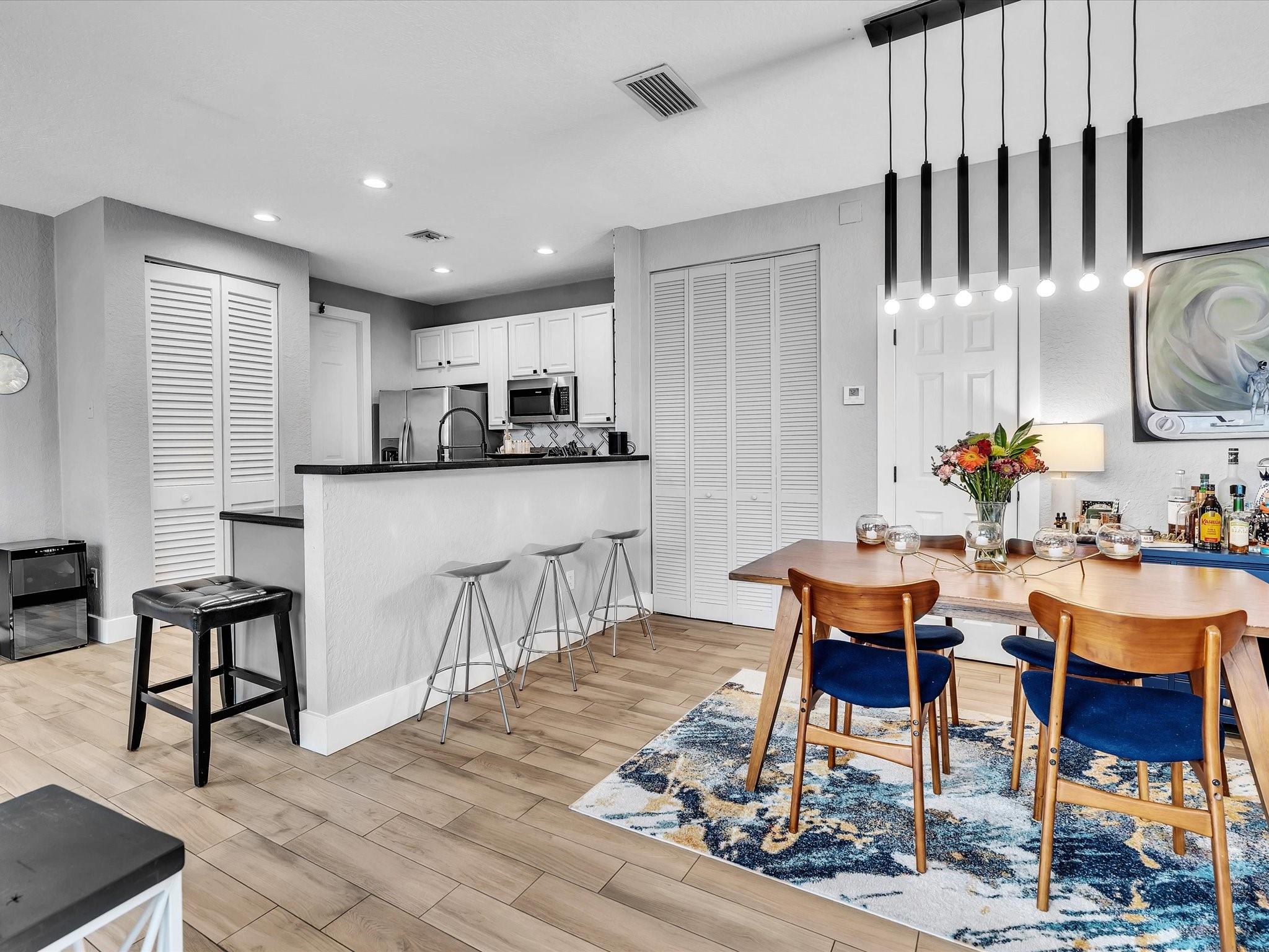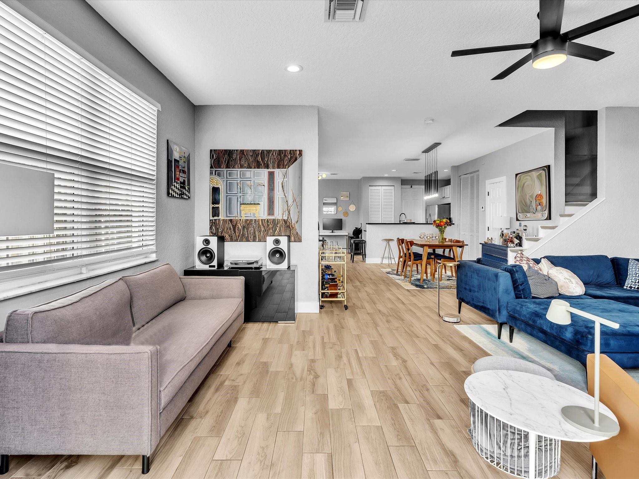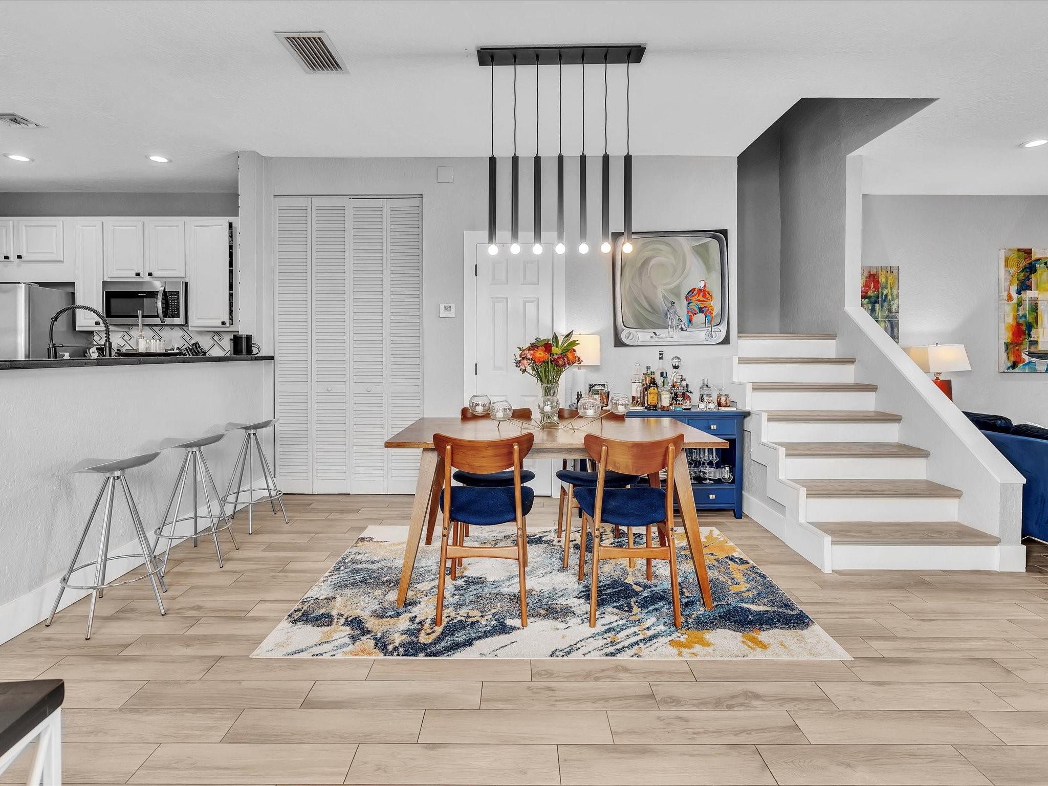 Price Improvement!! Welcome to this beautifully updated 2-story townhome, offering 2,062 sq ft of spacious living. This home is perfect for modern living, with stylish finishes and upgrades throughout. Features include a large primary bedroom with a luxurious en-suite bathroom with separate shower and tub, dual vanity, walk-in closet and Juliette balcony. Don't miss the updated kitchen complete with stainless appliances, marble backsplash, convenient pantry, chef's sink and breakfast nook. Enjoy the upstairs sitting area and laundry. Gorgeous wood-look tile flooring downstairs for an easy-to-maintain surface and laminate flooring upstairs. Other features include impact windows, doors and garage door, AC unit-2020, paver driveway and exterior lighting. Don't miss this stunning townhome!
