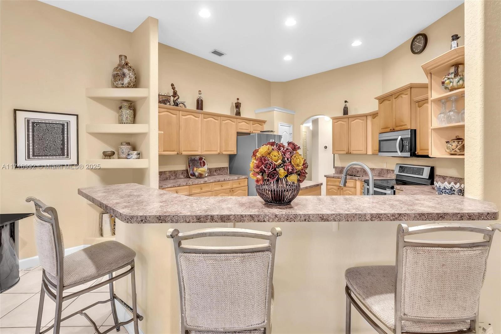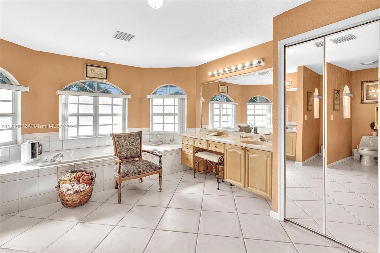 Nestled on over an acre of greenery in The Acreage, this Palm Beach estate offers spacious living and endless possibilities to create your dream oasis. It features 4 bedrooms, 3 bathrooms, an office/exercise room, and a cozy wood-burning fireplace, with volume ceilings enhancing its airy feel. The master suite opens onto a screened lanai, while the kitchen, with an island and breakfast nook, flows into a large family/game room. Solar panels provide energy savings ($194 a month leased), and the property is pre-wired for a pool. The expansive grounds offer room for a pool, outdoor kitchen, or parking for boats/vehicles, plus space for gardening or other projects. Fruit trees add natural charm to this serene property. Roof being replaced!