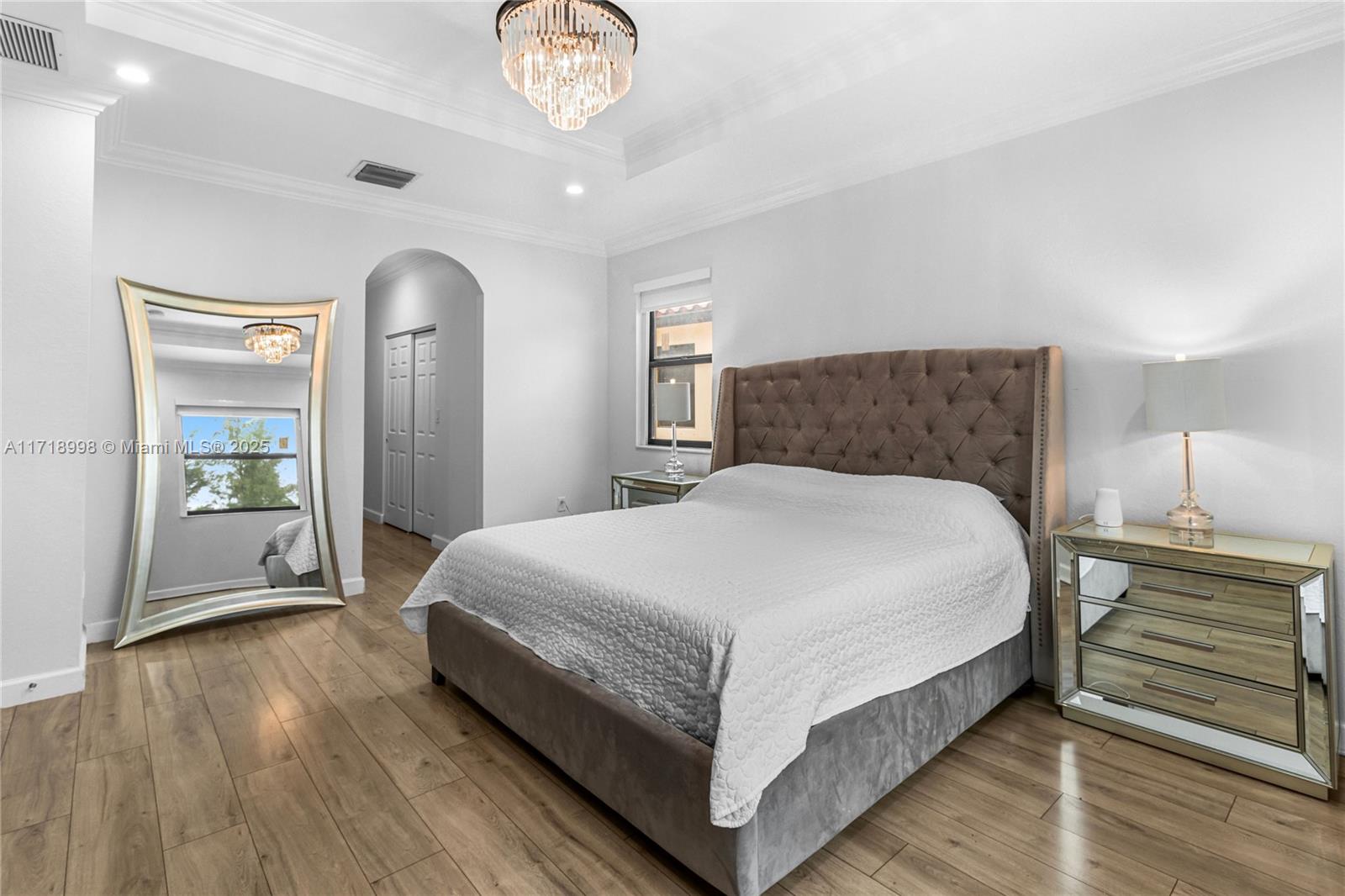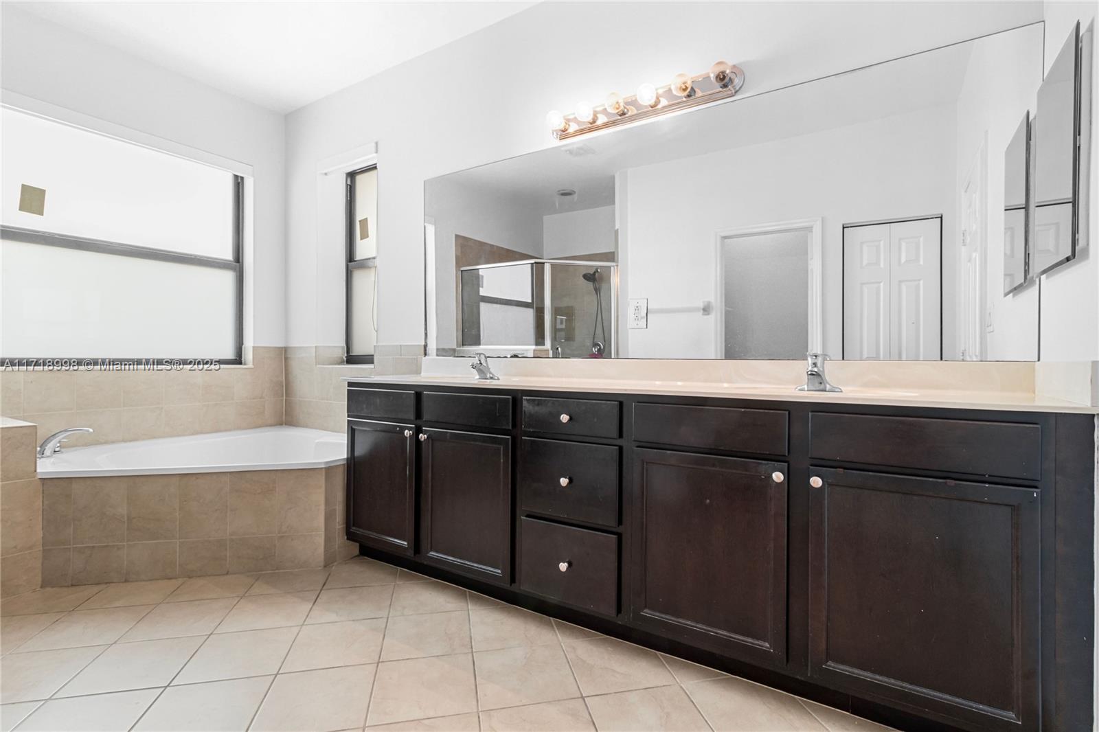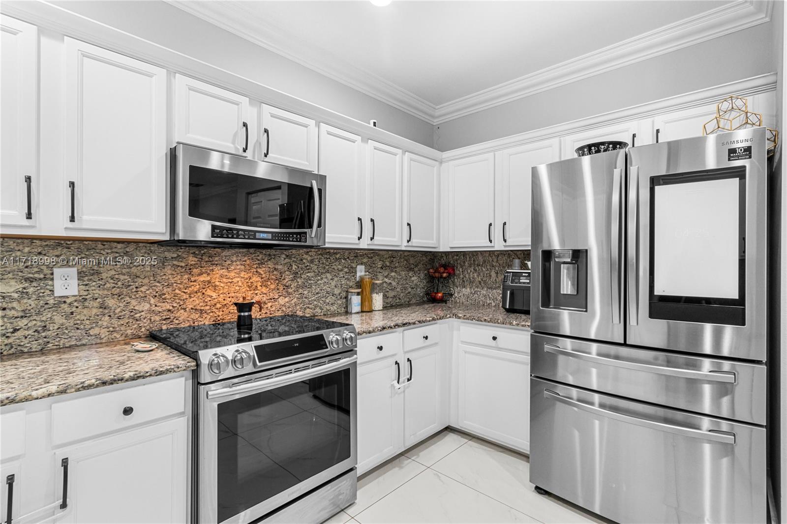 Located in a Cul De Sac! This beautiful Single Family Home is the only one with all these features and upgrades available in the market: One of the four bedrooms is located on the first floor with a full bathroom, that makes it perfect for a home office or the family convenience / privacy. Extended driveway that allows you to park 4 cars outside + 2 parking spaces inside the garage. Porcelain floor on the first floor, crown molding, newer and upgraded appliances in kitchen, high impact windows and doors throughout the house. The patio features a 14 x 28 pool (salt water, lights at night) and a covered area with a modern outdoor kitchen and counter that includes bbq, gas stove, wine cooler, mini fridge. Premium location in the perimeter, so no other house behind your patio