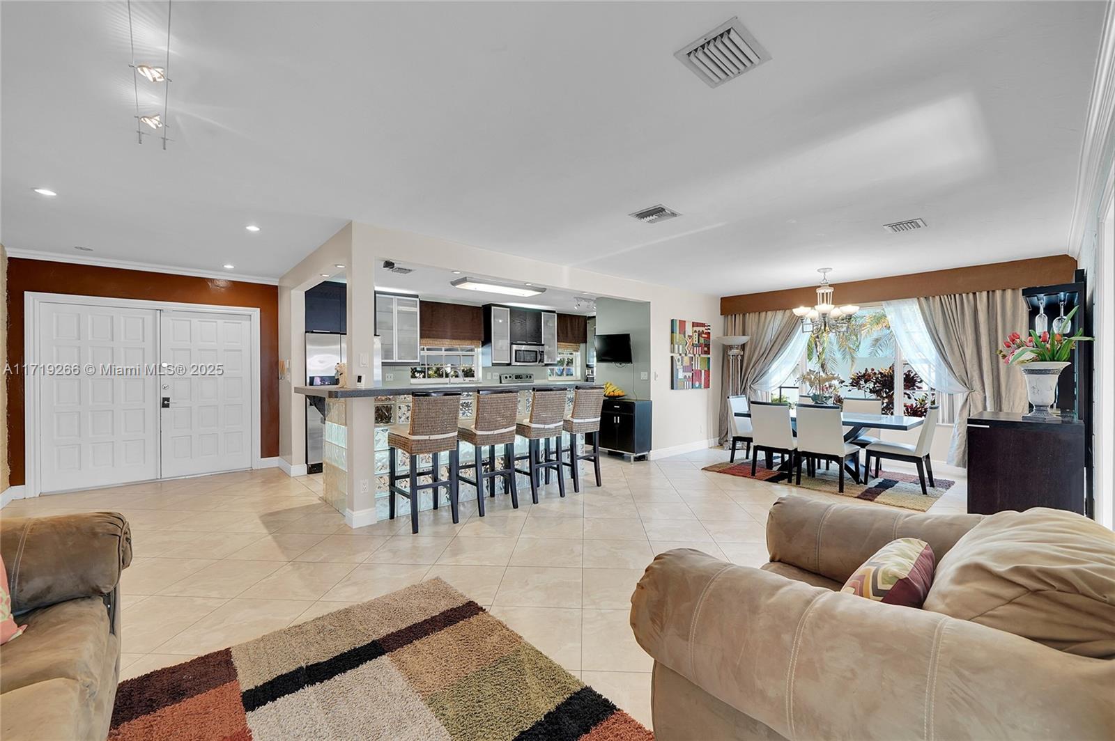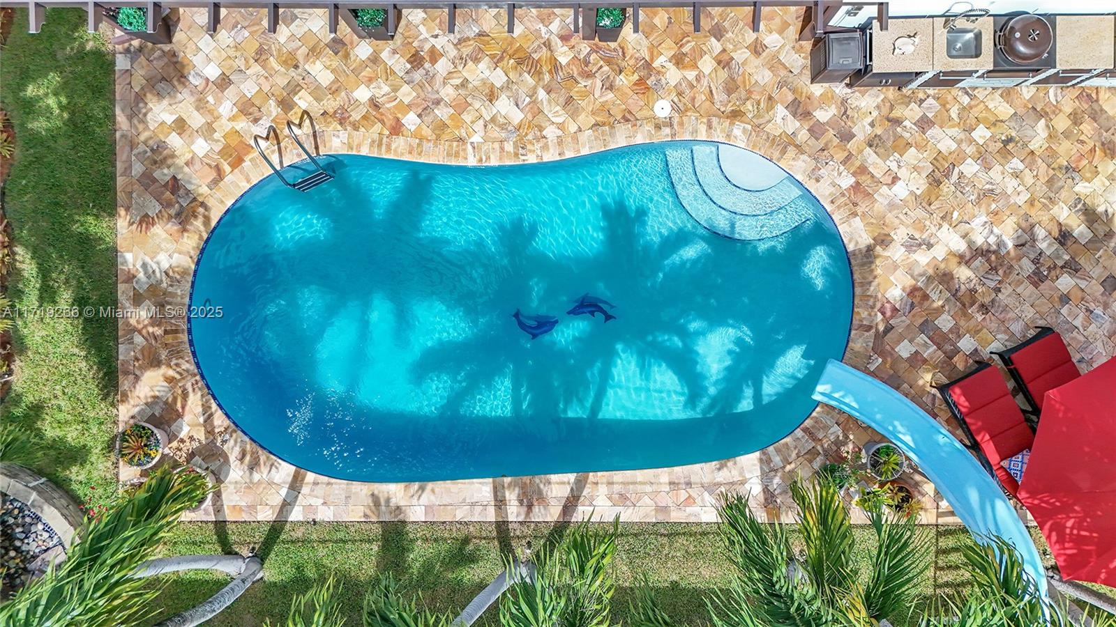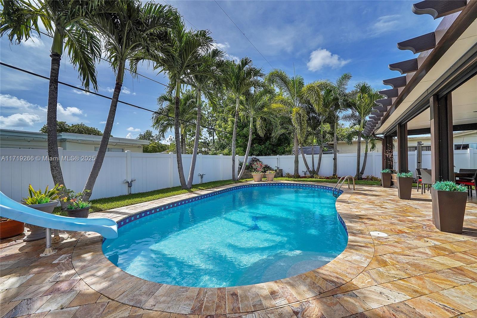 Discover serenity with 1,980 Sqft of covered area pool house in Windward Heights, quiet neighborhood, just 3 minutes from i-95, 10 min from Aventura and beaches. With several synagogues and religious schools just walk distance. This home is fully furnished, giving a peace of mind with it being move in ready. It has 3 bedrooms, a family room, and 2 bathrooms. The open-concept kitchen, living, and dining area, creates a seamless flow for entertaining. Step outside to your private paradise: a pool with a cascade and slide, barbecue set. The beautifully landscaped garden, adorned with palms, coconut trees, and marble bricks, adds an extra touch of elegance. Construction of concrete with impact windows and doors. Enjoy a lifestyle with a Walking path and weight machines just 3 blocks away