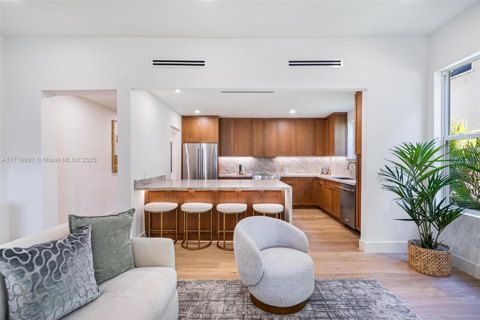 Discover this exquisite 1925 Old Spanish-style residence in the heart of Coral Gables. With its rich architectural details and a complete remodel, this home seamlessly blends historic charm with modern luxury. Enjoy a new electrical system, PVC plumbing, a brand-new roof, and impact windows/doors for peace of mind. The stunning kitchen features natural oak cabinetry and luxurious Taj Mahal quartzite countertops, perfect for entertaining. Step outside to a beautifully landscaped brick paver patio and a fully functioning attached guest house, ideal for visitors. Experience the vibrant Coral Gables lifestyle, with lush greenery and nearby dining and shopping.