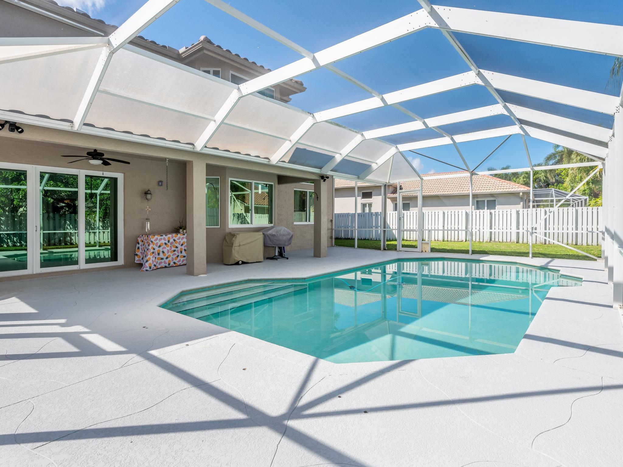 New roof, Impact Glass throughout, 3 car garage, pool home. Brand new hurricane rated garage doors. Updated on interior. Oversized pool with a generous pool deck enclosed for optimal entertaining. Large Fully fenced yard. Full bedroom and full Bath downstairs. Kitchen is open to family room with center island, wine fridge, and tons of counter top space. Bay windows Soaring ceilings giving grand entry. Master is spacious with sitting area, two walk in closets, and tons of light. Secondary bedrooms are noticeably large. A+ schools. Walking distance to Elementary school. 24 hour guard gated community with community pool and playground.