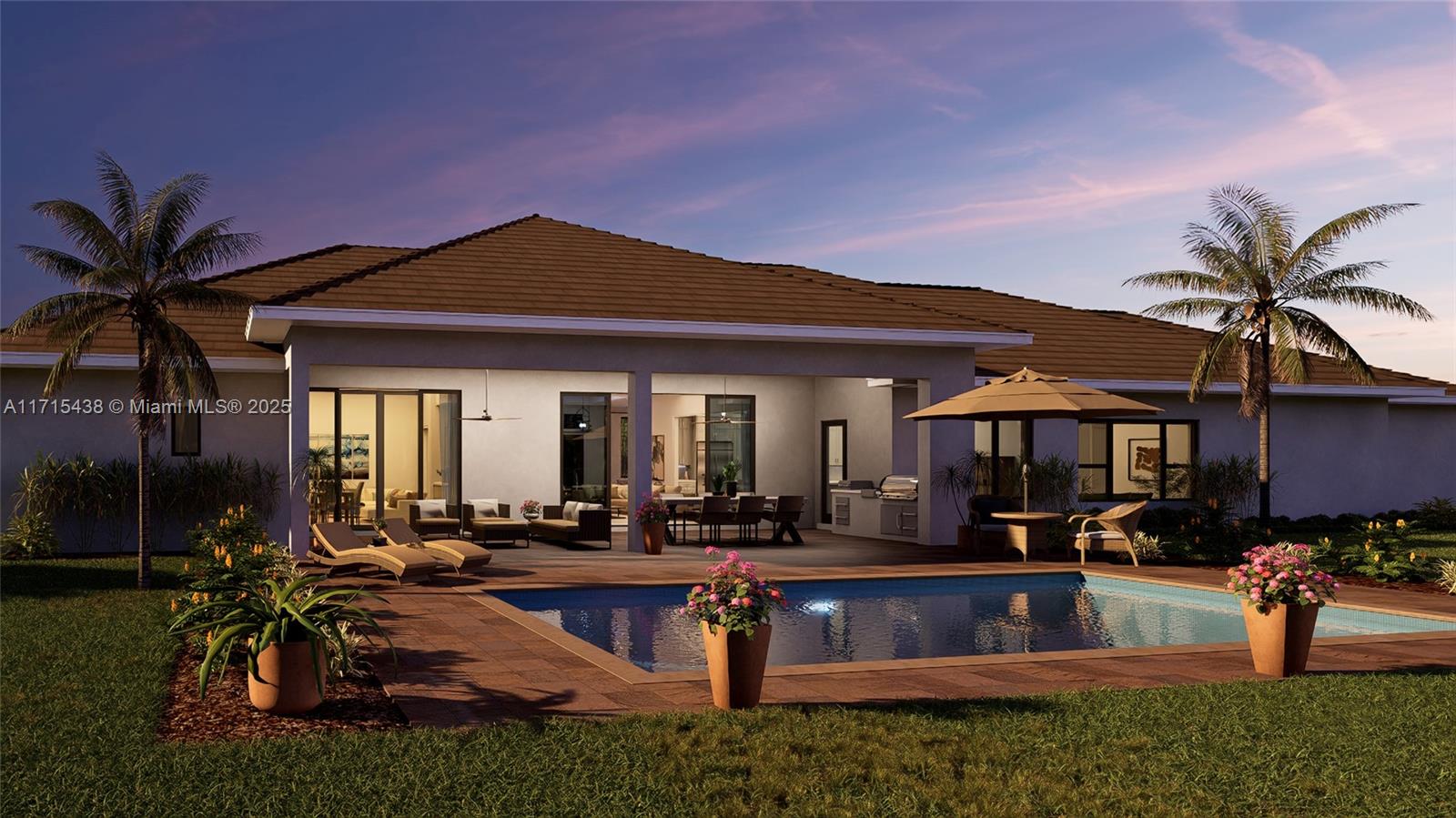We are thrilled to announce the availability of our latest new construction home at Flamingo Ranch Estates in Davie! The MAGNOLIA HOME is a stunning single-story residence offering 5,182 sq ft of interior living space (6,791 total sq ft). This expansive home features 4 bedrooms, 5 ½ baths, an in-law suite with a private entrance, an office (that can double as additional bedroom with bath), and a spacious club room. Designed to balance open living with private retreats, it’s perfect for a modern family. All bedrooms are en-suite. The kitchen is a chef’s dream, equipped with a large center island, ample storage, premium Jenn-Air appliances, and a bright breakfast area. A luxurious pool & expansive covered patio, overlook the large & lush yard. An exceptional home in a non HOA prime location!