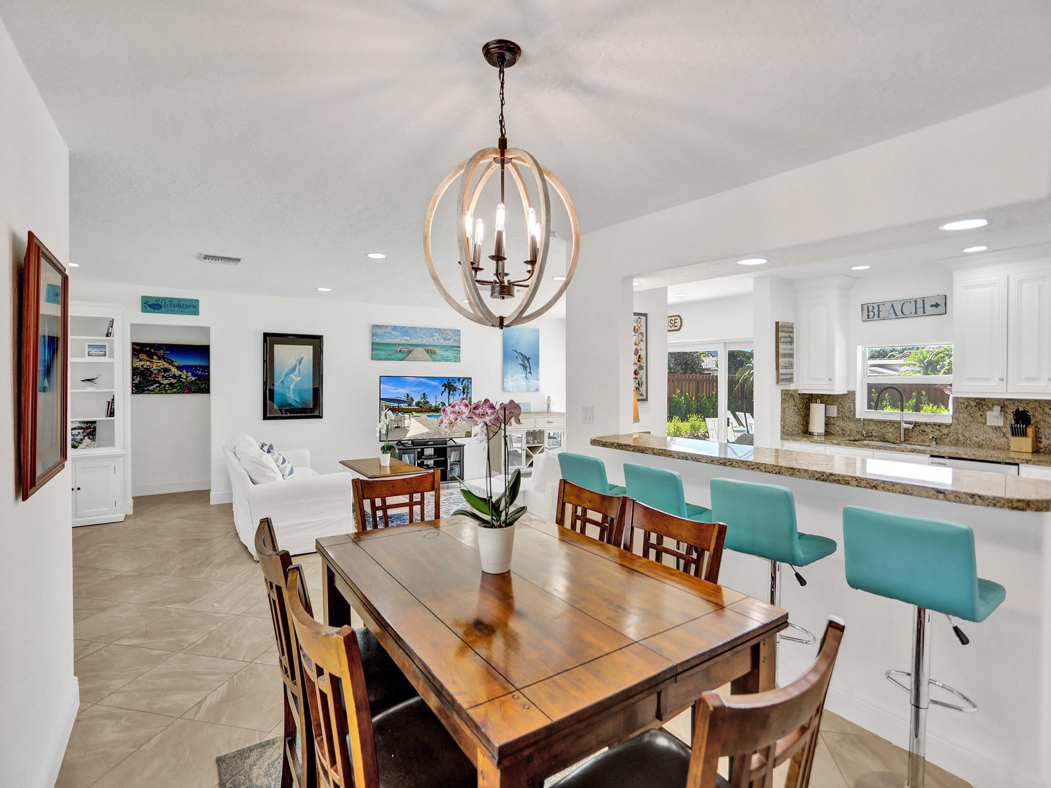 A true Entertainer's Paradise that needs nothing but someone to call it home. Enter into an open floor plan with impact glass doors that frame stunning views of the large backyard & pool. The expansive kitchen can fit an island & is open to the dining & living rooms. The primary suite offers an ensuite bathroom with a double vanity & walk-in shower. A fully renovated second bath (2023) boasts a double vanity & a deep soaker tub/shower combo. The true highlight is the fully landscaped backyard with a sparkling heated pool, hot tub & large patio perfect for relaxation or entertaining. The air-conditioned 1-car garage can easily be converted back into a 3rd bedroom as it is insulated has a window and a separate entrance. Additional upgrades include impact windows & doors & a metal roof (2023)