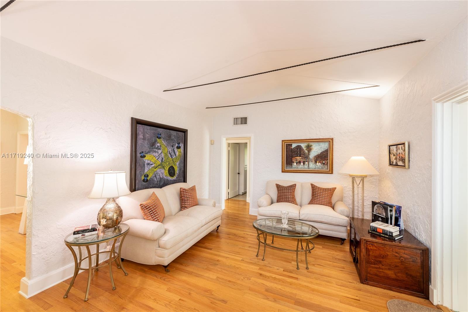 Explore the charm of this old Spanish hacienda on a spacious 5,650 square foot lot (50 x 113). With approximately 1,841 square feet of living space, this home originally featured two bedrooms and one bath, built-in 1925 with a 1-car garage. A mid-1990s addition includes a large family room, full bath, laundry room, and a sizable closet, which can easily be converted into a third bedroom or a primary suite. The inviting front porch showcases a beamed ceiling and original multi-tile floor. Inside, the spacious living room features a fireplace and hardwood floors, while two bedrooms and a bath lie to the east, joined by a formal dining room and modern kitchen. The family room opens to a lovely backyard, complemented by a detached garage and ample brick driveway.