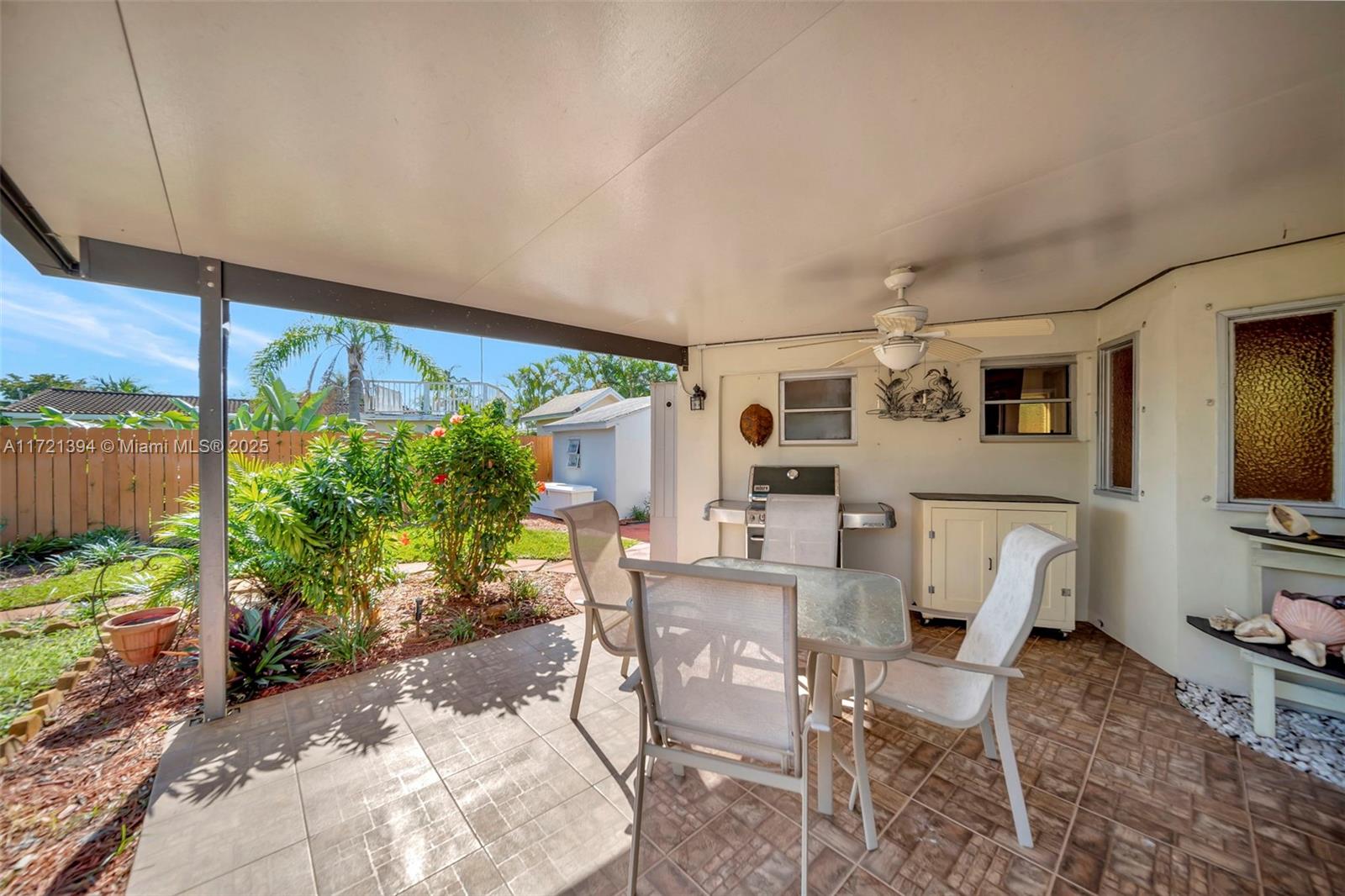 This 4-bedroom, 3-bath single family home showcases pride of ownership! The 3-bedroom split floor plan is complemented by a 4th bedroom and 3rd bath with a separate entrance, ideal for a home office or in-law suite. The serene fenced backyard features a sprinkler system, covered porch, a detached shed with electricity, and also extra outside storage. 7 year old roof, 1 year new A/C, tiled floors throughout and an updated master bath add to its appeal. Conveniently located near schools, shopping, and within walking distance of local conveniences. A must-see property offering versatility and charm!