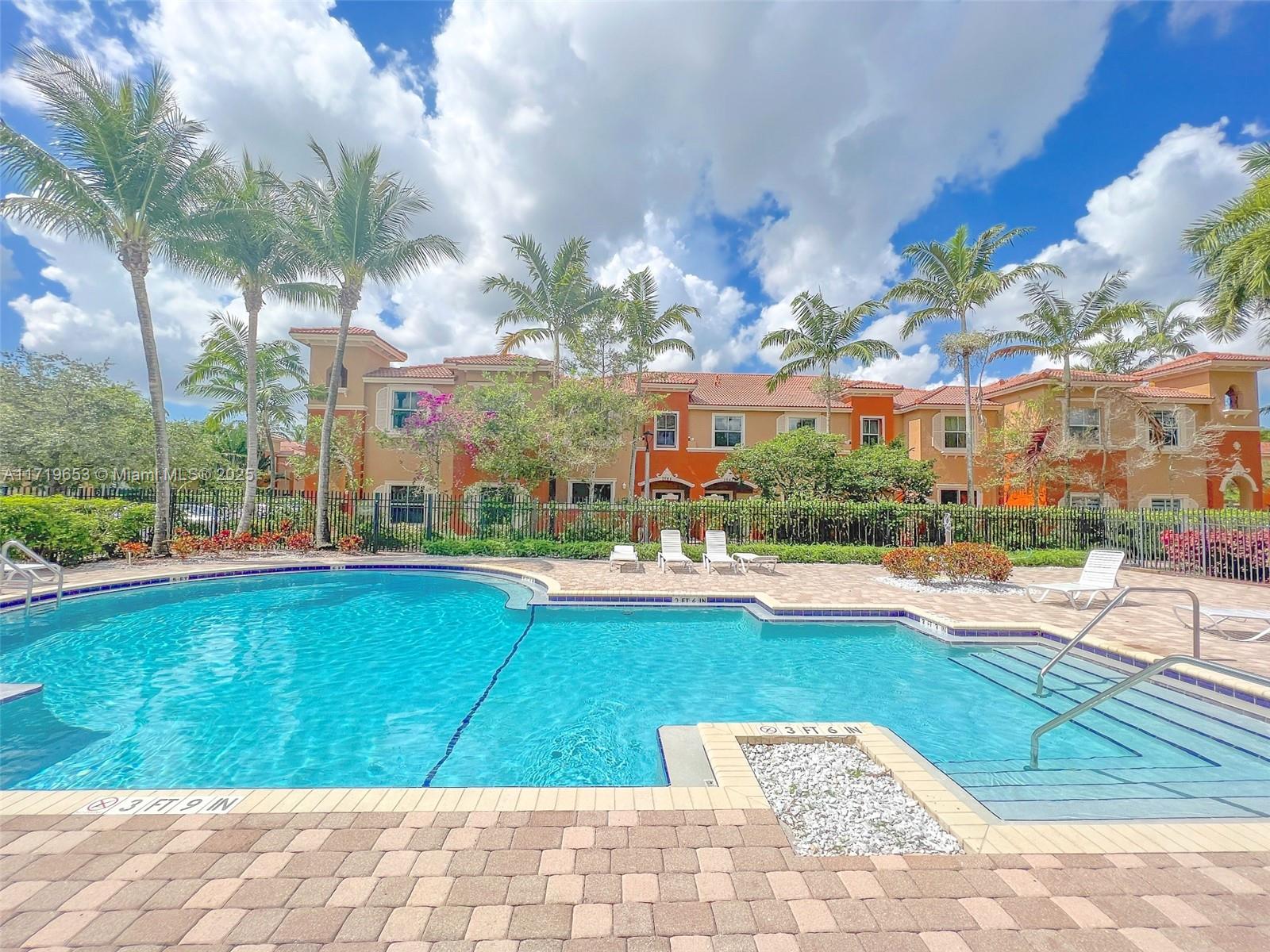 Spacious 3 bedroom, 2 1/2 bath Townhome in the sought-after gated community of Martinique. The home features a smart layout with separate living, dining, and family rooms, and an open-concept kitchen with granite countertops and stainless steel appliances. The kitchen & family room walk out to private patio great for entertaining. Major upgrades include IMPACT windows and doors and 2022 AC system. Biggest 3 bedroom model in the 2007-built community. Martinique amenities include a modern pool, playground, and community clubhouse. Fantastic location close to shopping, entertainment, the Turnpike, I-75, and top school options. Great association with reserves and roof included in fee. Move quick on this one!