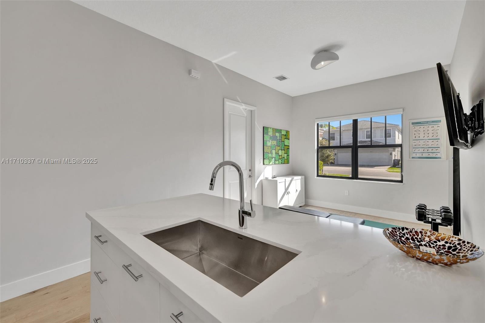 Next Gen, Guest Suite w/ Private Entrances! Experience modern luxury in this 5-bedroom, 2-story home in Marbella, Miramar, built in 2022. At 3,633 sq ft, it features an attached in-laws suite w/ a wet bar, fridge, bedroom, bath, sitting room & secondary laundry—ideal for guests or a home office. Gourmet kitchen w/ quartz counters, cooking island opens to large, bright great room. Upgrades include Luxury Vinyl floors, designer wall coverings & paint, Cat-6 wiring, Hurricane Impact Windows, Doors & Garage, window treatments, Epoxy Garage & Smart Home w/ Ring w/ 6 Cameras, EV charger, smart lock. PVC Fenced backyard w/ Artificial Turf & expanded Pavers. Located in a new gated community w/ a heated lakefront Pool, Clubhouse, Gym & close to top-rated schools, shopping, dining & highways.