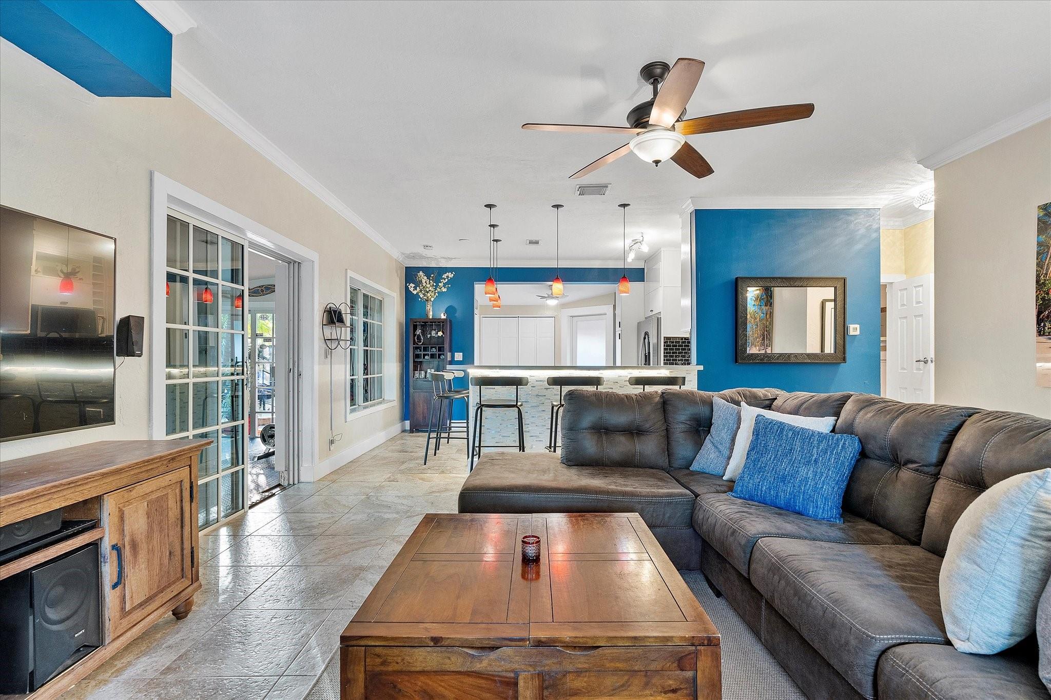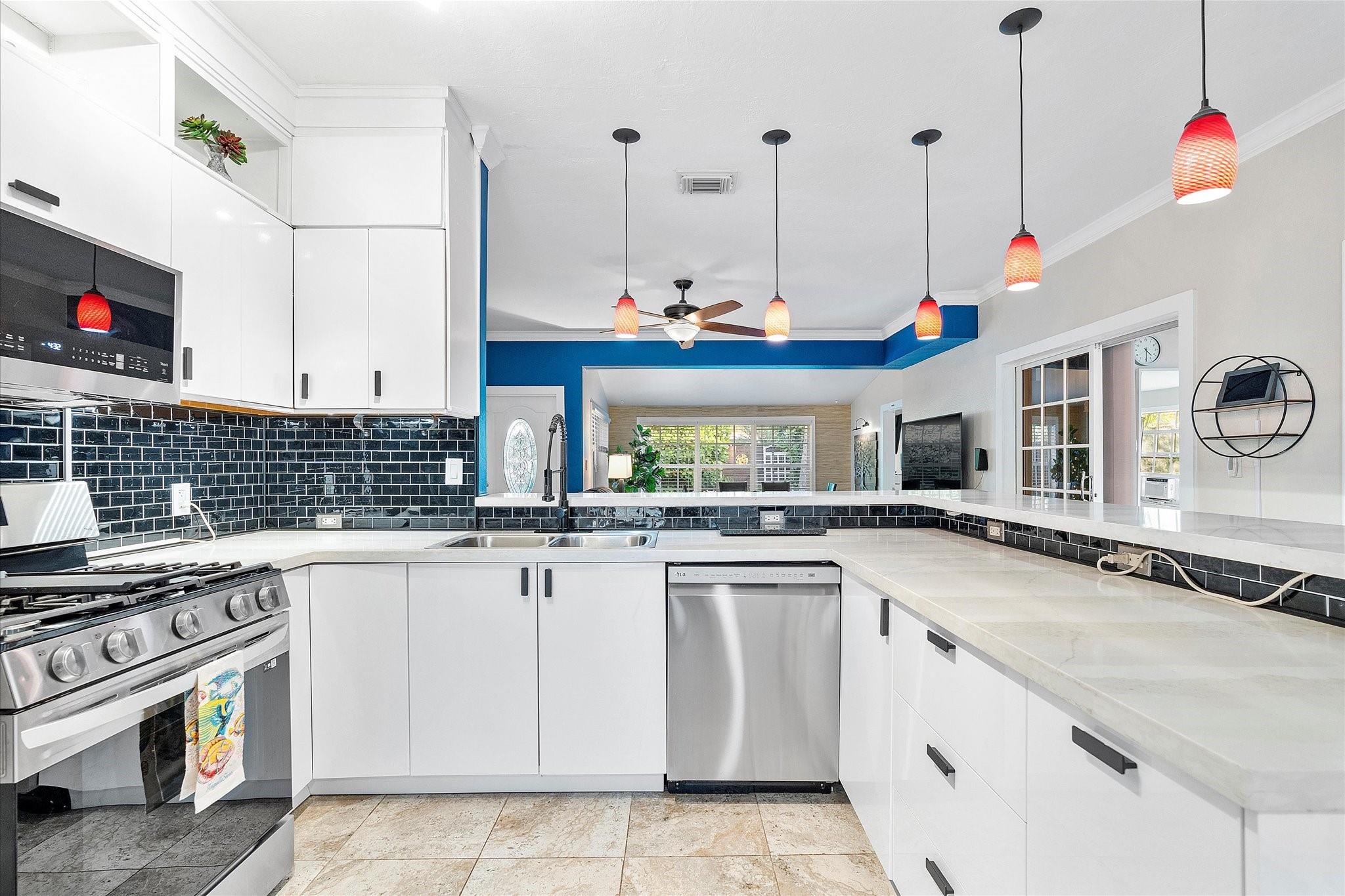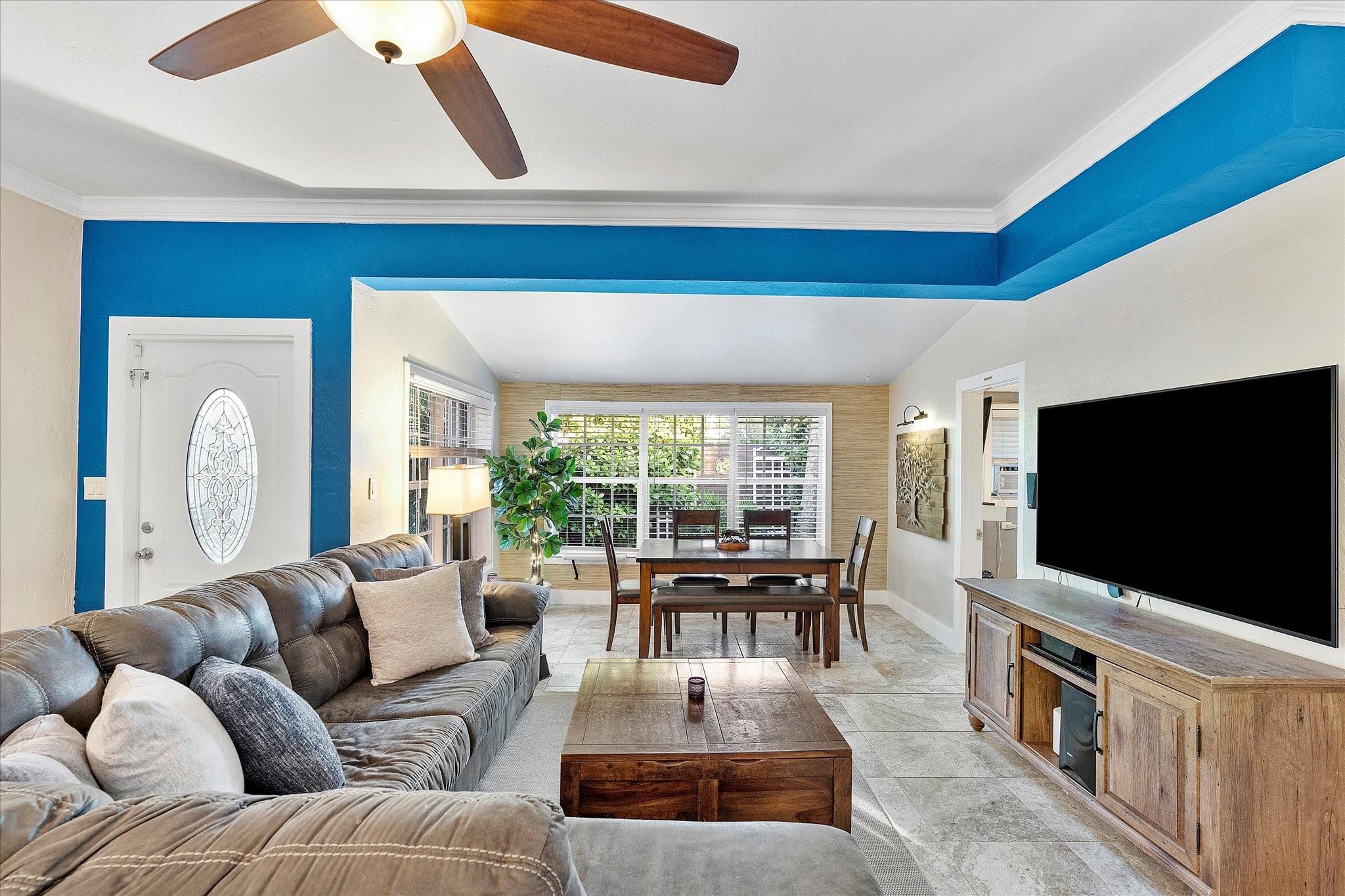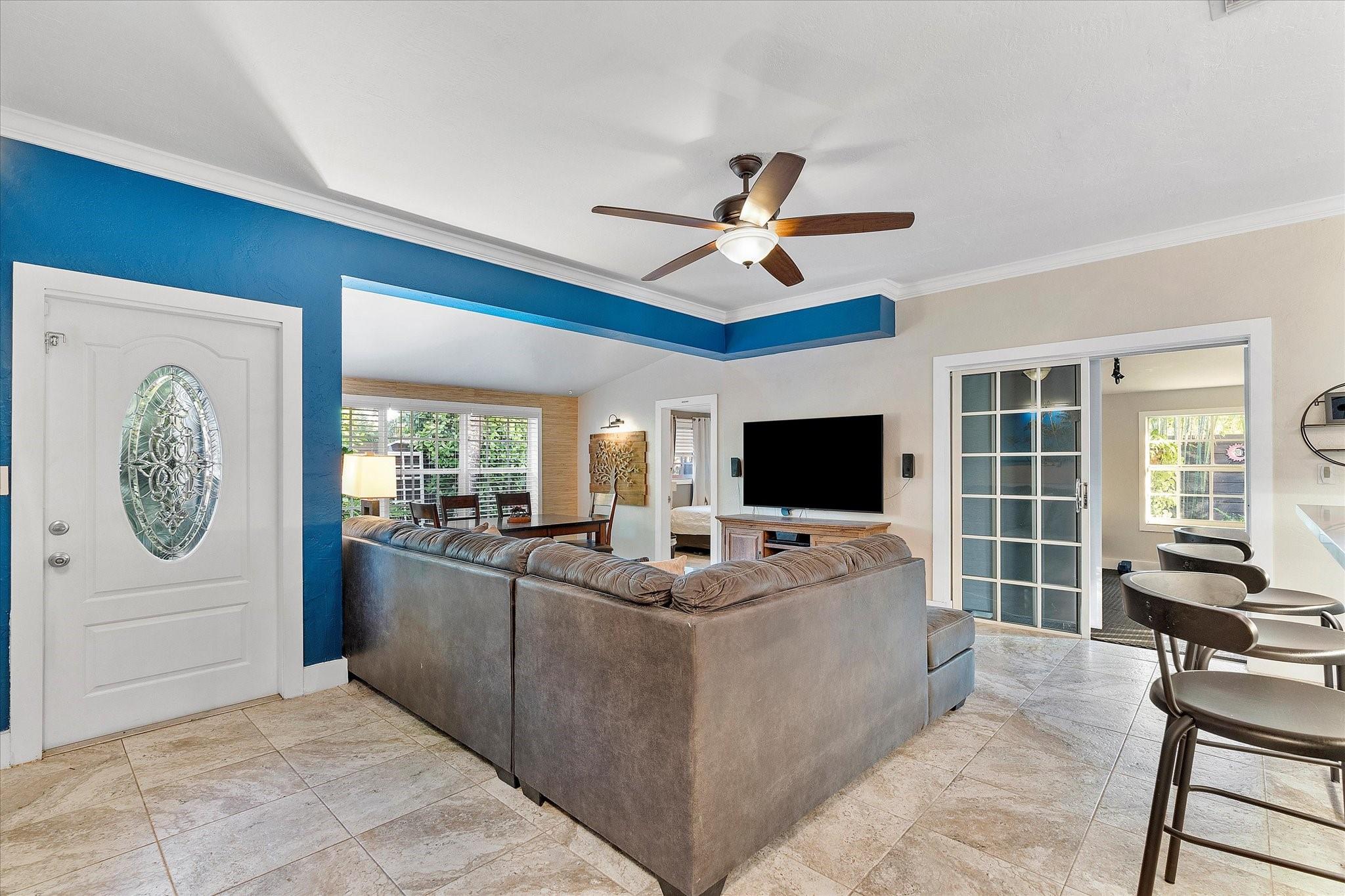 Enter into your dream home! This stunning property features a breathtaking open floor plan, soaring ceilings, elegant countertops, and gorgeous flooring. Brand-new appliances make the kitchen a chef’s paradise. Nestled in a park-like setting, the lush landscaping includes mango and coconut trees, creating your tropical oasis. Enjoy energy savings with solar panels and battery support, ensuring 24/7 power and credits from FPL! This beautifully renovated home offers 4 bedrooms, 2 bathrooms, and ADU potential to maximize functionality. The sunny gym offers endless possibilities—home office, studio, or relaxation space. Don’t miss this one-of-a-kind property that blends luxury, efficiency, and versatility. Schedule your showing today!