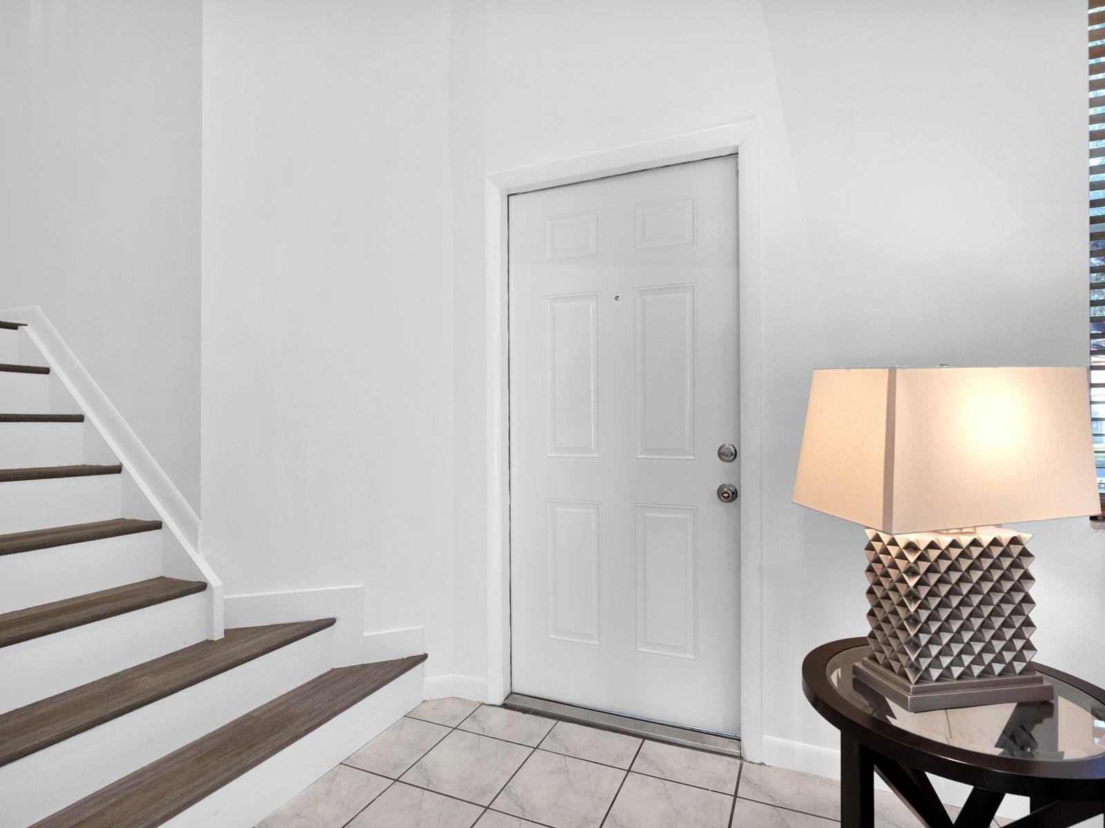 Step into this stunning two-story home located in the sought after gated community of The Falls. This beautifully updated residence offers breathtaking water views & a spacious fenced yard with mature trees, perfect for outdoor living with ample room for a pool. Featuring 4 bedrooms, 2.5 Baths & a 2 car garage. This bright & airy home was recently painted (interior and exterior) with a newly renovated kitchen, top of the line appliances, and modern bathrooms. Upstairs you'll find sleek laminated flooring. Two brand new impact sliding doors and accordion shutters throughout ensure both style and safety. Enjoy resort style community amenities including pool, basketball and scenic walking trail, just walking distance of Eagle Point elementary. All highly rated public schools
