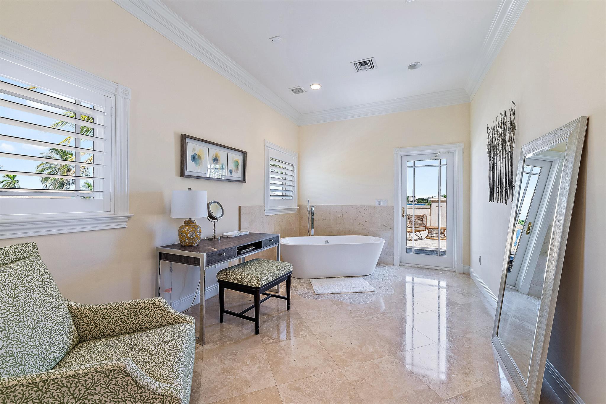 Waterfront Mediterranean home with fabulous water views of Palm Beach Island. This is a prime location near the new NORA entertainment district in West Palm Beach opening in 2025. This spectacular 6 bedroom, 6.1 bath residence has a spacious open plan, a luxury kitchen with a 6-burner gas stove, wine room, bar area with wine refrigeration & ice maker, dining area with fireplace, two offices/dens, & a full laundry room. The water-view Primary bedroom has a fireplace & two baths. With a luxurious pool area, several patios, & balconies the house provides an indoor/outdoor lifestyle. Includes a 1-bedroom, 1-bath guest house with a full kitchen & 2-car garage. A spectacular location across from the Palm Beach Yacht Club and close to NORA wpb, fine dining, luxury shops, marinas, & bike path.