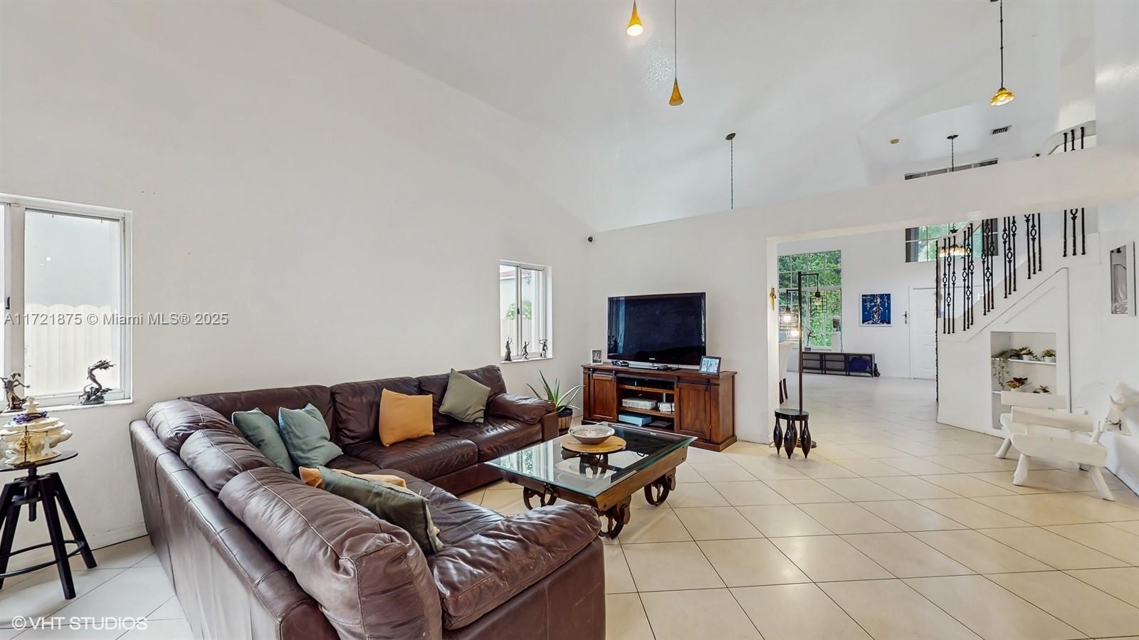 The Happy Home-Located on a quiet cul-de-sac within Doral Gardens,a gated community. Spacious 2 Story home HOA (Only $315.00 Monthly), Built 2000. 4 Bedrooms 3 full baths. Atractive "split floorplan" for multi-generational lifestyle. (Upstairs-3 bedrooms 2 baths Downstairs- One bedroom 1 full bath.) 2 car garage, Updated kitchen, counter seating. Food & butlers pantry. Laundry room, Lots of storage space throughout. Natural light and high ceilings fill this home with great energy. Full storm protection. Great floorplan and location. Well maintained, home is ready for you to enjoy it is (TURNKEY & MOVE-IN READY!) Private back yard with covered terrace enjoy as-is or build a pool ! Ample parking for family and friends.