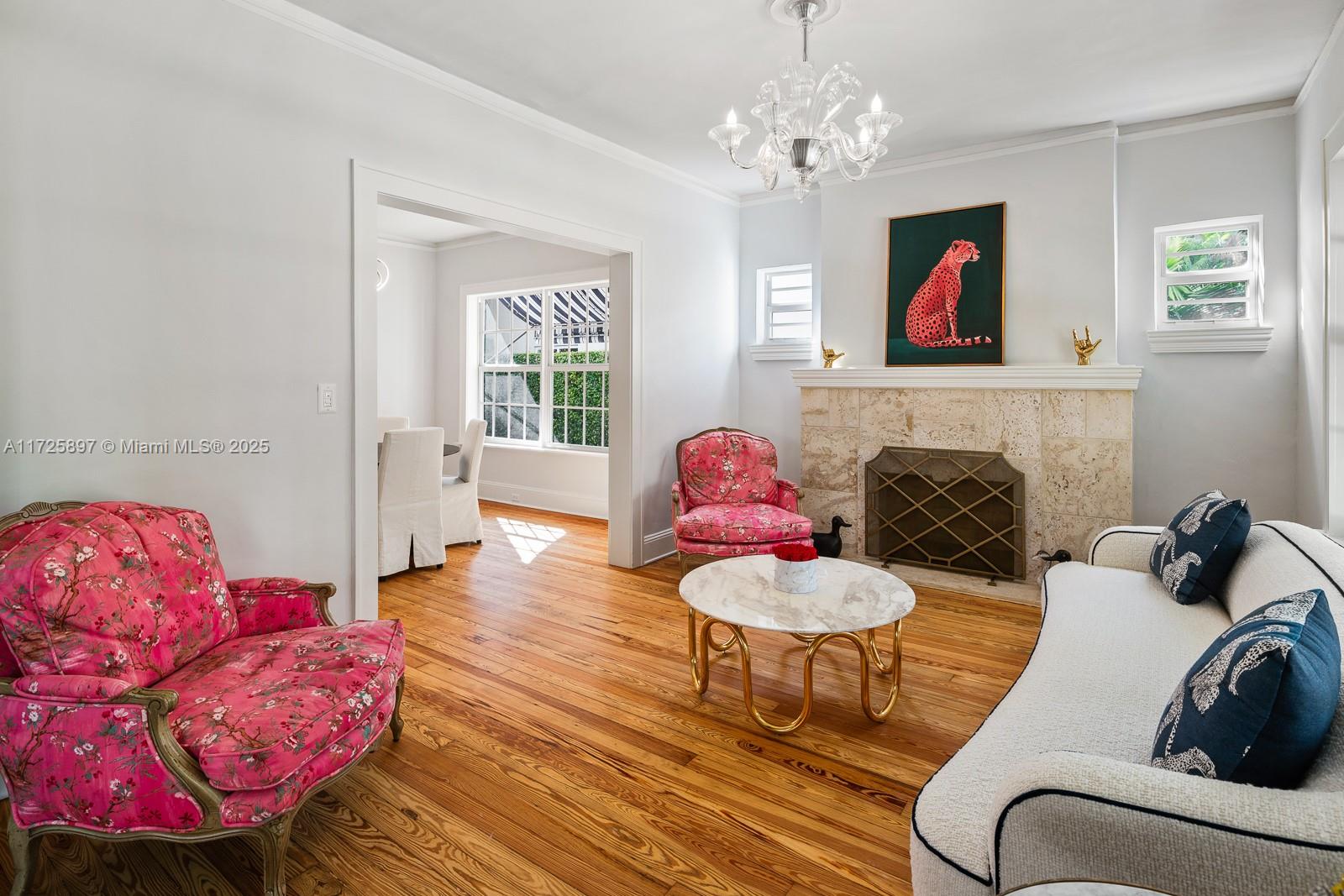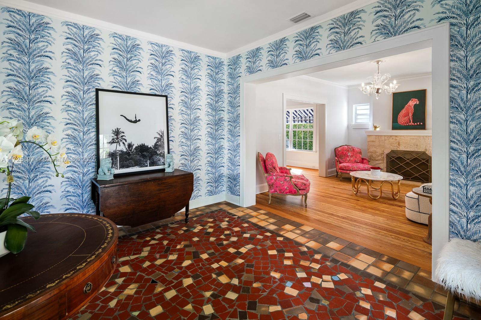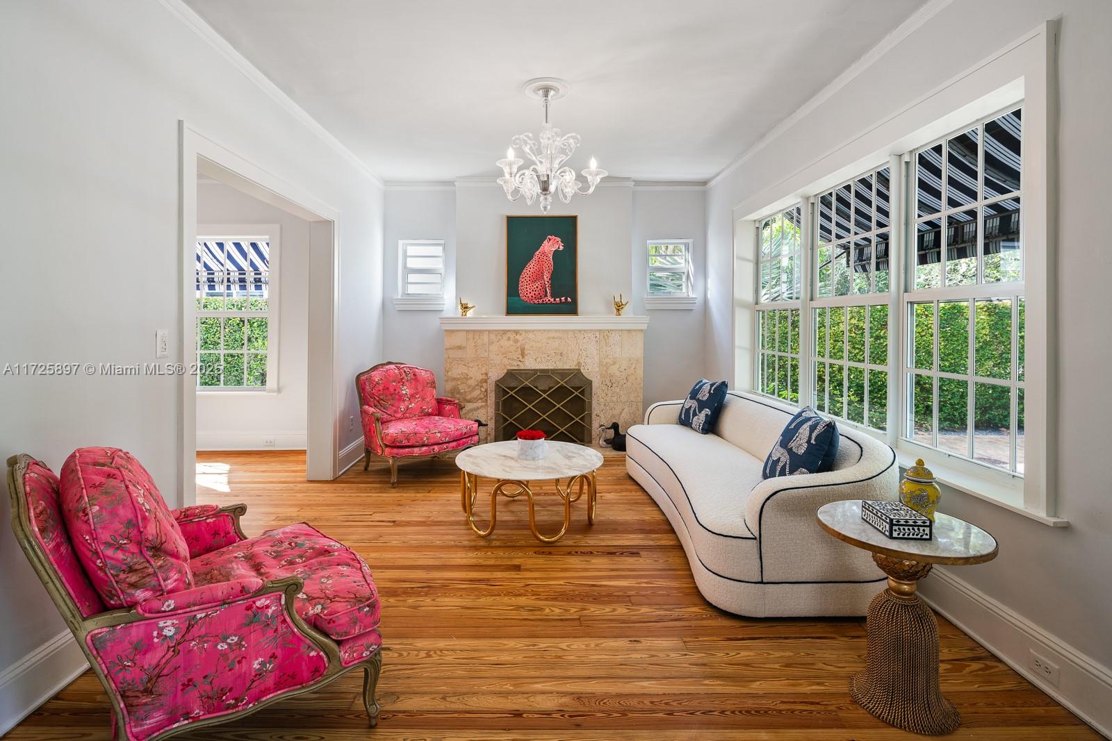 Ta da! The perfect marriage of traditional Gables charm with of-the-moment, exuberant updating...here is a home with sparkle and dignity! One of the earliest homes built in the city in 1923 in the Spanish style just a few steps from the fabulous National Landmark Biltmore Hotel & Golf Course The home has 3 bedrooms and 2 1/2 baths, 2176 square feet of living area, a 55'X125' lot, a chef's dream kitchen, a spacious primary bedroom/bath with 8'X13' walk-in closet, 11'X11' foyer, formal living room with fireplace, formal dining room, family room, bar and a large Chicago bricked terrace. Improvements made in 2024 include a brand-new roof, complete replacement of landscaping, irrigation & lighting, new hardscaping, fencing and more. Impact glass throughout, 2023 AC. Possibly room for a pool.