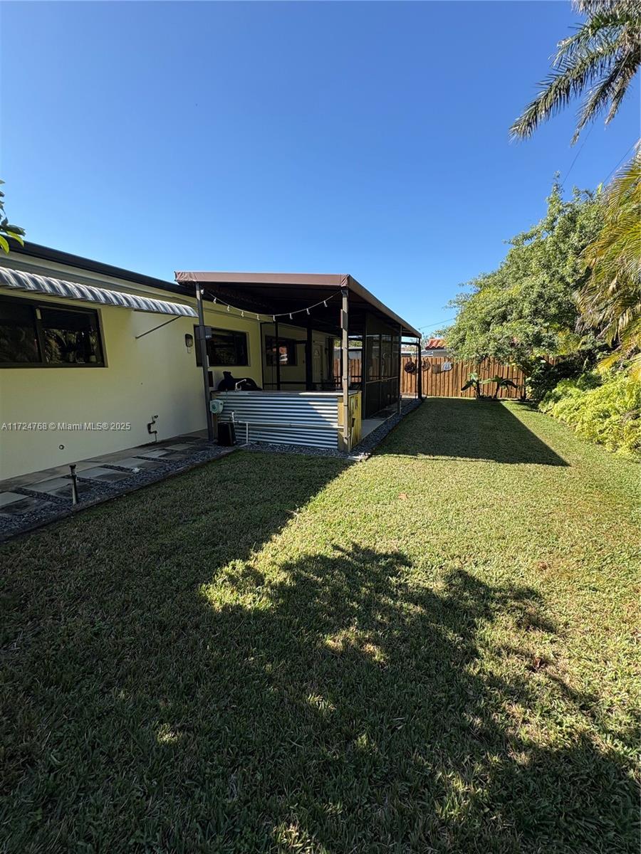 This stunning 3 bedroom with 2 and a half bathroom home offers an open split floor plan with elegant floors throughout. The oversized kitchen features quartz countertops, stainless steel appliances, and high-end wood cabinetry. Enjoy a huge family room, formal dining room, and a versatile media room that can serve as a fourth bedroom. The hurricane-impact windows and garage door provide added security. Relax in the private backyard, complete with a tiled screened porch, outdoor kitchen, and lush banana and avocado trees. Located just minutes from the beach and Gulfstream Park, this home combines comfort, style, and convenience.