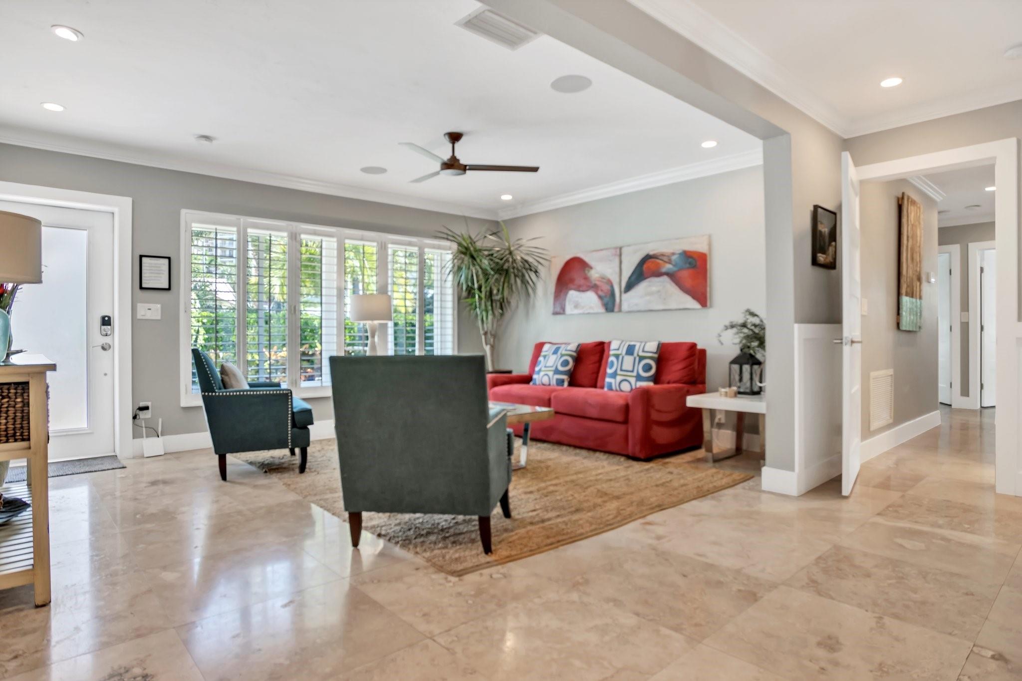 Welcome to Dolphin Palms, a tropical villa just three blocks from the beach on a quiet, palm-lined street in the charming Dolphin Isles neighborhood. This 4 bed, 3.5 bath residence offers a thoughtfully-designed floor plan with sunny exposures throughout. A private patio welcomes you into a spacious living and dining area. The modern kitchen boasts state of the art appliances. Two bedrooms have ensuite baths and outdoor access. A large, beautifully-appointed family room under soaring ceilings has a wood-burning fireplace framed by French doors which lead to a lushly landscaped back yard where you’ll find a pergola covered patio, heated pool, in-ground spa, two outdoor showers and the ambiance of a 5-star resort. Located just three blocks from the beach and one block from Birch State Park.