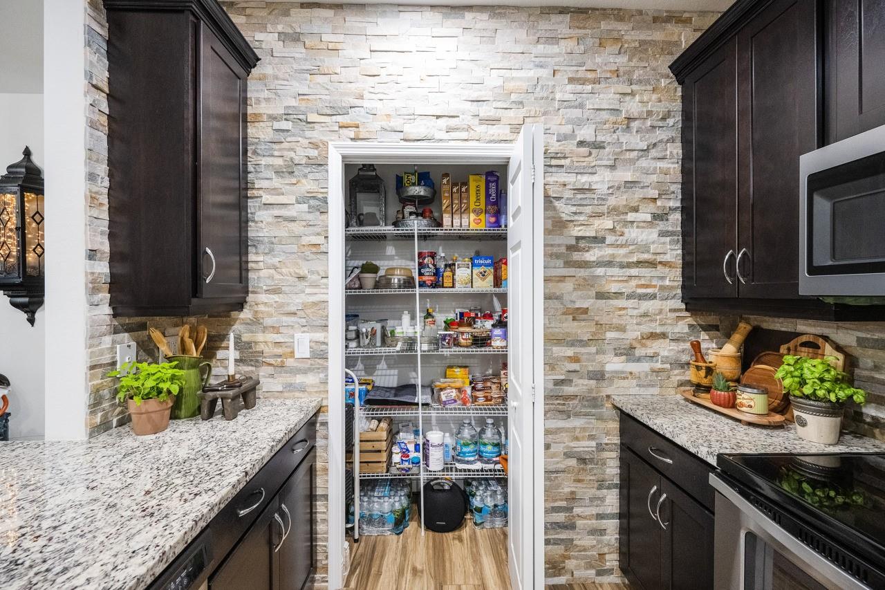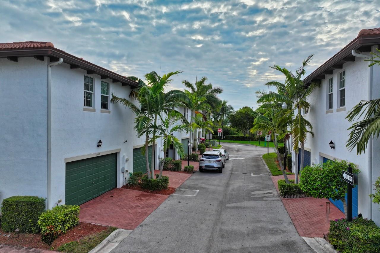 This 3/2.5 2 car garage home has continuous wood grain porcelain tile flooring throughout. The kitchen is open and spacious, with plenty of cabinets, granite countertops, with a huge workspace on a peninsular bar, with ample seating. The kitchen backsplash flow into wall feature and entry to a large pantry. Window treatments include plantation shutters that match the color of the kitchen cabinets. Upstairs there are 3 bedrooms with 2 full bathrooms. There is also a loft that can be an entertainment area or serve as a 4th bedroom. The primary ensuite features a double sink and a walk-in shower. The primary has two large walk-in closets. The primary has a walk out balcony overlooking a tropical garden view. Home has all impact windows, fire alarm, fire sprinklers, upgraded light fixtures.