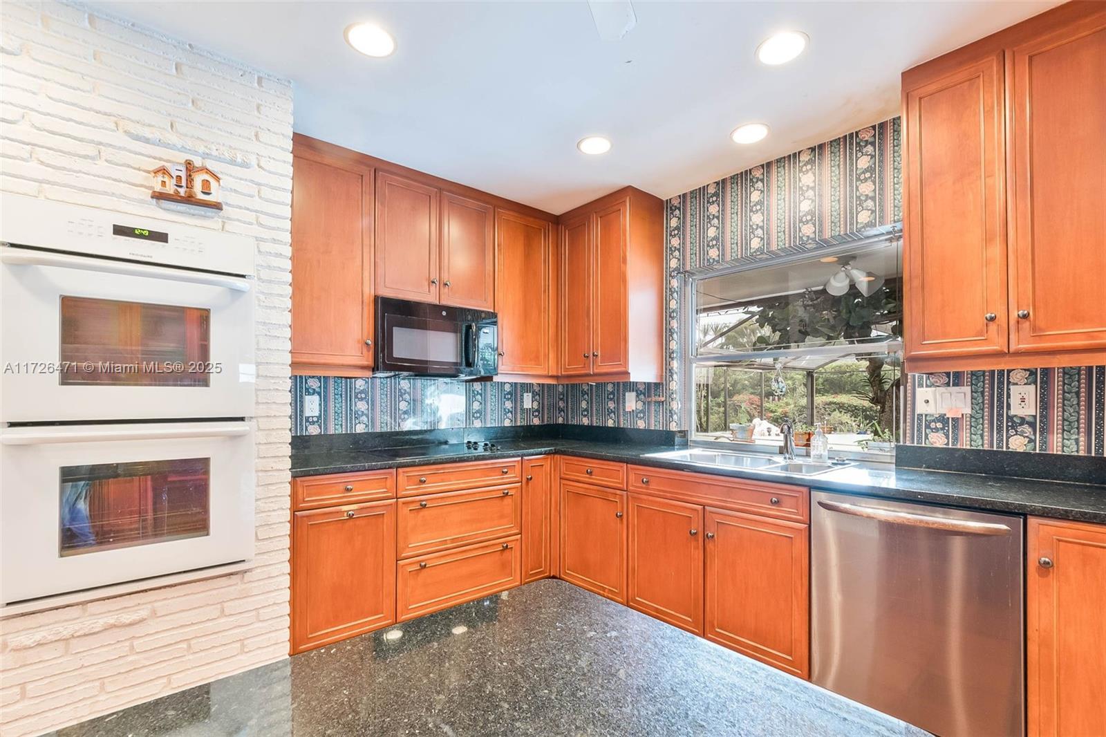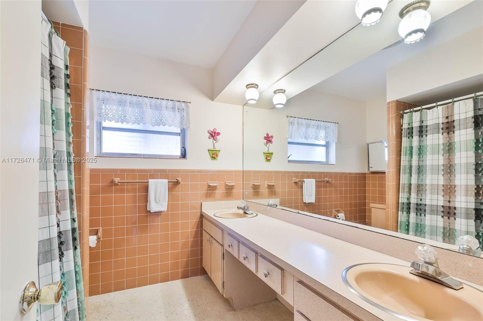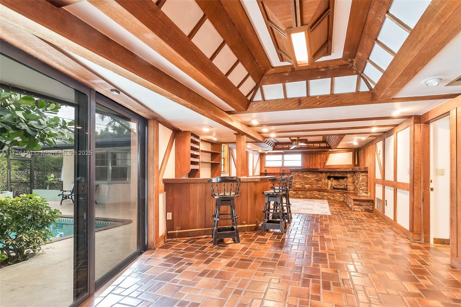 Beloved, spacious 5 bedroom/ 4.5 bath home in North Pinecrest, ready for your updates. Enter the formal living room with polished, original terrazzo floors and delightful view of the backyard from a wall of French doors. Grand formal dining room with china closet. Kitchen has eat in table, wood cabinetry and granite countertops, double wall oven and pantry. Charming family room with wet bar, beautiful stone fireplace. Split floorplan with 3 guest bedrooms, one ensuite, with walk in closets. Private, grand primary suite with large bath and walk in closet. 5th bedroom also ensuite w/ private entrance, perfect for in-laws or guests. 2 newer AC units. Laundry room and several storage closets. Expansive, screened pool and patio, 2 sheds.