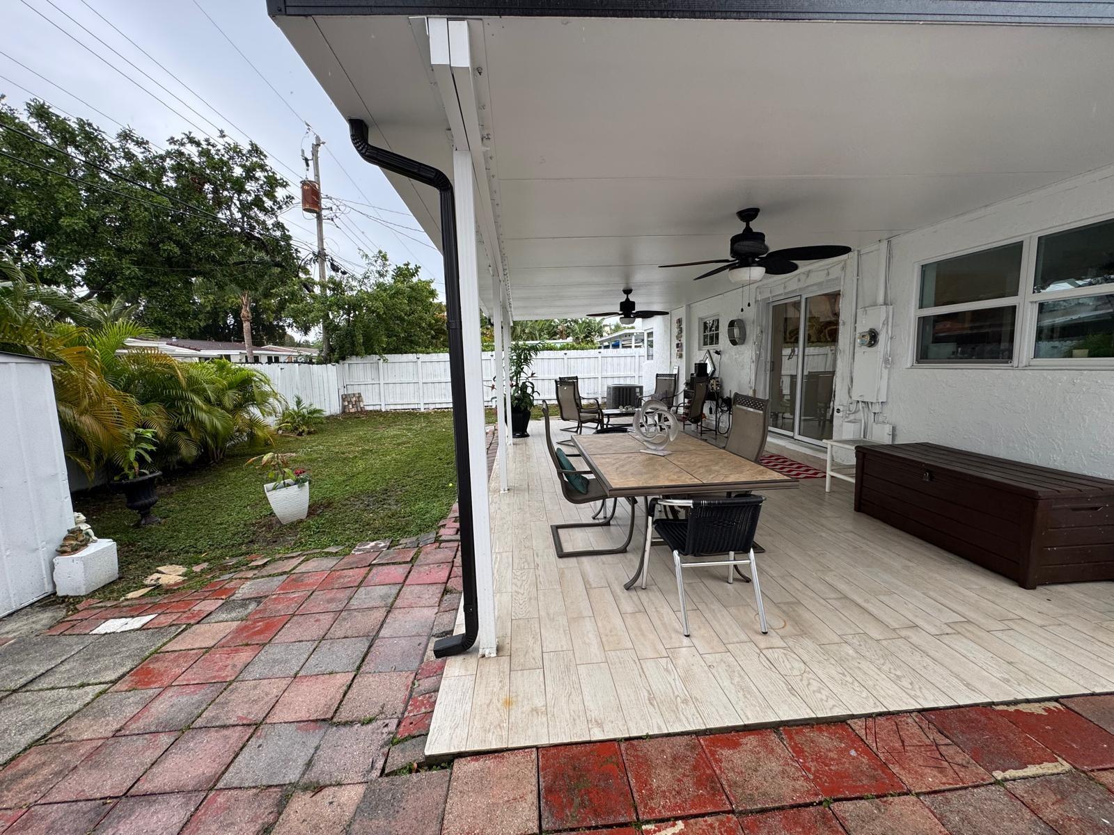 4 BEDS 2 BATHS home in north Andrews Gardens. Lots of updates, tile floors through the entire house, Remodeled kitchen with granite countertops & SS appliances (new refrigerator & new E stove). Remodeled bathrooms about 2 years ago. Plumbing was replaced through the entire house as same as the electrical panels & wires. Central A/C is only 4 years old & the ducts were replace about 2 years ago. Large covered patio with tile floors great for entertaining & or relacing. Freshly painted inside and outside. Carport converted to a room with a large closet, can be used as a 4th bedroom or extra room, fenced back yard. Tented for termites in 2023. Washer & dryer in the shed with extra storage. All impact windows, doors & sliding door to the patio. large front porch. great location !!