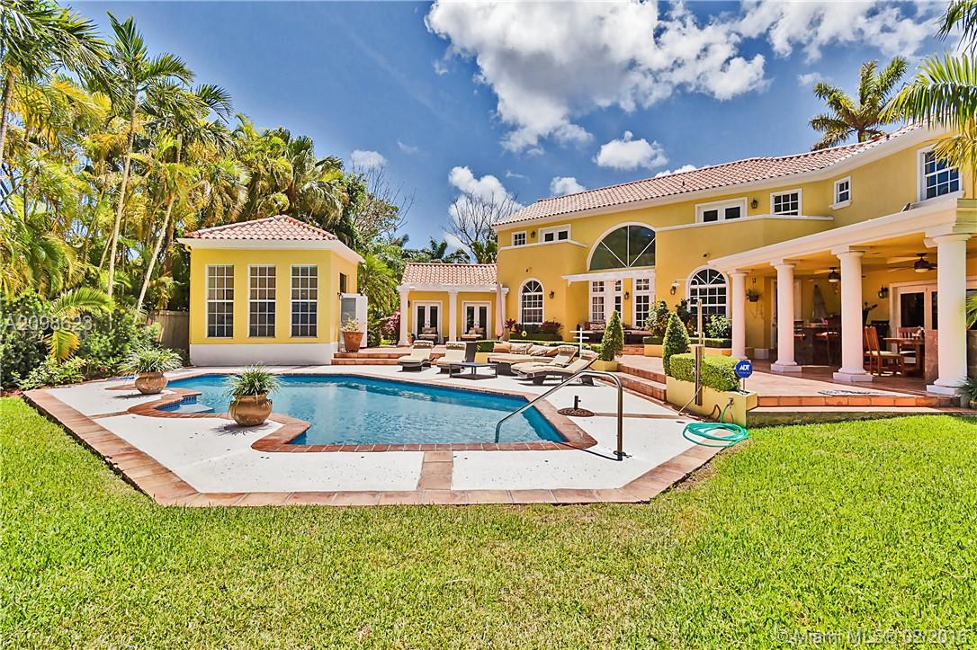 Rarely available North Pinecrest Home in Private Gated Community of Only 11! This stately 2 story Mediterranean sits along canal offering serenity and privacy. Volume ceilings, great floor plan for entertaining in large living and dining areas, open kitch en and family room, master on first. 3 large bedrooms/2baths on second. All rooms open to outstanding outdoor spaces including: built in Bar B-Q, large overhang and lounging areas + separate guest house with bedroom and bath.