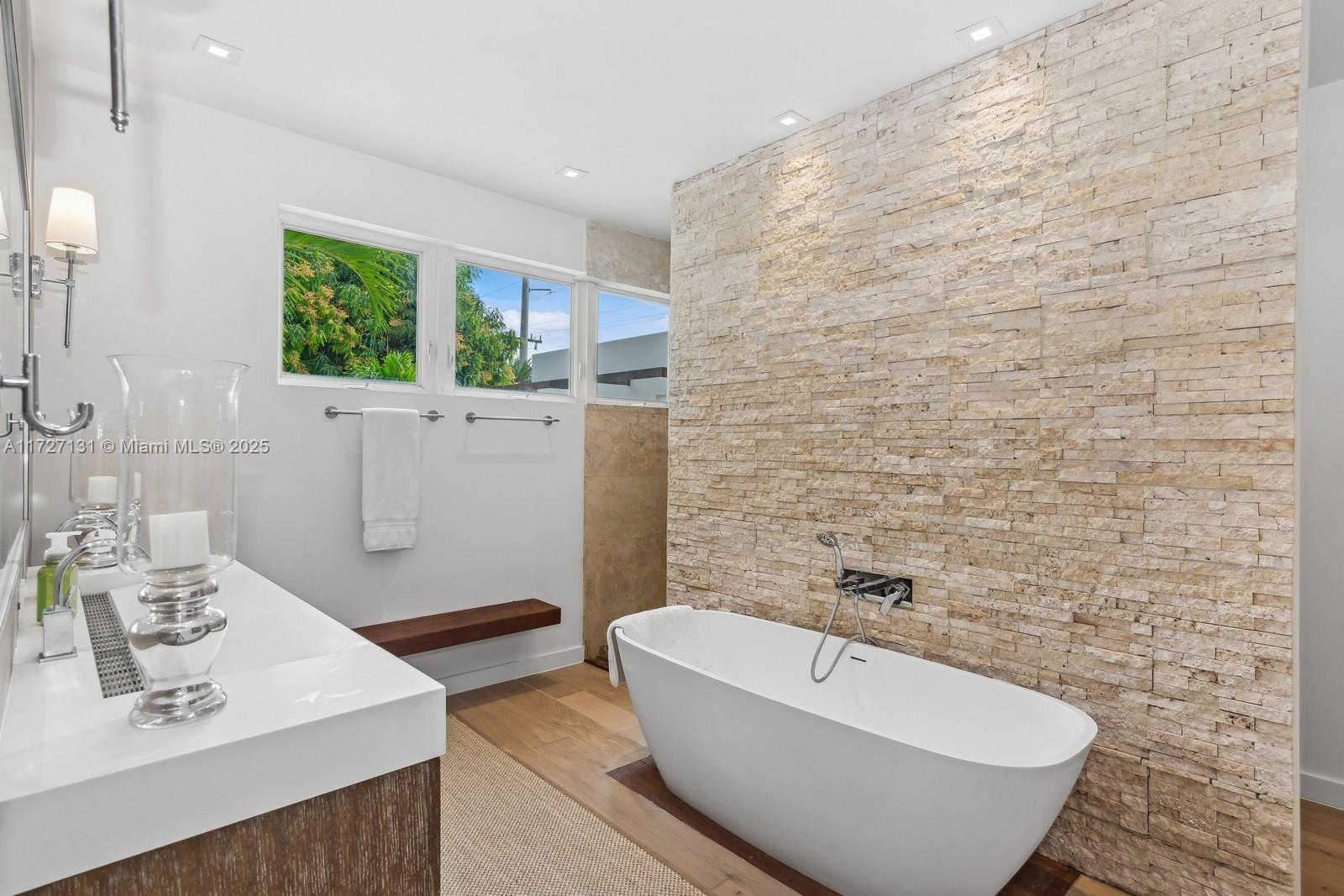Updated Pinecrest pool home with a separate guest house. Awesome courtyard with pool. Walk to Howard ES, Palmetto MS and HS. Home professionally remodeled with modern architecture and features. CO completed 2021 includes Roof, plumbing, electric panel, central a/c. 50 KW Generator that serves the entire home. Impact glass throughout. Fruit trees, updated covered deck adjacent to family room and kitchen.. Main house has 5 bedrooms, 3.5 bathrooms including primary and one bedroom that are en-suites. Guest house 1/1. Heated pool with saline system. Golf putting green. Propane tank for cooktop in kitchen. Ample closet space throughout. Well designed layout for privacy and hosting large events. Large garage plus gated driveway with room for a boat. Seller motivated. Home is move in ready.