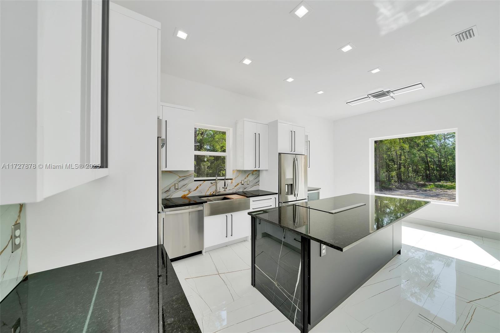 PRICE REPOSITIONING -ICF-INSULATED CONCRETE FORMS-HOME that offers improved energy efficiency, thermal insulation, hurricane resistant, acoustic insulation with impressive strength and reliability. This is a New Spec Home for the growing Ocala area. Located in Rolling Hills, in a 1.54 acres lot with 150 ft set back from the main road, this 2,284 sq ft interior living area + 880 sq ft of insulated garage home with standing seam metal roof, has 4 beds/3 baths,open concept kitchen/dining-room/living-room/entertainment area,3 vehicles garage.High ceiling of almost 11' tall and 4'x4' polished tile throughout the entire house,custom designed kitchen w/granite island/countertops,double oven,refrigerator,wine cooler,induction cooktop,downdraft ventilation system,Washer/Dryer.Irrigation system.