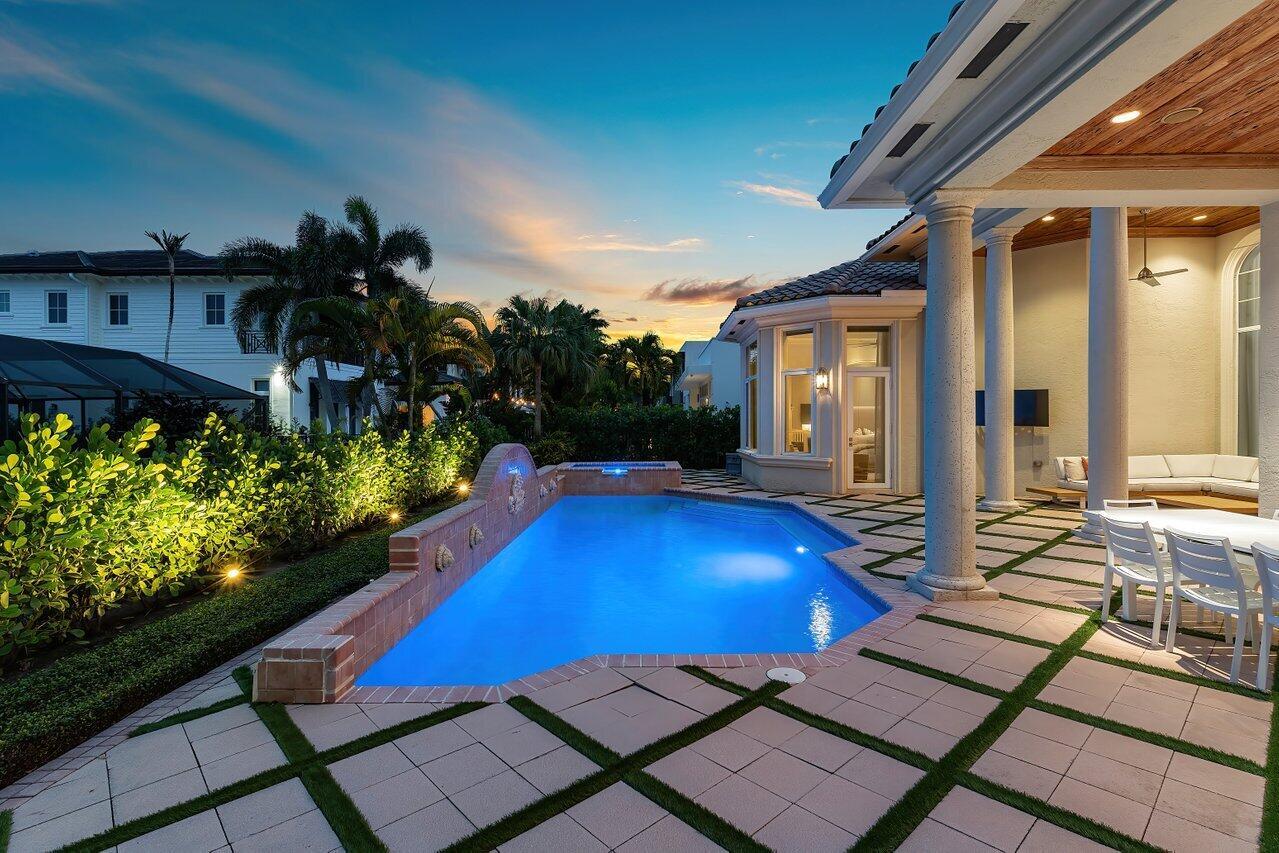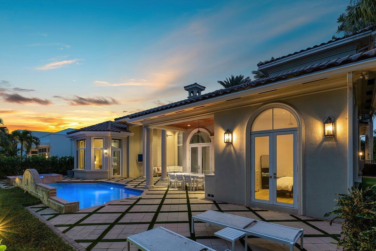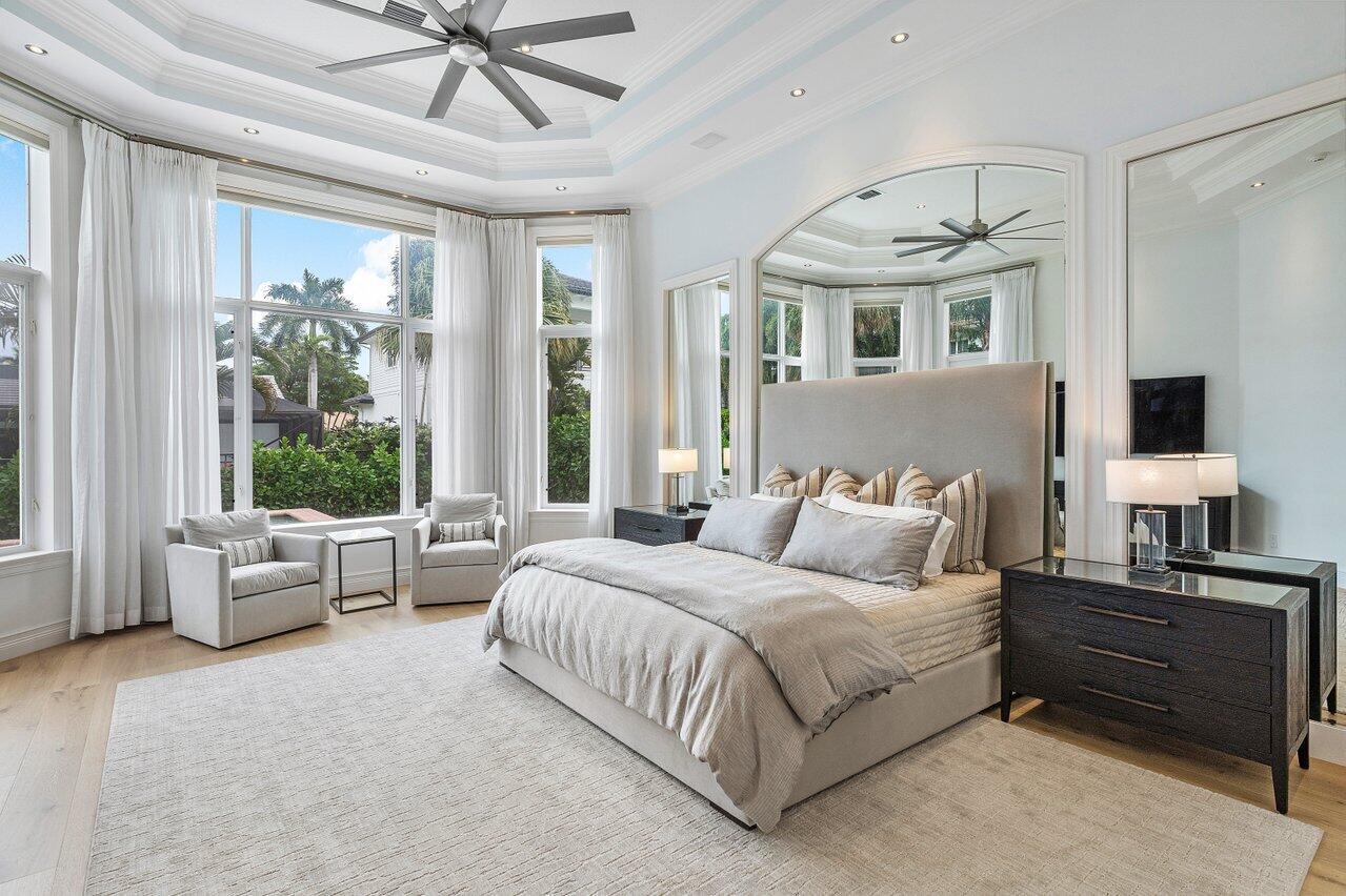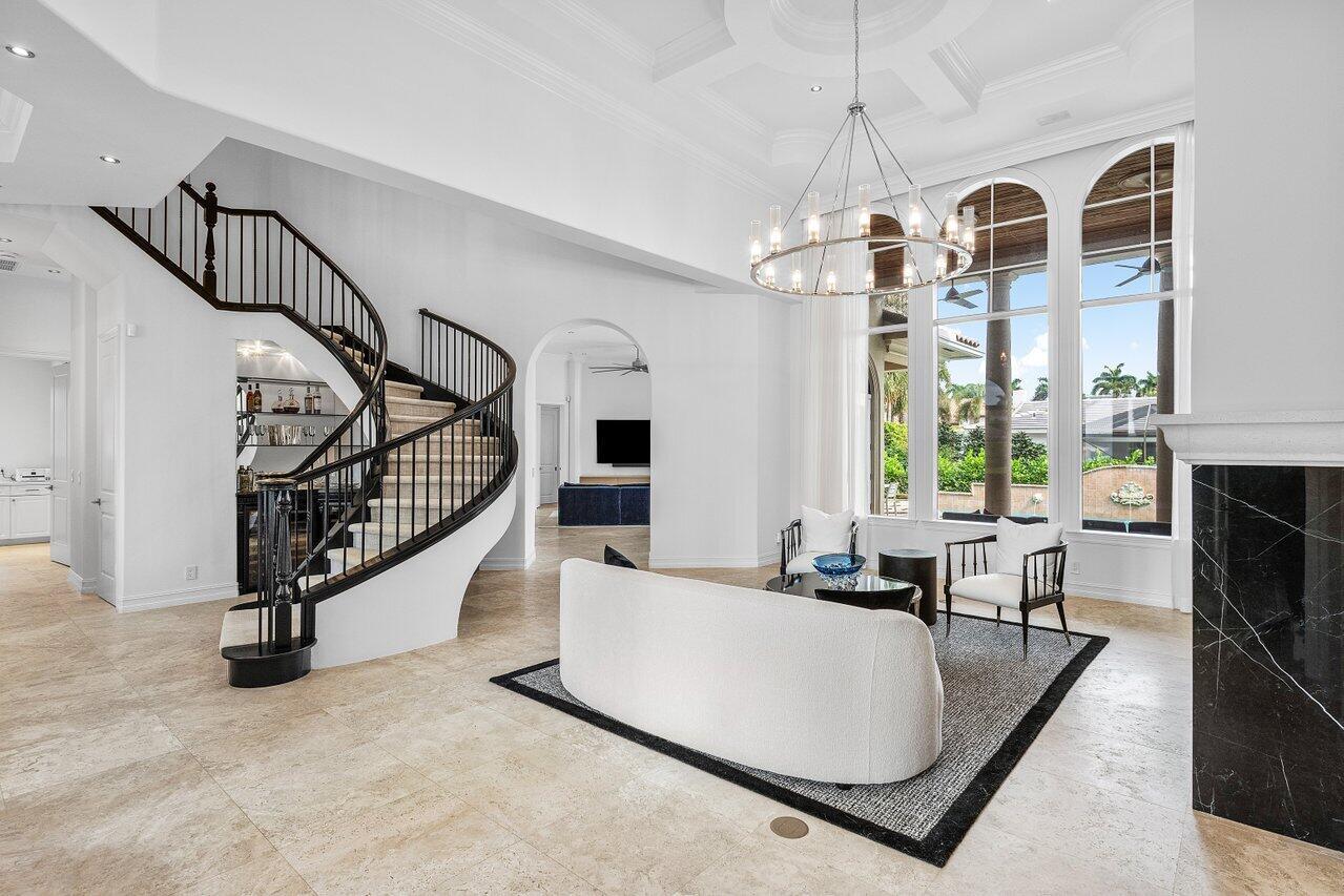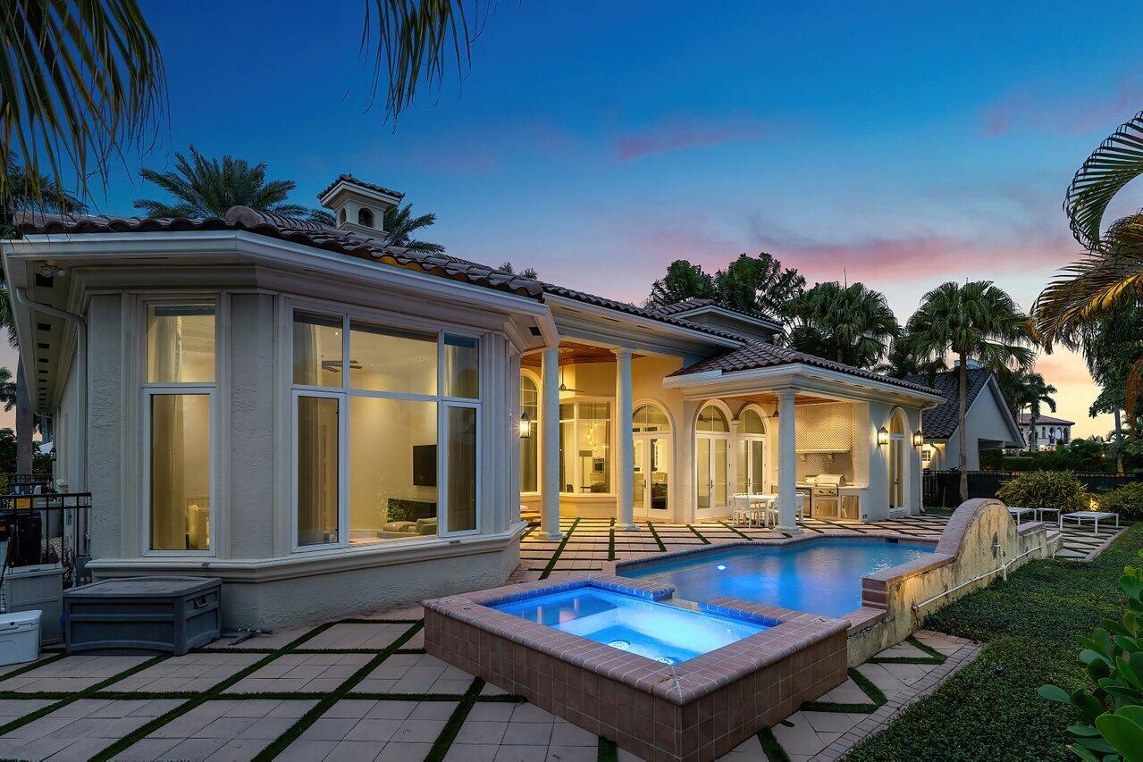 2124 W Maya Palm is a beautiful transitional home in Royal Palm Yacht and Country Club. This house has been tastefully remodeled with attention to quality and detail. From the moment you walk in, you will be flooded with natural light. The formal living room is inviting with a marble fireplace and overlooking the tropical backyard. Beautifully finished and a well thought out floor plan with the master bedroom on the first floor featuring brand new wood floors, his and her built out closets, and a completely remodeled master bathroom with his and her marble vanities, his and her water closets, a soaking tub, and electric shades. Downstairs also has a home office with new wood floors and built ins, elegant powder room, and a guest bedroom with new wood floors,