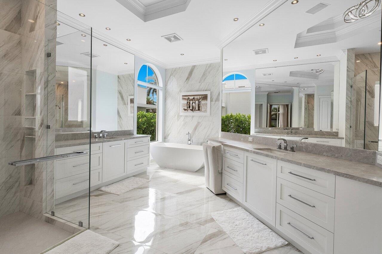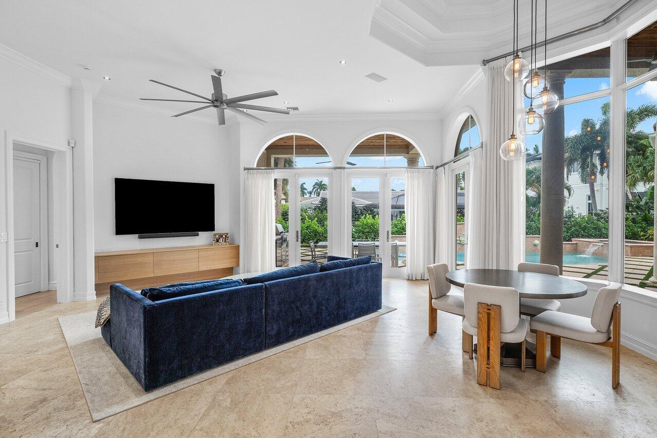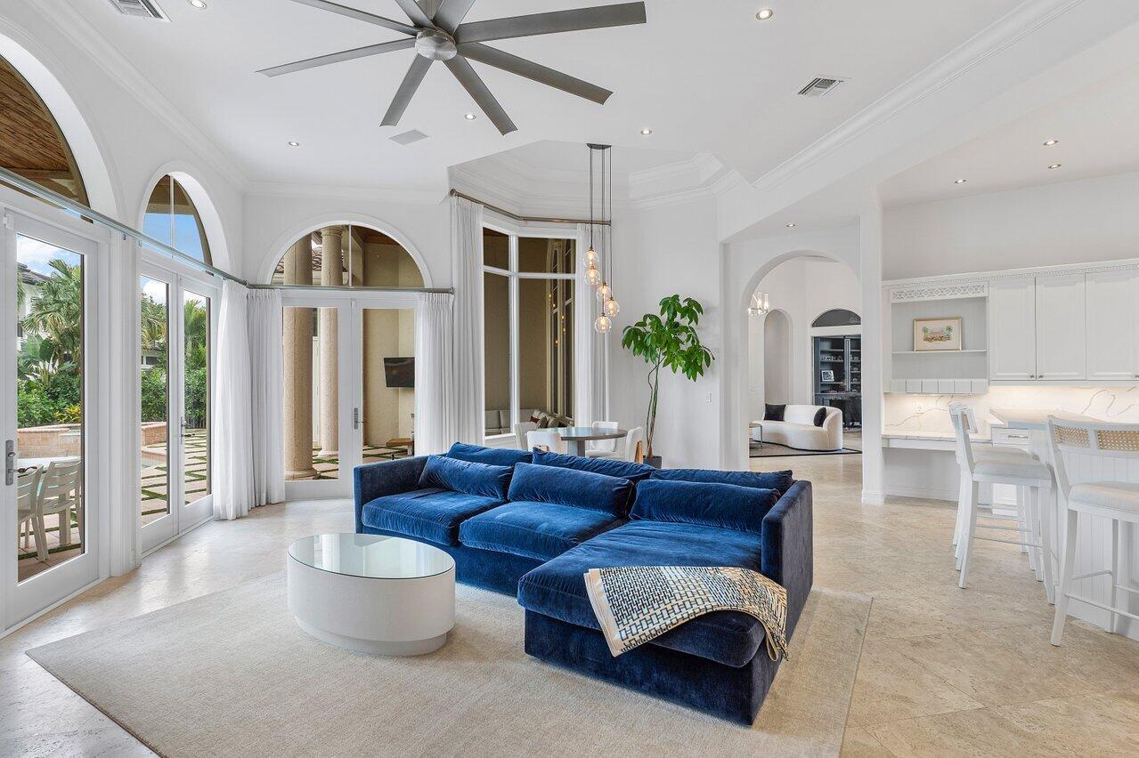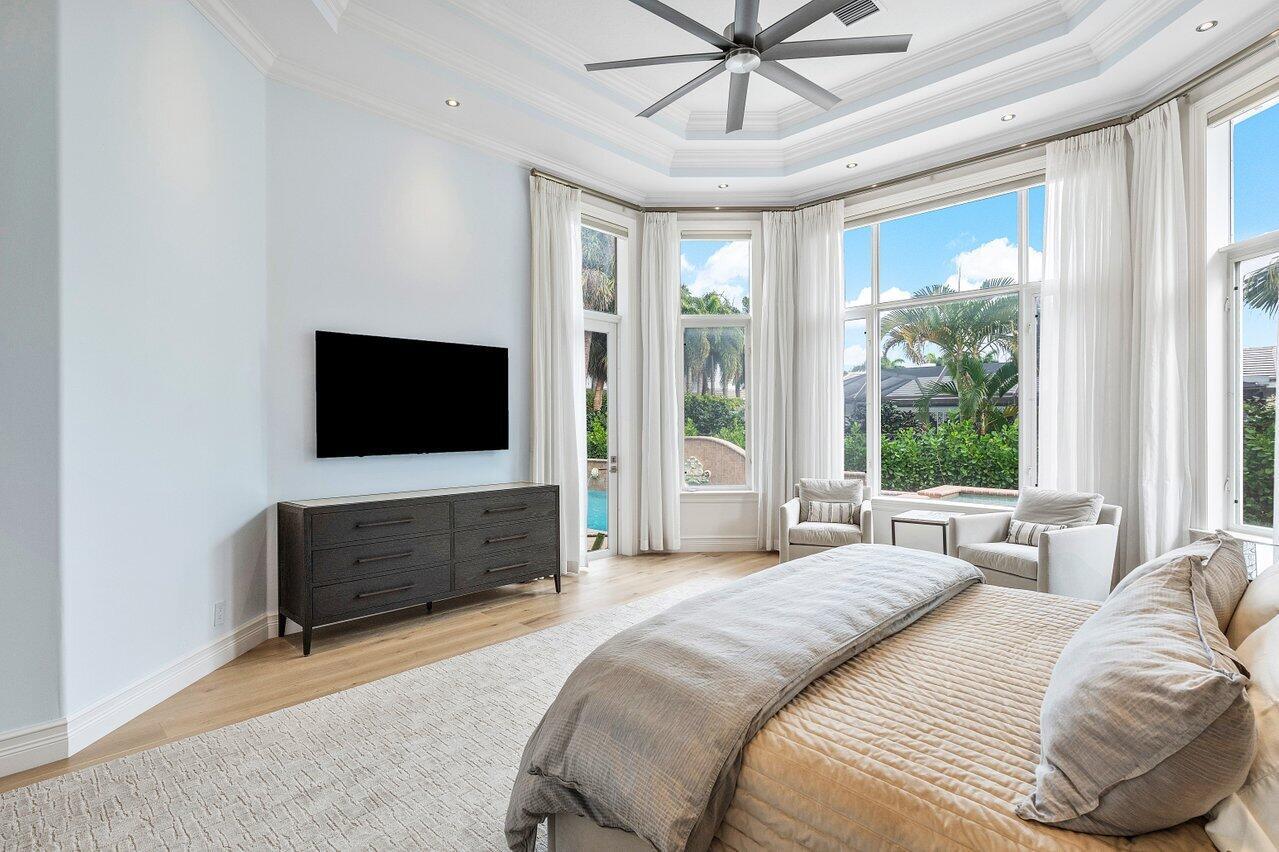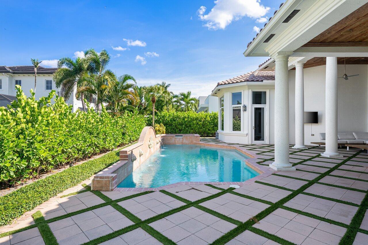 2124 W Maya Palm is a beautiful transitional home in Royal Palm Yacht and Country Club. This house has been tastefully remodeled with attention to quality and detail. From the moment you walk in, you will be flooded with natural light. The formal living room is inviting with a marble fireplace and overlooking the tropical backyard. Beautifully finished and a well thought out floor plan with the master bedroom on the first floor featuring brand new wood floors, his and her built out closets, and a completely remodeled master bathroom with his and her marble vanities, his and her water closets, a soaking tub, and electric shades. Downstairs also has a home office with new wood floors and built ins, elegant powder room, and a guest bedroom with new wood floors,