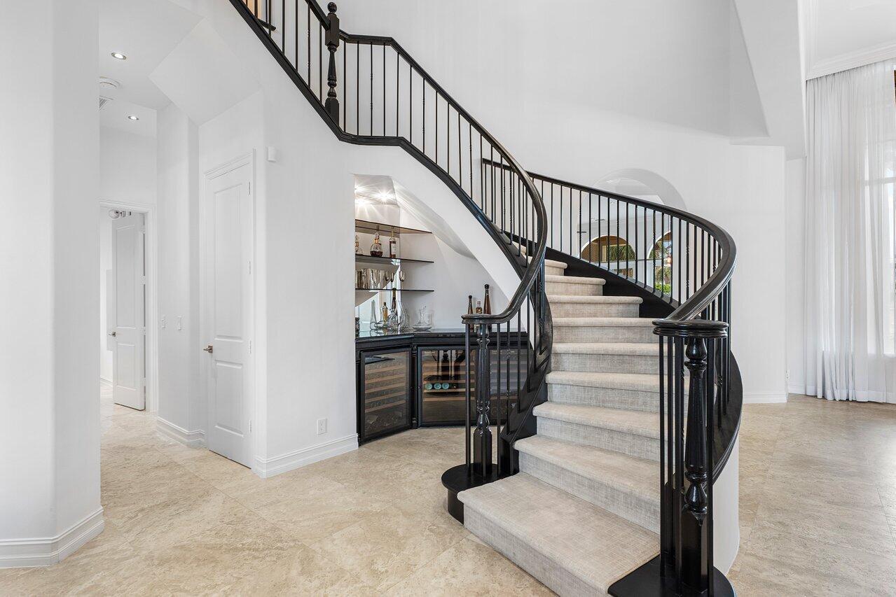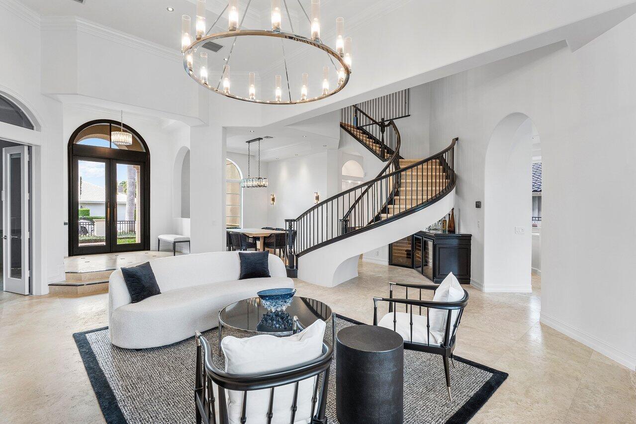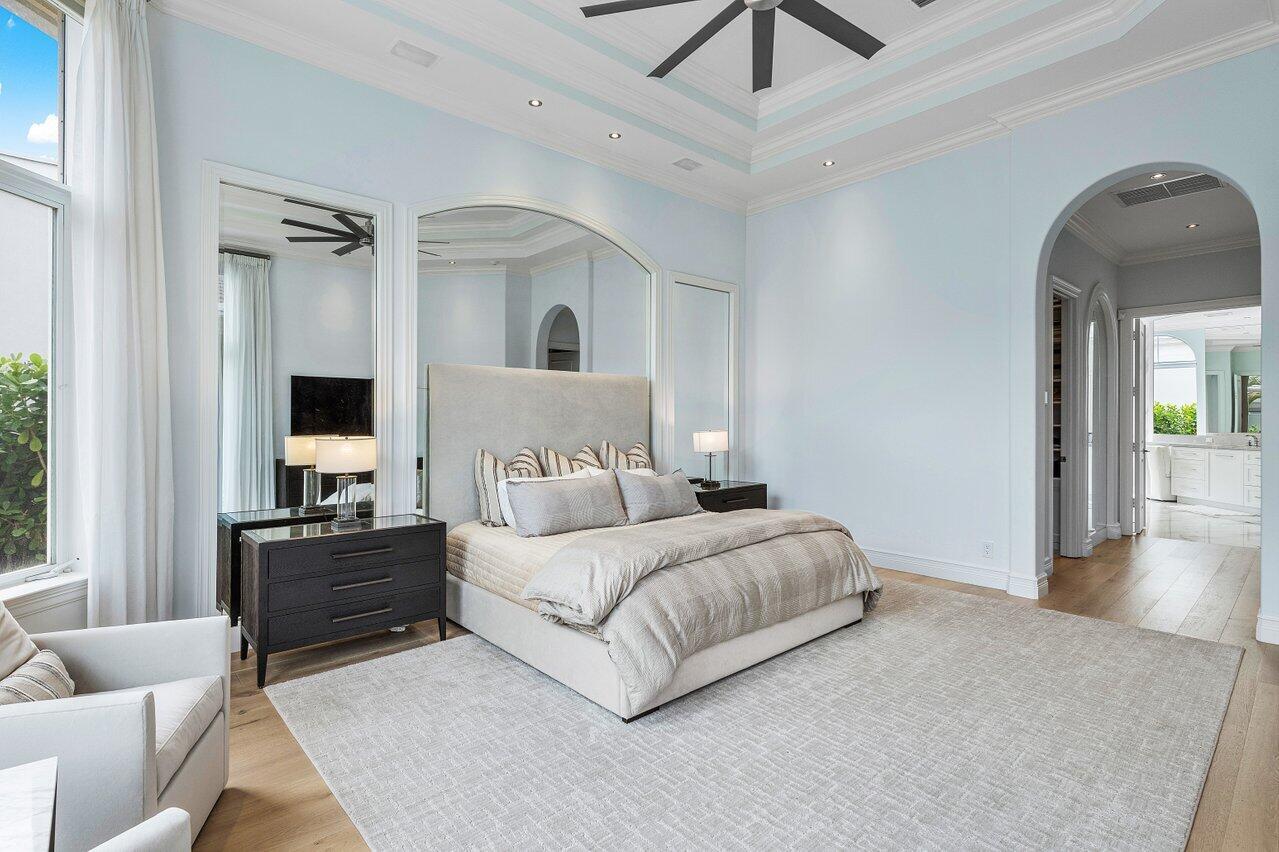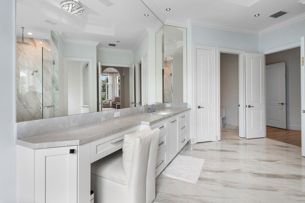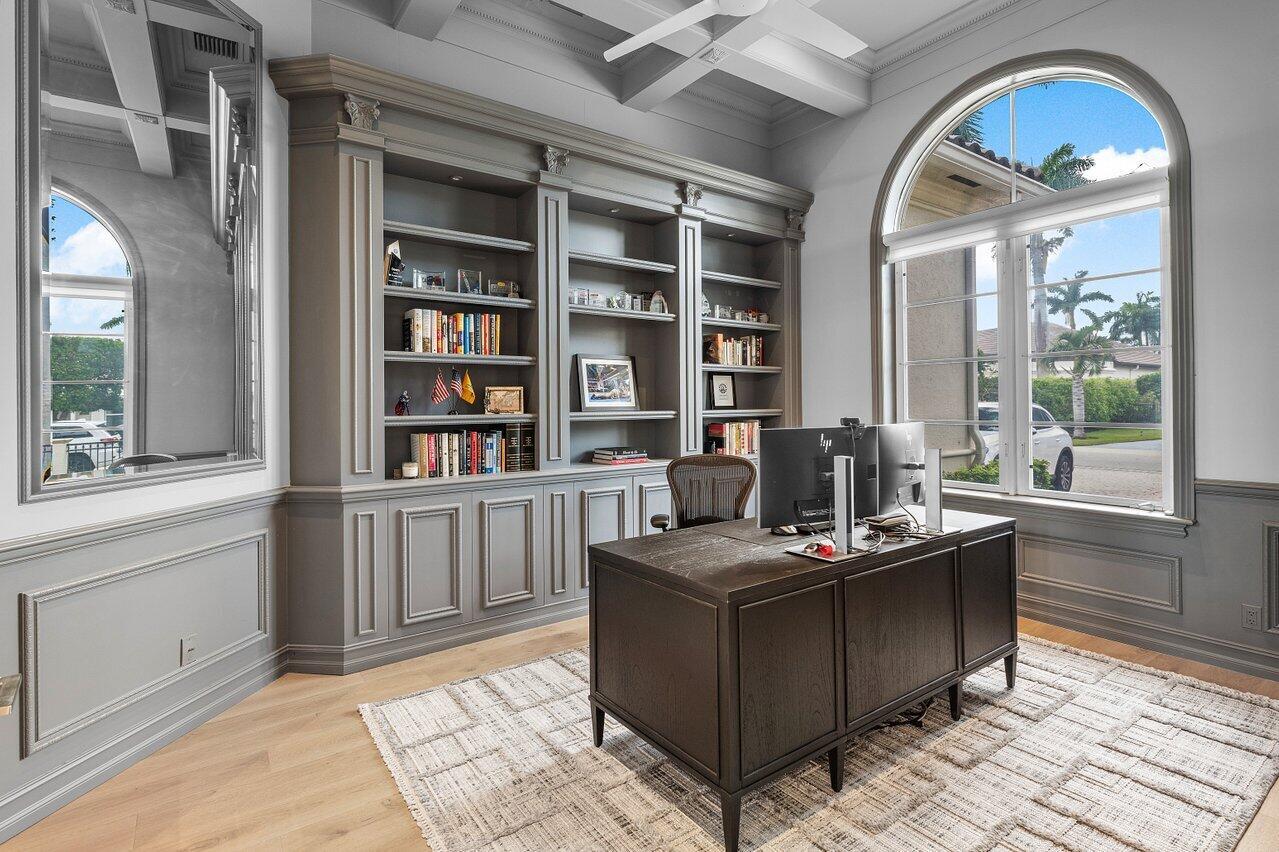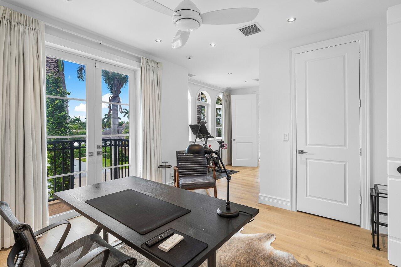 2124 W Maya Palm is a beautiful transitional home in Royal Palm Yacht and Country Club. This house has been tastefully remodeled with attention to quality and detail. From the moment you walk in, you will be flooded with natural light. The formal living room is inviting with a marble fireplace and overlooking the tropical backyard. Beautifully finished and a well thought out floor plan with the master bedroom on the first floor featuring brand new wood floors, his and her built out closets, and a completely remodeled master bathroom with his and her marble vanities, his and her water closets, a soaking tub, and electric shades. Downstairs also has a home office with new wood floors and built ins, elegant powder room, and a guest bedroom with new wood floors,