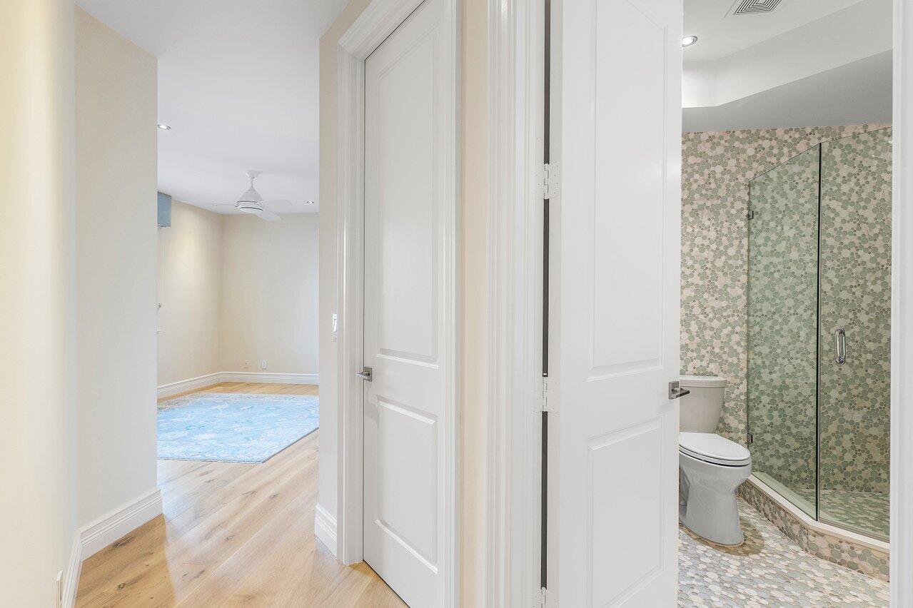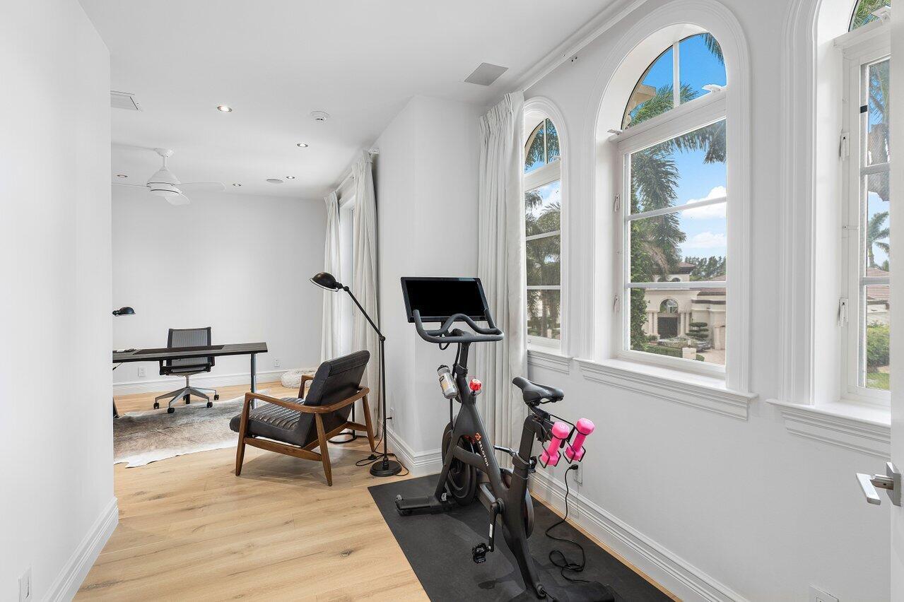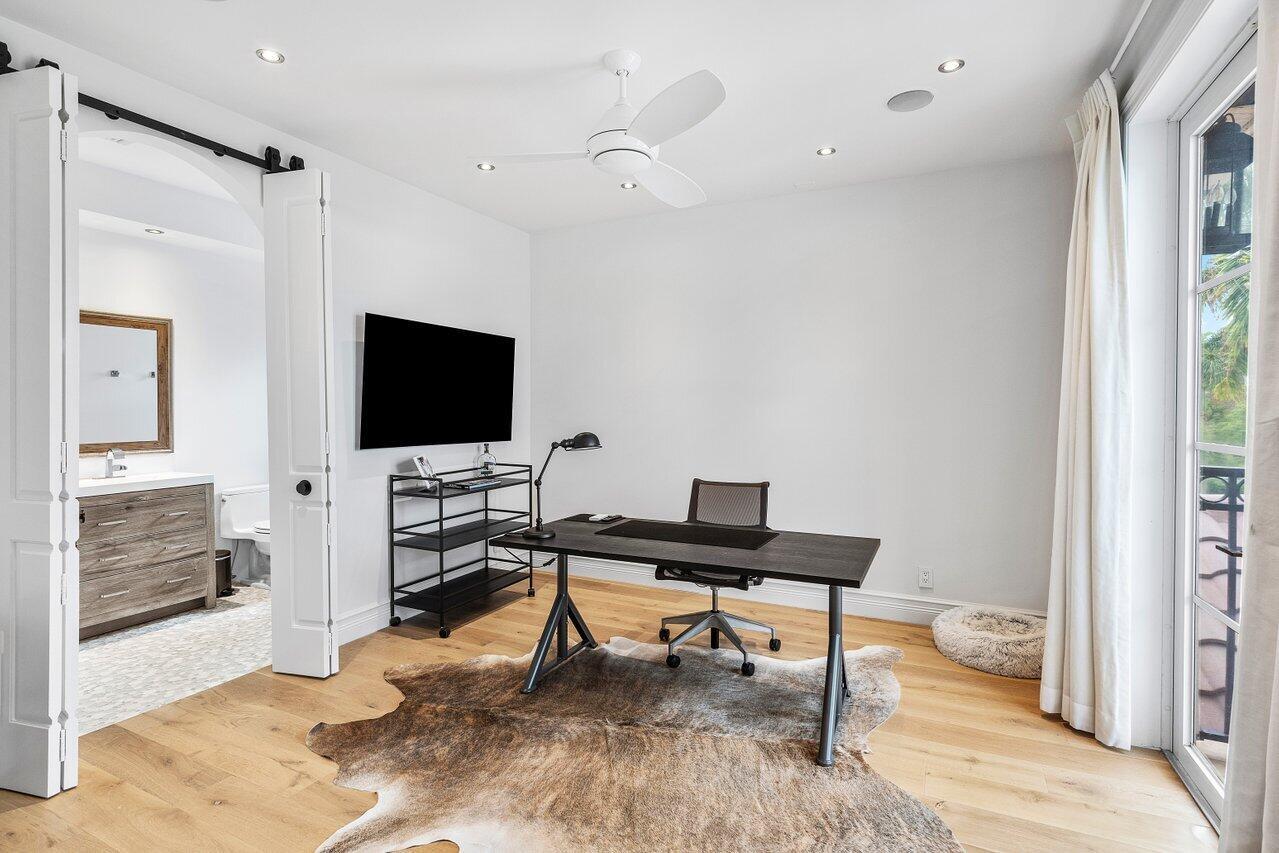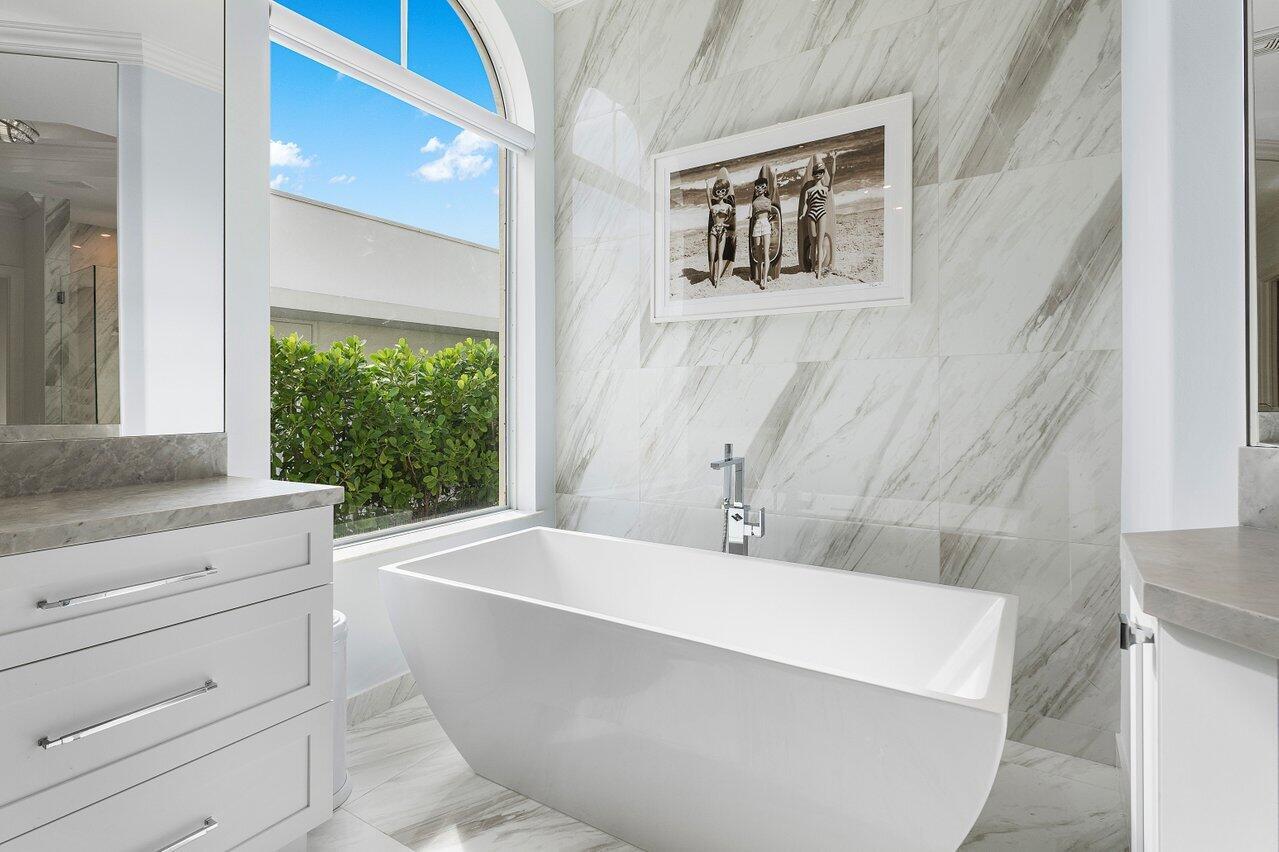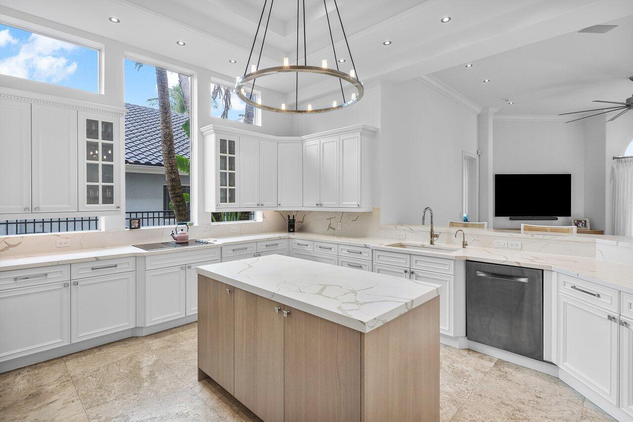 2124 W Maya Palm is a beautiful transitional home in Royal Palm Yacht and Country Club. This house has been tastefully remodeled with attention to quality and detail. From the moment you walk in, you will be flooded with natural light. The formal living room is inviting with a marble fireplace and overlooking the tropical backyard. Beautifully finished and a well thought out floor plan with the master bedroom on the first floor featuring brand new wood floors, his and her built out closets, and a completely remodeled master bathroom with his and her marble vanities, his and her water closets, a soaking tub, and electric shades. Downstairs also has a home office with new wood floors and built ins, elegant powder room, and a guest bedroom with new wood floors,
