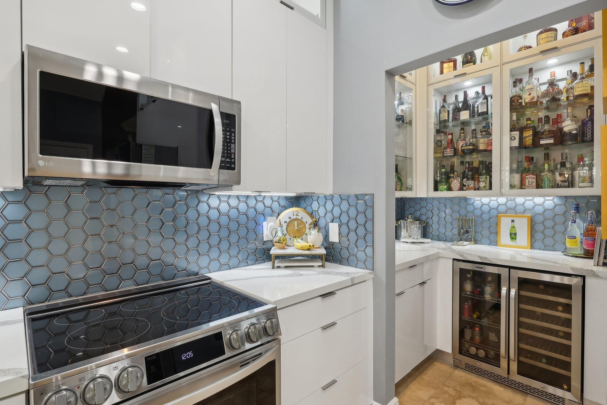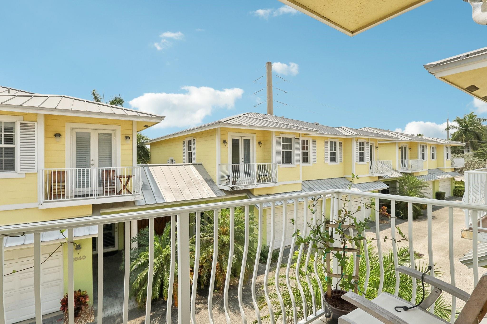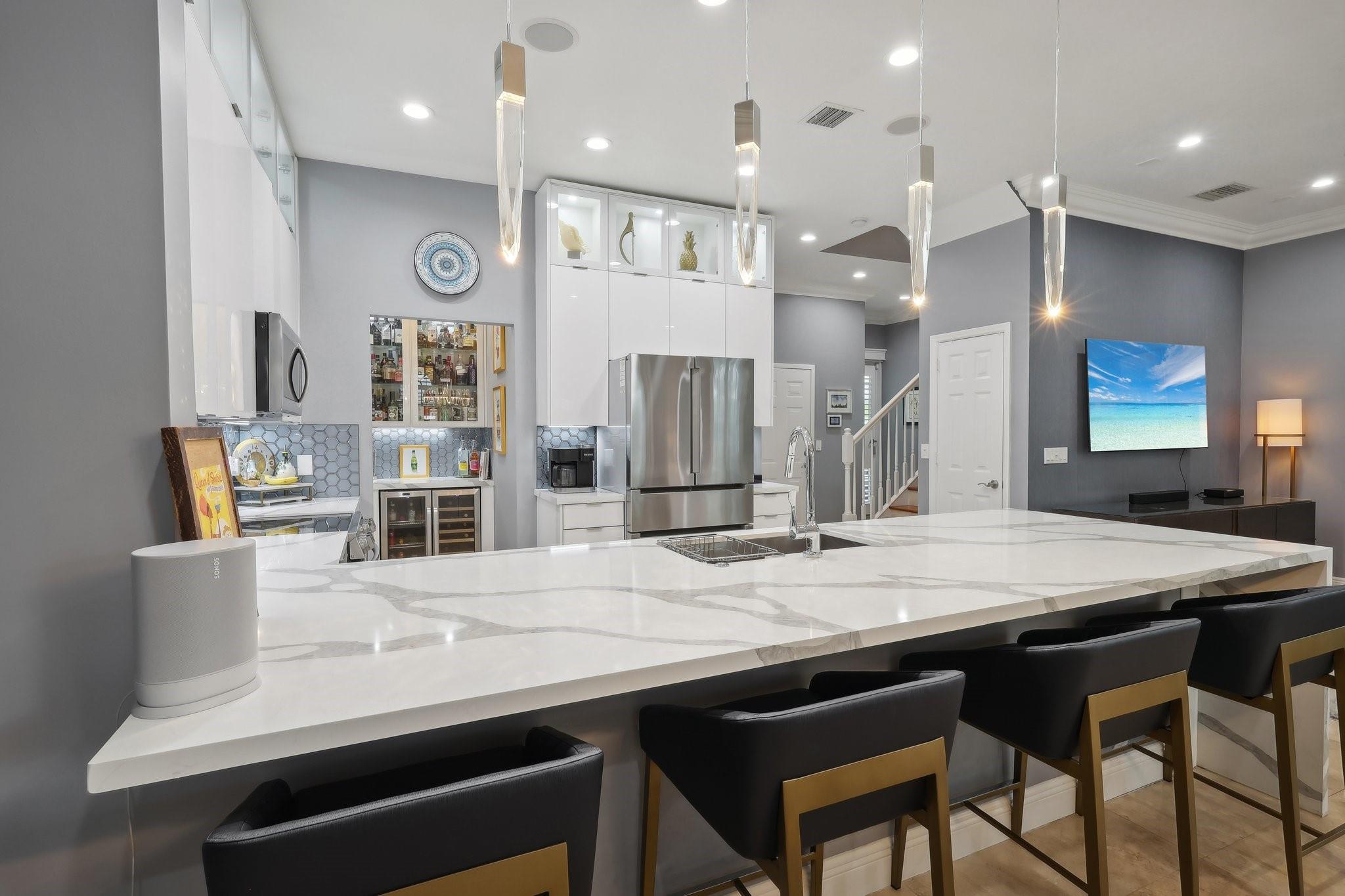 This luxurious 3-bed, 2.5-bath townhome is brimming with high-end upgrades and sophisticated touches designed for modern living. Enjoy your private landscaped yard, with a heated pool (recently diamond-brited) perfect for entertaining, The chef-inspired kitchen boasts a pantry/bar, wine fridge, stainless steel appliances, with an open floor plan. Upgrades include: plantation shutters, impact windows, hardwood floors on the staircase & upper level, tiled main floor, primary suite offers a balcony, en-suite bath, & walk-in closets. Additional highlights: Updated baths, 2-car garage with built-in storage, 2.5-year-old A/C, new water heater, metal roof & 2nd floor laundry, a covered front entrance, & room for outdoor seating, this home is the perfect blend of style and functionality.