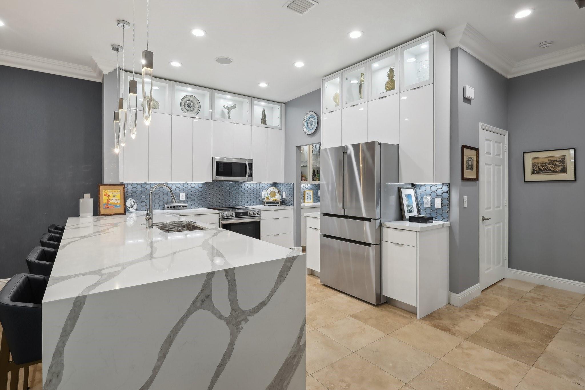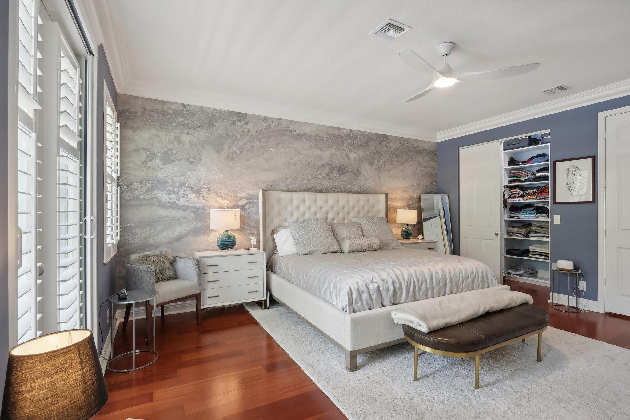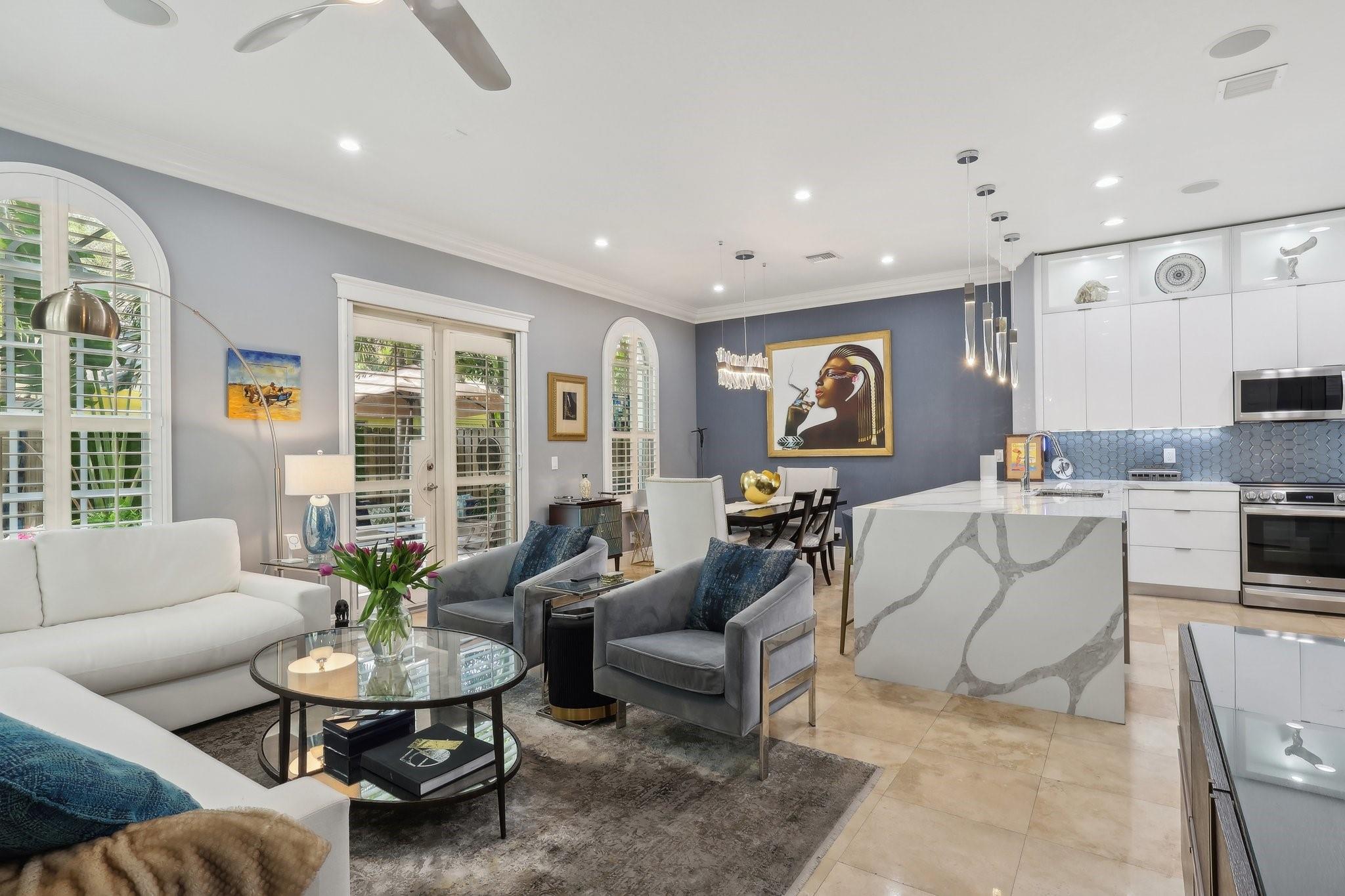 This luxurious 3-bed, 2.5-bath townhome is brimming with high-end upgrades and sophisticated touches designed for modern living. Enjoy your private landscaped yard, with a heated pool (recently diamond-brited) perfect for entertaining, The chef-inspired kitchen boasts a pantry/bar, wine fridge, stainless steel appliances, with an open floor plan. Upgrades include: plantation shutters, impact windows, hardwood floors on the staircase & upper level, tiled main floor, primary suite offers a balcony, en-suite bath, & walk-in closets. Additional highlights: Updated baths, 2-car garage with built-in storage, 2.5-year-old A/C, new water heater, metal roof & 2nd floor laundry, a covered front entrance, & room for outdoor seating, this home is the perfect blend of style and functionality.