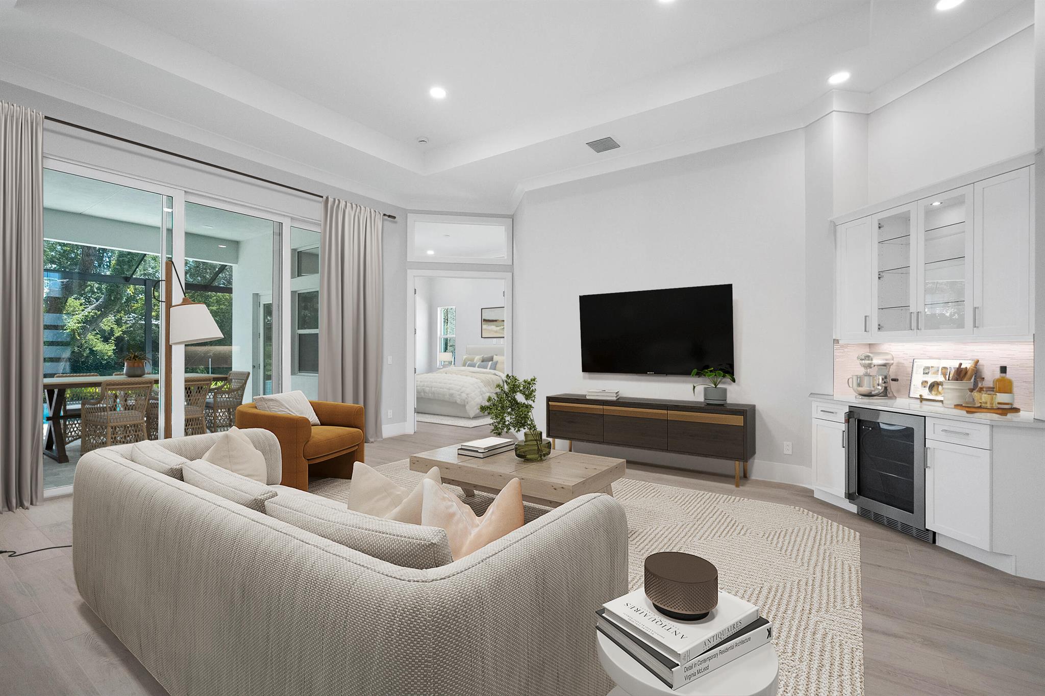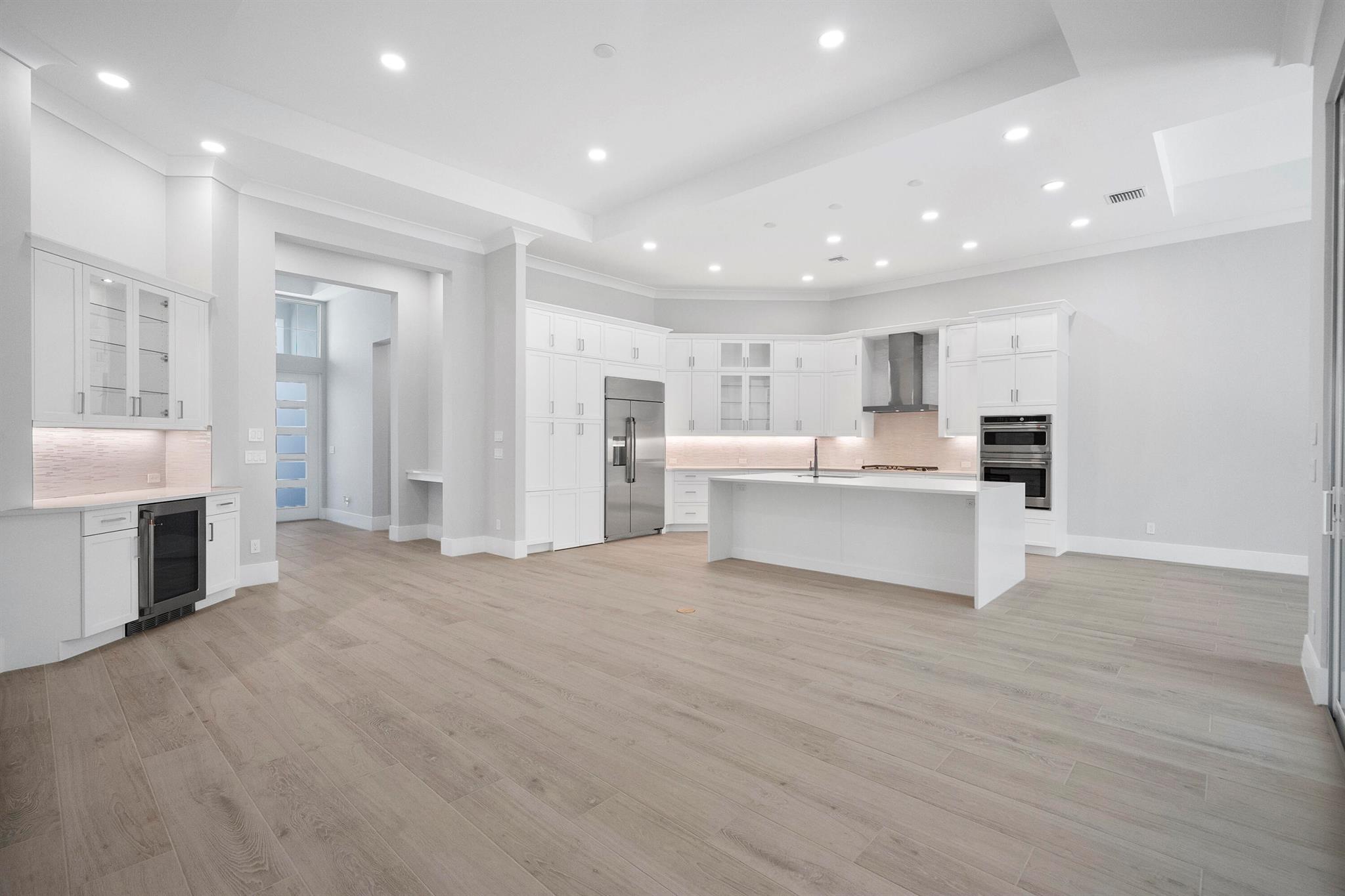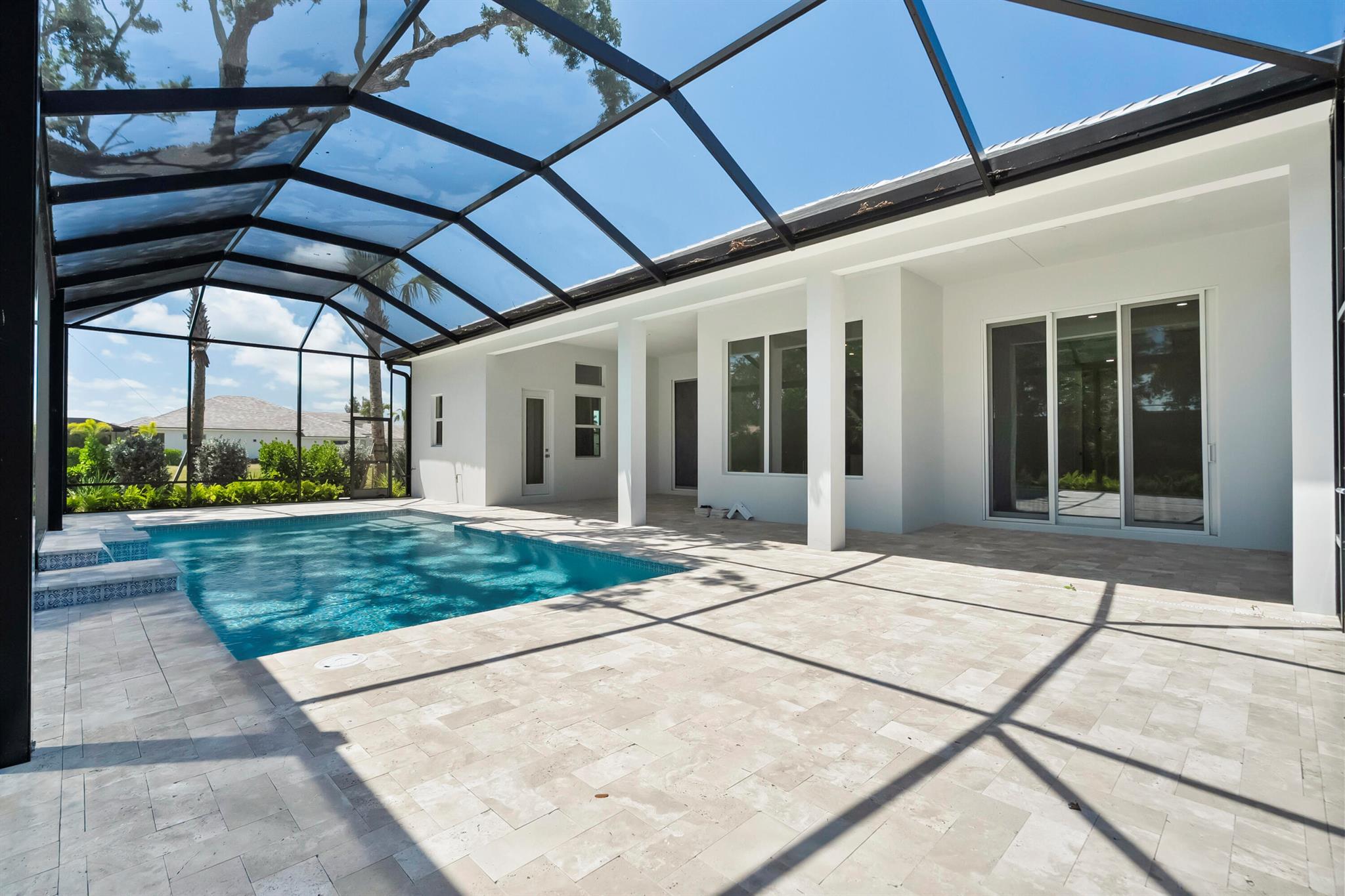 This 3 bedroom, 4.5 bath plus club room move-in ready home showcases exceptional finishes throughout its 2,821 square feet of air-conditioned living space. The gourmet kitchen features stacked cabinetry, an oversized center island, a walk-in pantry, LED undercabinet lighting, a stainless-steel hood, and a built-in 42'' refrigerator. The home also includes elegant porcelain tile flooring throughout. The laundry room is complete with a front-load washer and dryer with matching pedestals. This home boasts 12-foot ceilings and large windows that open to a spacious covered lanai and a custom saltwater pool. The outdoor area is enhanced with travertine pavers and a screened enclosure, perfect for enjoying Florida's coastal climate. Full house generator included!