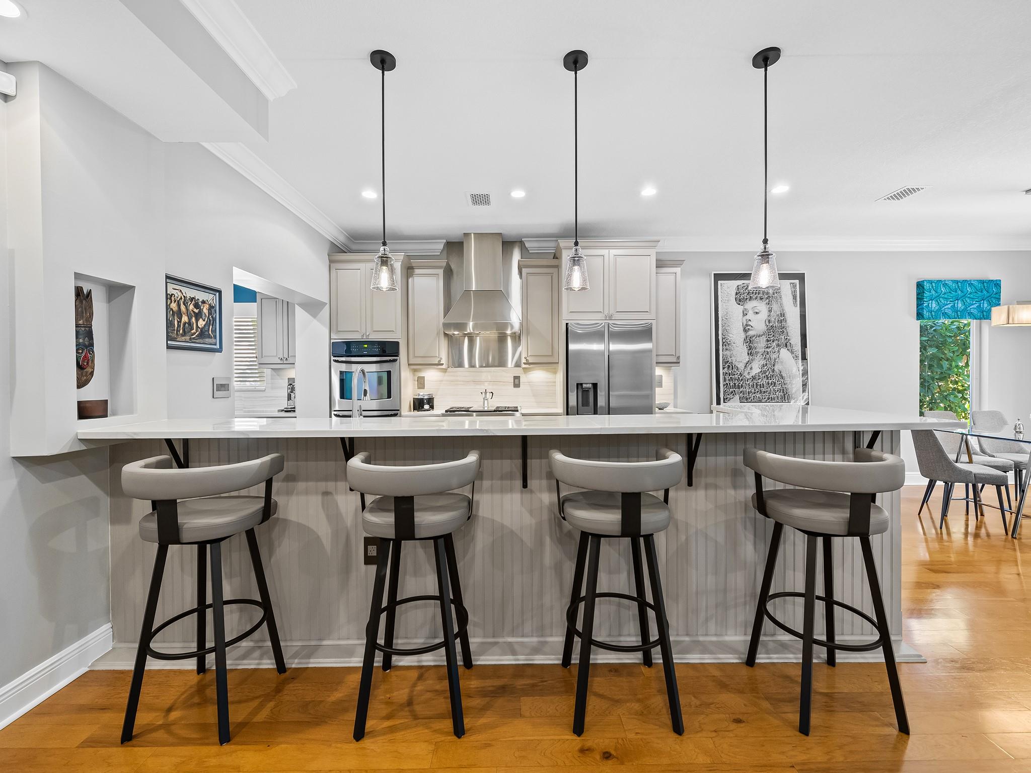 This stunning 3 Bed / 2.5 Bath Coastal style home in Victoria Park enchants with lush landscaping & timeless elegance. Enjoy upgrades like Impact Windows/Doors, Metal Roof, Natural Gas, Heated Pool w/water feature, Lanai bath, Screened Patio, and a Chef’s Kitchen with gas range & premium appliances along with 2 (!!) laundry rooms. The spectacular 2nd-floor Owner’s Suite features a lavish bath, boutique-style closet, two private balconies, and relaxing sitting area. Two private and serene ground floor spacious guest rooms with walk-in closets share a Jack-and-Jill bath. A grand circular paver driveway, covered entry and 1-car garage complete this perfect home. Come see it today!