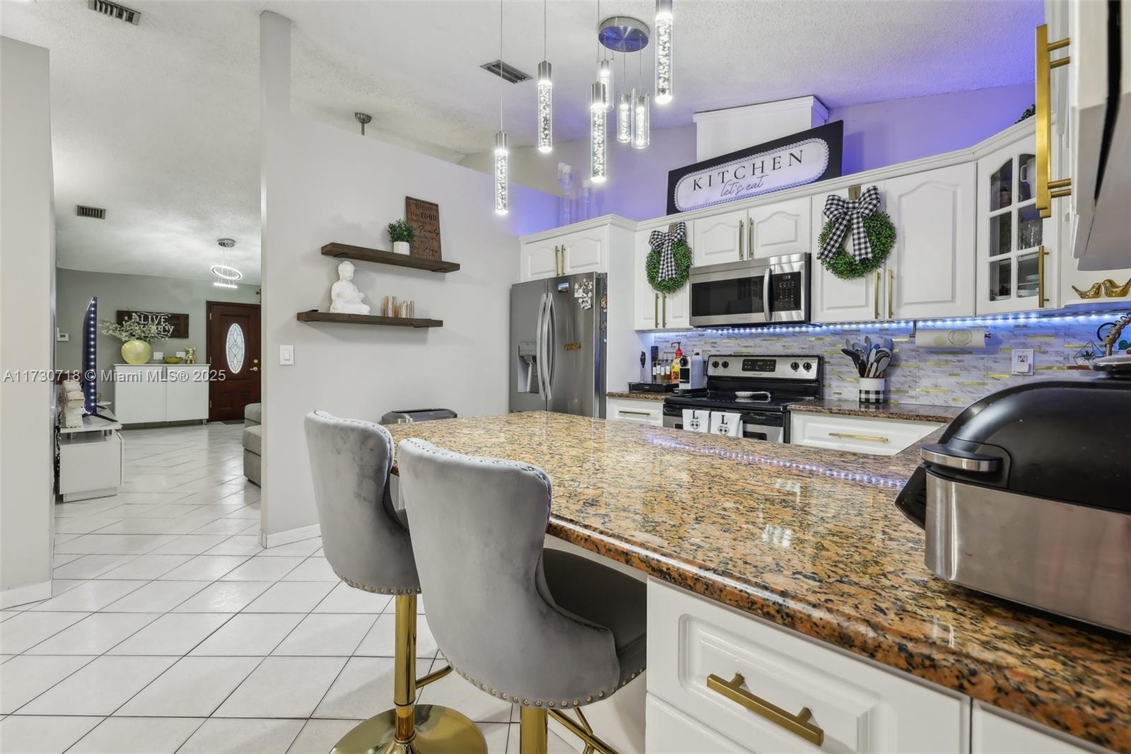 Step into this beautifully upgraded home that perfectly combines style and functionality! With a new roof (2022), front impact windows, and modern lighting, every detail has been thoughtfully designed. The renovated kitchen and updated bathrooms offer a contemporary touch, while the covered aluminum patio provides the perfect space for outdoor entertaining. A freshly painted driveway adds to the home’s charm and curb appeal. This move-in ready gem is waiting for you to make it your own!