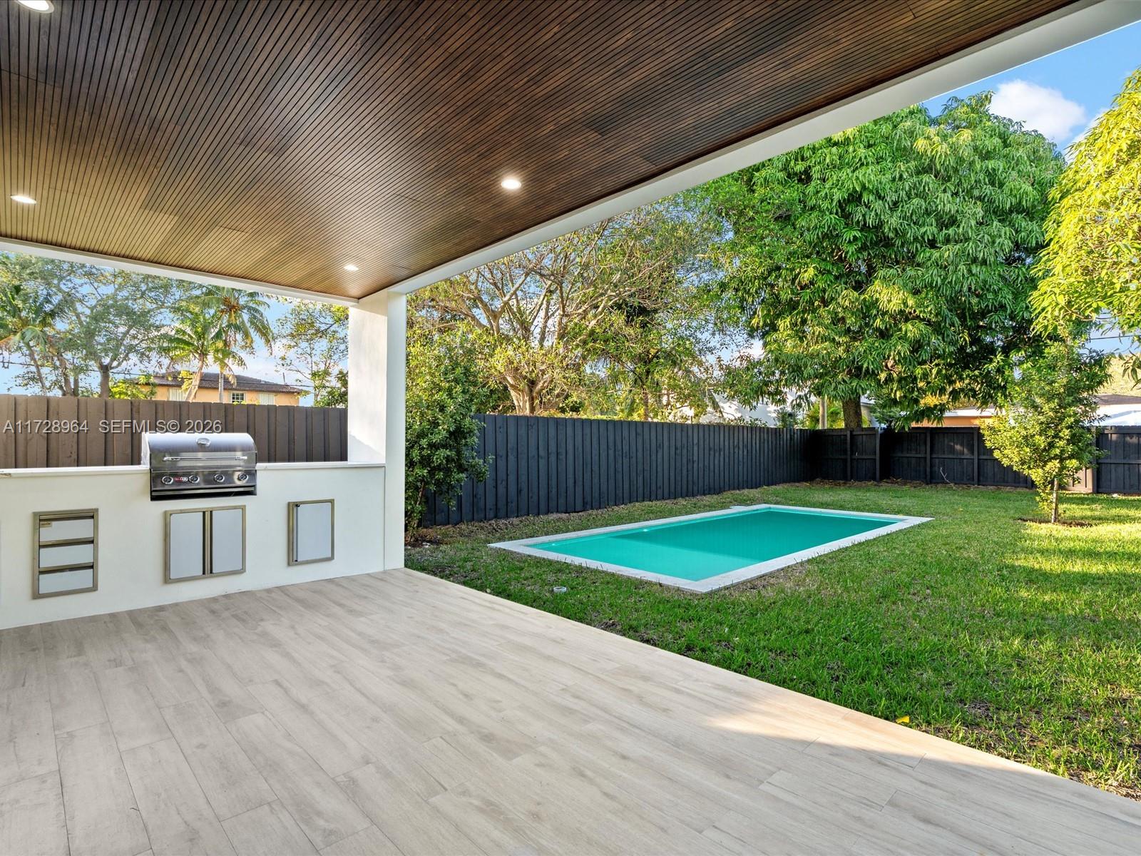 3,590 sqft New Two-story Single Family Home (extensive 7,250sqft atypical lot). With its generous backyard, the property provides an ideal setting for outdoor living, entertaining. Brand new construction with an open floor plan, Double-door entry, 5 beds, 4.5 baths. Open floorplan with Dining & Great Rooms. Features a modern design, natural light in all rooms, Master bath with Free-standing Tub & Large Shower, high-end finishes, modern appliances with double oven and double large refrigerators, Custom-Designed European Kitchen, Quartz countertop with waterfall, walk-in pantry, 10" ceiling height, all doors are 8' height. Spacious bedrooms (one in-suite bed on the 1st floor), pool, covered terrace w/ summer kitchen. Just Completed January 2026